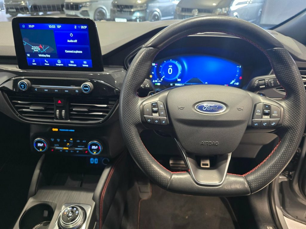 2020 Ford Kuga 2.0 EcoBlue ST-Line X Edition SUV 5dr Diesel Auto AWD Euro 6 (s/s) (190 PS) Experience premium performance, cutting-edge technology, and sporty design with this 2020 Ford Kuga ST-Line X Edition. Powered by a refined 2.0-litre EcoBlue diesel engine delivering 190 PS, this SUV combines impressive power with outstanding fuel efficiency, thanks to its 8-speed automatic transmission and intelligent All-Wheel Drive (AWD) system. Compliant with Euro 6 emissions standards, it offers clean, confident, and capable motoring in all conditions. The ST-Line X Edition embodies Ford's dynamic styling with a sleek aerodynamic body kit, black exterior accents, and 19-inch alloy wheels. The bold front grille and sculpted lines give it an unmistakably athletic presence on the road. Inside, you'll find a luxurious and sporty interior featuring partial leather and suede seats, ambient lighting, and ST-Line red stitching throughout. Packed with advanced technology, this model includes Ford SYNC 3 infotainment with an 8-inch touchscreen, Apple CarPlay/Android Auto, premium B&O sound system, digital instrument cluster, and wireless charging pad. Safety and convenience are enhanced by features such as Adaptive Cruise Control, Lane Keeping Assist, Front and Rear Parking Sensors, Rear-View Camera, and Power Tailgate. Offering an ideal balance of performance, comfort, and practicality, the 2020 Kuga ST-Line X Edition is perfect for families and enthusiasts alike. With its Solar Silver