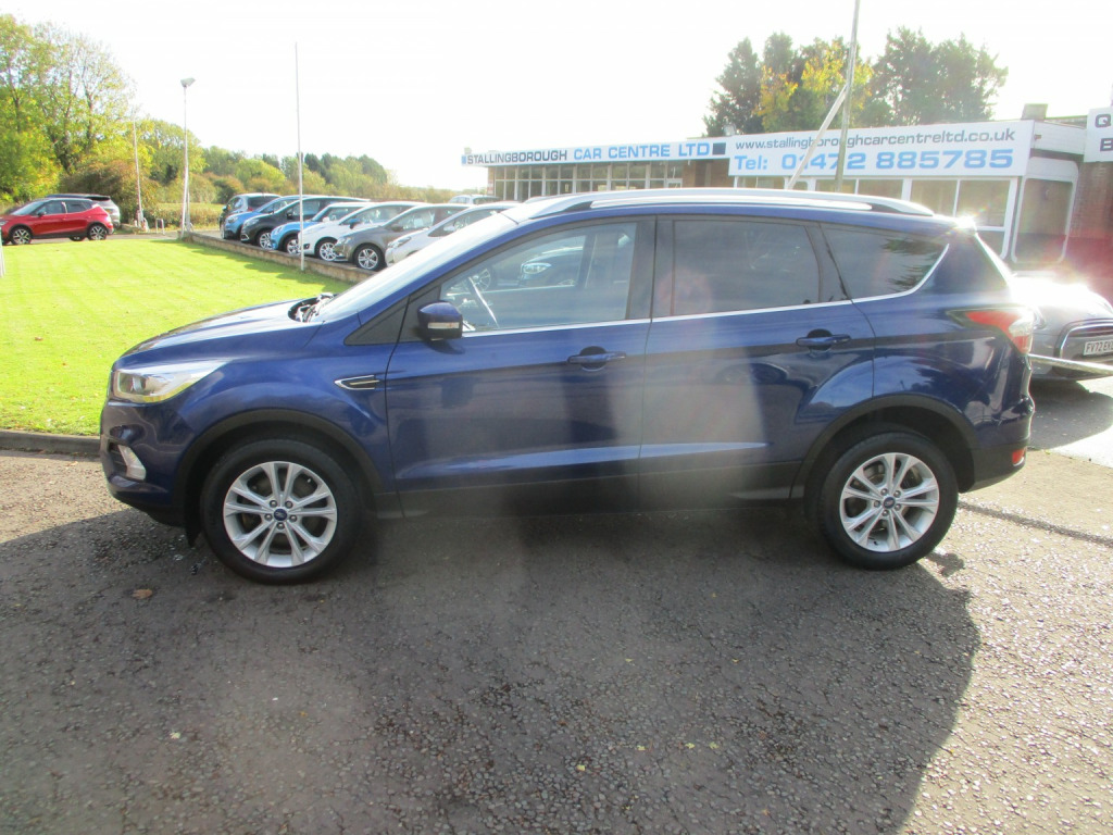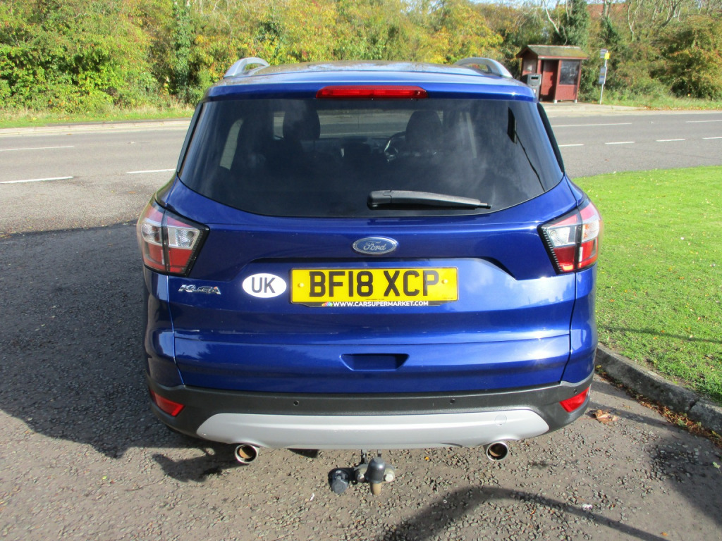 THIS VEHICLE COMES WITH 1 YEARS MOT, WARRANTIED, SERVICED AND FULLY VALETED. A BEAUTIFUL 2.0 TDCi 150 BHP TITANIUM 6 SPEED MANUAL DIESEL EXAMPLE OF THIS POPULAR FORD KUGA SUV 5 DOOR - STUNNING IN A RICH METALLIC BLUE FINISH WITH SILVER ROOF RAILS AND 10 SPOKE ALLOYS. SPACIOUS, COMFORTABLE AND VERSATILE WITH A HUGE EASY LOADING BOOT AREA AND FLAT FOLDING REAR SEATS FOR EVEN MORE SPACE + HIGHER SEATING POSITION FOR EASIER ACCESS. GREAT SPECIFICATION INCLUDING TOUCH SCREEN INCORPORATING SAT-NAV, REVERSE ASSISTANCE, DAB RADIO, AUX. PLAY AND BLUETOOTH. HALF LEATHER UPHOLSTERY, CRUISE AND DIGITAL CLIMATE CONTROLS, REVERSE SENSORS, HEATED FRONT SCREEN, 4 ELECTRIC WINDOWS, ELECTRIC FOLDING MIRRORS, AUTO LIGHTS, TOUCH BUTTON START STOP, FRONT AND REAR ARM RESTS, FRONT AND REAR CUP HOLDERS, LEATHER COVERED STEERING WHEEL AND GEAR LEVER, START STOP, ISOFIX, SPACE SAVER SPARE WHEEL, SINGLE SOCKET TOWBAR. IDEAL TOW CAR !!!, GREAT PERFORMANCE AND ECONOMY AT UP TO 65.7 MILES PER GALLON !!!