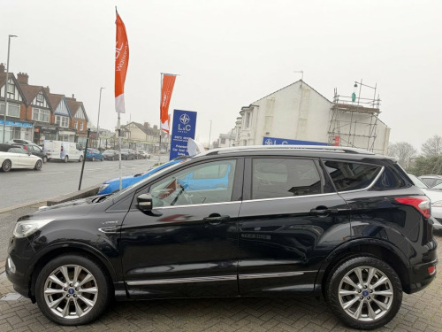 This 2018 Ford Kuga TDCi Vignale presents an exceptional opportunity with its remarkably low mileage of just 42,886 miles, a significant advantage for its age. This Four Wheel Drive model boasts a powerful 2.0L Engine and meets Euro 6 emission standards, contributing to its low CO2 emissions. The vehicle comes with a comprehensive full service history, with the last service completed on 23rd February 2026 at 42,886 miles. For your peace of mind, it includes a 3 month warranty and will be supplied with a full 12 months MOT. The Vignale trim level enhances the driving experience with a range of premium features. You will appreciate the Bi-Xenon Headlights with Dynamic Bending Adaptive Beam Shape, ensuring optimal visibility. Comfort is paramount, with heated front seats and Dual-Zone Electronic Automatic Temperature Control for personalised cabin climate. The Ford Key Free System with Hands-Free Power Tailgate offers ultimate convenience, while the Enhanced Active Park Assist, complete with front and rear parking sensors, makes manoeuvring effortless. These features collectively demonstrate a higher standard of specification and condition compared to other vehicles of its type. Shadow Black, 12V Power Socket - Load Compartment, 18in Alloy Wheels - Unique 5x2-Spoke - S, 6-Way Manual Passenger Seat with Lumbar , Airbags - Driver and Front Passenger, Airbags - Drivers Knee, Airbags - Front Side Impact, Airbags - Front and Rear Side Curtain, Anti-Lock Braking System - ABS with Elec, Armrest - Folding Centre - Rear, Audible Text Messaging - Voice Control a, Bi-Xenon Headlights with Dynamic Bending, Centre Console, Child Locks - Manual on Rear Doors, Courtesy Lights - Front and Rear, Cruise Control with Active Speed Limiter, DEATC - Dual-Zone Electronic Automatic T, Door Lever - Chrome Finish, Door Mirrors - Memory, Drivers Seat - 10-Way Power Adjustment, EBA - Emergency
