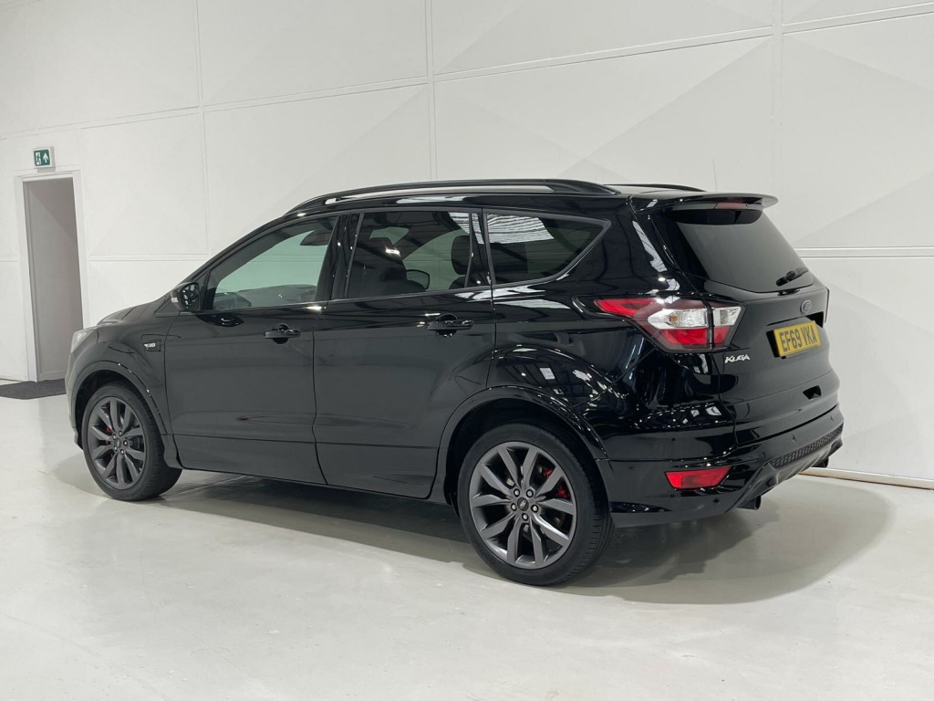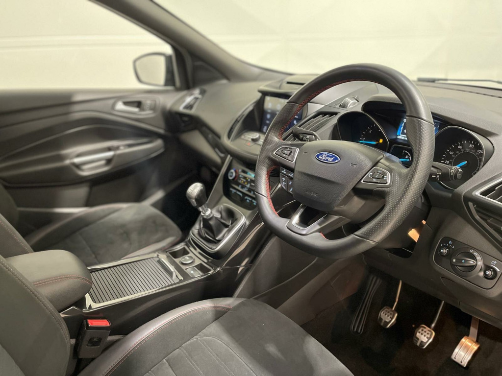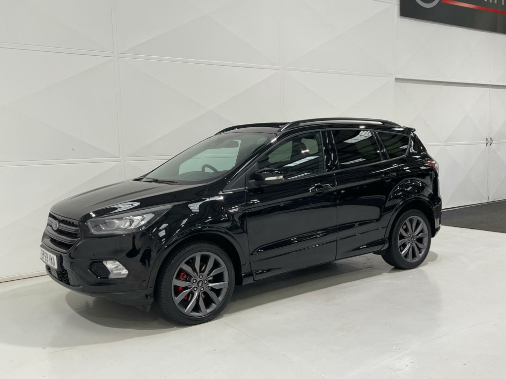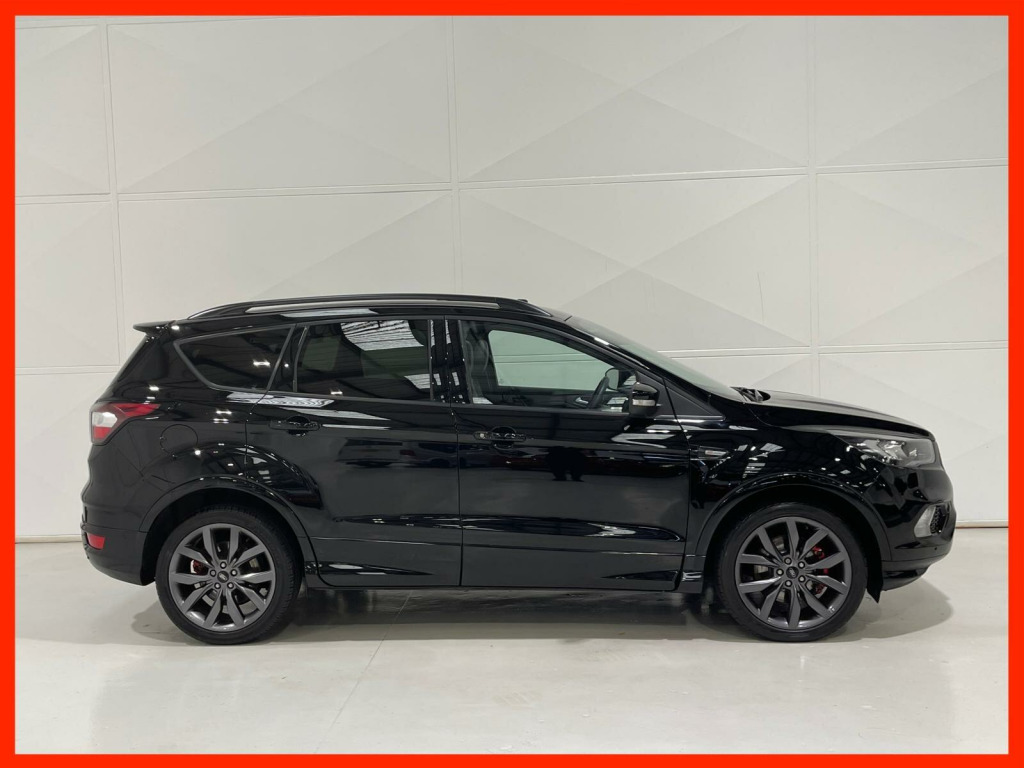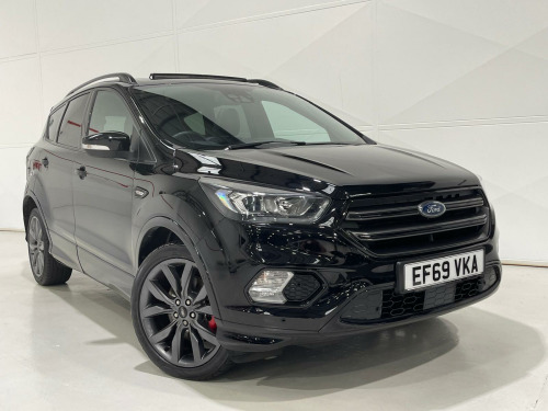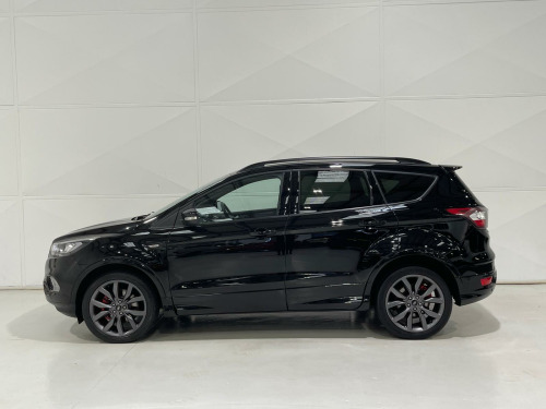 FINANCE & PART EXCHANGE AVAILABLE* - Only 2 registered keepers & 39,161 miles from new, FORD MAIN DEALER SERVICE HISTORY, 2 KEYS  - this SUPERB HIGH SPECIFICATION FORD KUGA ST-LINE EDITION is finished in stunning sports black & is complimented with contrasting full black sports leather & alcantara trim and extends itself to the following additional features - Ford ST-Line Edition Sports styling, full electric tilt & sliding glass panoramic sun roof with electric sun blind, on board satellite navigation system, dual zone climate control / automatic air conditioning, trip computer, cruise control with adjustable speed limiter, leather trimmed multi function steering wheel, front & rear park distance control, park assist, drivers seat electrically adjustable, Bluetooth telephone prep, DAB digital radio, media input, voice command, Apple CarPlay / Android auto,  keyless entry & start, start / stop, hill start assist, heated front screen, privacy glass, roof rails, emergency assistance, auto dimming rear view mirror, blind spot system, forward alert, cross traffic alert, driver alert, traffic sign info, lane keeping system, electric heated & folding exterior mirrors, lumbar support,  auto headlights, rain sensor, power assisted steering, abs, airbags, electric mirrors, electric windows, remote central locking, head restraints, Ford brake callipers finished in superb sports red, Ford 19'' alloy wheels finished in sports rock grey metallic, Ford anti theft system. ***FINANCE AVAILABLE - subject to status. T&C's apply.***PART EXCHANGE AVAILABLE***ALL VEHICLES ARE HPI & NATIONAL MILEAGE REGISTER CHECKED***THE AA WARRANTY IS SUBJECT TO TERMS & CONDITIONS AND DOES NOT COVER VEHICLES THAT ARE BEING USED FOR TAXI, PRIVATE HIRE, CHAUFFEURING PURPOSES OR FOR REWARD.***Please note, that the specifications/components/features etc. are generic to that vehicle of the type advertised but may not be included in the specific vehicle that is for sale. It is for the intended purchaser to satisfy themselves of the presence or absence of any specifications/components/features before sale.. 12V Power Socket - Load Compartment, 19in Alloy Wheels - 5x2 Spoke Rock Metallic, 6-Way Manual Passenger Seat with Lumbar Adjustment, ABS - Anti-lock Braking System, Airbags - Driver and Front Passenger, Airbags - Drivers Knee, Airbags - Front Side Impact, Airbags - Front and Rear Side Curtain, Alloy Foot Pedals, Appearance Pack, Armrest - Folding Centre - Rear, Automatic Dimming Rear View Mirror, Automatic Halogen Headlights with LED Daytime Running Lights, Black Mirror Cap, Black Roof Rails, Centre Console, Child Locks - Manual on Rear Doors, Cruise Control with Active Speed Limiter, DEATC - Dual-Zone Electronic Automatic Temperature Control, Dark Headliner, Door Lever - Chrome Finish, EBA - Emergency Brake Assist, EPAS - Electric Power Assisted Steering, ESP - Electronic Stability Programme, Electric Parking Brake, Engine Immobiliser, Enhanced Active Park Assist, Exhaust - Dual, Fog Lights - Front, Ford Key Free System - Keyless Entry with Keyless Start, Ford Power Starter Button, Ford SYNC3 DAB Navigation System, Front Passenger Airbag with Deactivation Switch, Front Seat - Drivers Manual Height - Fore-Aft and Recline Adjustment, Front Seat - Passenger Manual Height - Fore-Aft and Seatback Angle Adjustment, Front Seats - Seat-Back Map Pockets, Front Suspension - Independent with MacPherson Struts and Anti-Roll Bar, Front and Rear Floor Mats with Red Stitching, Full Body Styling Kit, Gear Knob - Leather with Red Stitching, Hill Start Assist, IPS - Intelligent Protection System, Large Rear Spoiler, Load Compartment Carpet, Locking Wheel Nuts, Mini Spare Wheel - 17in Steel, MyKey, Power Folding Door Mirrors with Puddle Lights, Power Opening Panoramic Roof, Quickclear Heated Windscreen, Rain Sensitive Windshield Wipers, Rear Parking Sensors, Rear Seat - 60-40 Split Folding Seat Back and Cushion with Multi-Step Recline Function, Rear Seats - 2-Way Head Restraint Up-Down, Rear Suspension - Independent Control Blade Multi-Link System and Anti-Roll Bar, Red Brake Calipers, Remote Central-Double Locking, Scuff Plates - Front, Seats - Drivers with Manual Lumbar Support Adjustment, Seats - ISOFIX Mounting Provision for Child Seats - Outer Seats Only, Sports Suspension, Steering Column - Rake and Reach Adjustment, Steering Wheel - 3-Spoke Flat Bottom - Leather Trimmed with Red Stitching, Thatcham Category 1 Alarm, Tie-Down Hooks, Tonneau Cover, Tyre Pressure Monitoring System, Windows - Electrically Operated Front and Rear with One Touch Lowering-Closing on Drivers Side and Global Closing, 6-Way Manual Driver Seat with Lumbar Adjustment, Anti-Lock Braking System - ABS with Electronic Stability Control - ESC, Auto Dimming Rear View Mirror, Cruise Control with Adjustable Speed Limiter, Door Mirrors - Power-foldable and Heated with Black Mirror Caps - Side Indicators and Puddle Lights, Headlights - Halogen with LED Daytime Running Lights, Rear Privacy Glass, Dinamica Micro Fibre - Salerno Leather - Ebony and Charcoal Black.