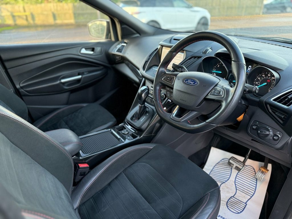 Here for sale at Leigh Cars Ltd we are delighted to present this superb ULEZ EXEMPT example of the impressive Ford Kuga ST Line Edition 2.0 TDCi 4x4 all wheel drive 180bhp 5 door automatic diesel finished in shadow black metallic paint. This wonderful example comes with a flawless full service history. As part of our thorough pre sale preparations this vehicle also benefits from a full safety inspection along with with a fresh engine service (6 service stamps total from new now) + a brand new advisory free MOT - expiry December 2026. This particular model trim level benefits from an unrivalled amount of envious specification including Ford SYNC 3 satellite navigation + DAB radio, front + rear parking sensors, Apple car play and Android auto, enhanced active park assist (car parks itself), half leather alcantara interior, panoramic slide + tilt glass opening sunroof with electric sunblind, dual zone climate control with air conditioning, bluetooth handsfree, cruise control + adjustable speed limiter, auto lights + wipers, heated quickclear windscreen, power fold door mirrors, 19" alloy wheels, keyless entry + power button start, remote central locking, 2 Keys + much much more. This impressive low mileage top of the range Kuga ST Line Edition is only £195 a year to tax and is also ULEZ charge exempt! This would make an ideal family car with an abundance of space and practicality and a humungous boot, book an appointment now to avoid disappointment and save £&p Android Auto and Apple Carplay, Parking Assistant, Shadow Black, 12V Power Socket - Load Compartment, 19in Alloy Wheels - 5x2 Spoke Rock Metal, 6-Way Manual Driver Seat with Lumbar Adj, 6-Way Manual Passenger Seat with Lumbar , Airbags - Driver and Front Passenger, Airbags - Drivers Knee, Airbags - Front Side Impact, Airbags - Front and Rear Side Curtain, Alloy Foot Pedals, Anti-Lock Braking System - ABS with Elec, Appearance Pack, Armrest - Folding Centre - Rear, Auto Dimming Rear View Mirror, Black Roof Rails, Centre Console, Child Locks - Manual on Rear Doors, Cruise Control with Adjustable Speed Lim, DEATC - Dual-Zone Electronic Automatic T, Dark Headliner, Door Lever - Chrome Finish, Do