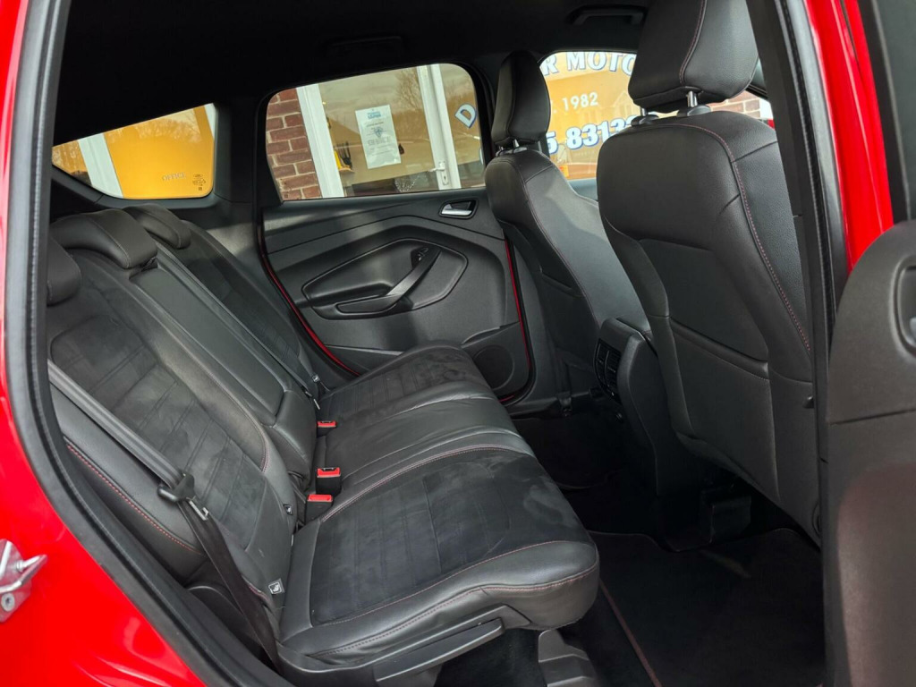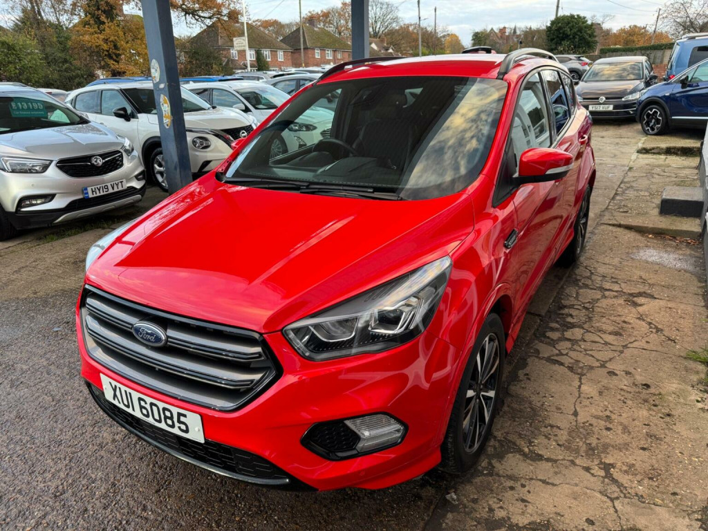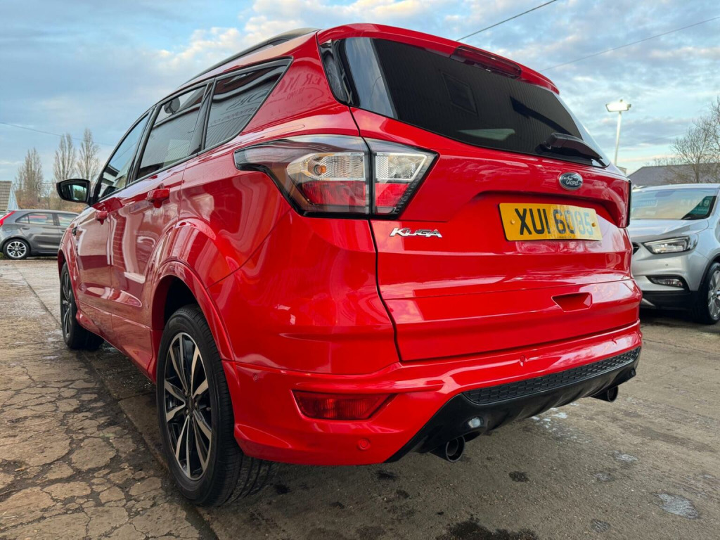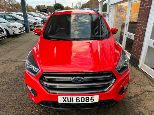 We have for you a Ford Kuga 2.0 TDCi EcoBlue ST-Line in red with black half leather trim covered just 62,000 miles with full Ford service history and one owner from new. Please check us out on Facebook and Google. All our cars will come with a new MOT unless its recently just had one done, have a service and our own parts and labour warranty
