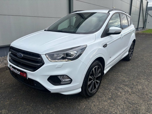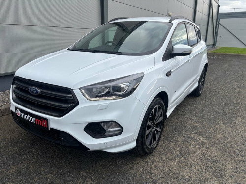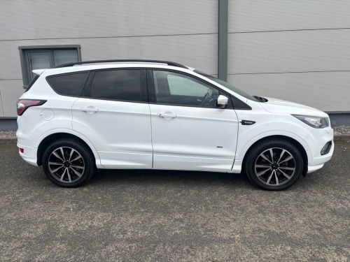This 2018 Ford Kuga TDCi ST-Line is a superb example, having had only one owner from new. It boasts a powerful 2.0L Diesel engine and a capable Four Wheel Drive drivetrain, all while meeting the Euro 6 emission standards. Inside, you'll find comfort and convenience with DEATC Dual-Zone Electronic Automatic Temperature Control, ensuring a pleasant cabin environment for all occupants. Navigating and parking are made effortless thanks to the Ford DAB Navigation System with Ford SYNC3, which includes Bluetooth connectivity, and the Enhanced Active Park Assist system featuring front and rear parking sensors. The exterior is enhanced by Automatic Halogen Headlights with distinctive LED Daytime Running Lights, which also benefit from automatic activation. The Kuga TDCi ST-Line stands out with its low CO2 emissions, indicating a more environmentally conscious choice compared to many vehicles in its class. The combination of its robust performance, advanced technology, and the fact it has been meticulously cared for by a single owner makes this Ford Kuga a compelling option for those seeking a reliable and well-equipped SUV. Its Euro 6 compliance further underlines its modern credentials, offering a blend of efficiency and driving pleasure. THIS CAR WILL HAVE A FULL PDI INSPECTION, SERVICE, MOT, WARRANTY, PROFESSIONAL VALET AND HPI DATA CHECK REPORT. OUR CARS ARE PRICE CHECKED DAILY AND NEARLY ALL OF OUR CARS ARE READY TO DRIVE AWAY. **VERY LOW RATE FINANCE** AVAILABLE SUBJECT 12V Power Socket - Load Compartment, 18in Alloy Wheels - 5x2 Spoke - Dark Mac, 6-Way Manual Passenger Seat with Lumbar , Airbags - Driver and Front Passenger, Airbags - Drivers Knee, Airbags - Front and Rear Side Curtain, Airbags - Front Side Impact, Alloy Pedals, Anti-Lock Braking System - ABS with Elec, Armrest - Folding Centre - Rear, Audible Text Messaging - Voice Control a, Automatic Dimming Rear View Mirror, Automatic Halogen Headlights with LED Da, Black Roof Rails, Centre Console, Child Locks - Manual on Rear Doors, Courtesy Lights - Front and Rear, Cruise Control with Active Speed Limiter, Dark Headliner, DEATC - Dual-Zone Electronic Automatic T, Door Lever - Chrome Finish, EBA - Em