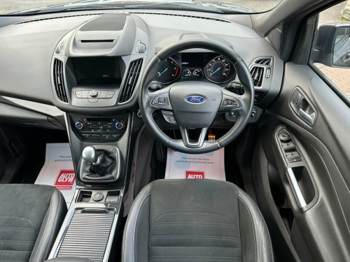 Now available is this 2016 Ford Kuga 2.0 TDCi EcoBlue ST-Line AWD, a sporty and capable SUV that has covered just 51,000 miles from new. Powered by the strong 2.0-litre EcoBlue diesel engine producing 180 ps, paired with a manual gearbox and all-wheel-drive system, it delivers confident performance, excellent traction, and impressive efficiency, making it equally at home on the motorway or in tougher conditions. The ST-Line trim adds a dynamic edge with sports styling, 18" alloy wheels, and a sportier suspension setup, while the cabin is well equipped with satellite navigation, rear parking sensors, cruise control, dual-zone climate control, DAB radio, Bluetooth connectivity, and keyless start. Spacious, comfortable, and practical, the Kuga also offers a generous boot and versatile seating, making it an excellent family SUV. With its low mileage, sporty looks, and strong specification, this Ford Kuga ST-Line AWD is a superb choice for those seeking a stylish and capable diesel SUV. 18in Alloy Wheels - 5x2 Spoke - Dark Mac, Accessory Power Socket - 12V, Accessory Power Socket - 12v in Luggage , Airbags - Driver and Front Passenger, Airbags - Drivers and Front Passenger Fr, Airbags - Drivers Knee, Airbags - Front Side Impact, Alloy Pedals, Armrest - Folding Centre - Rear, Audible Text Messaging - Voice Control a, Automatic Dimming Rear View Mirror, Automatic Halogen Headlights with LED Da, Automatic Headlights - Rain Sensing Wipe, Black Roof Rails, Centre Console, Child Locks - Manually Adjustable Rear D, Courtesy Light - Footwell Illumination, Courtesy Light - Front and Rear, Cruise Control with Active Speed Limiter, Dark Headliner, DEATC - Dual-Zone Electronic Automati