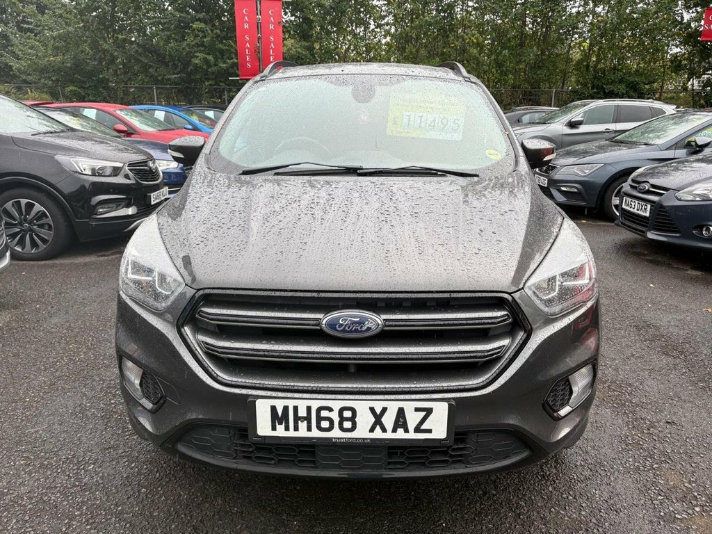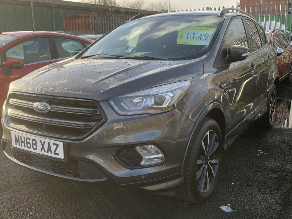 Ford Kuga TDCI Ecoblue ST-Line in metallic grey, has service history with 5 stamps in the book. Comes with sat navigation, 18" alloy wheels, air conditioning, electric windows in the front and rear, electric folding mirrors, keyless start, front and rear parking sensors, cruise control, half leather trim, auto lights, rear privacy glass, heated front screen, stop/start engine, its a 6 speed, has bluetooth, voice command, apple car play, a touchscreen dab radio cd, usb port, multifunction steering wheel and 2 remote keys. THE CAR WILL HAVE A SERVICE AND 12 MONTHS MOT / PART EXCHANGE IS ALWAYS WELCOME / FREE 12 MONTH AA ROADSIDE RECOVERY INCLUDED / FINANCE IS AVAILABLE VIA OUR WEBSITE LINK / THE CAR HAS BEEN HPI AND MILEAGE CHECKED, ALL OK / WE ARE A FAMILY RUN BUSINESS AND HAVE BEEN TRADING FOR OVER 30 YEARS, WE OFFER DELIVERY IN MAINLAND UK (Please ask for details), WE ARE HERE TO HELP YOU! PLEASE CONTACT US WITH ANY QUESTIONS 12V Power Socket - Load Compartment, 18in Alloy Wheels - 5x2 Spoke - Absolute, 6-Way Manual Passenger Seat with Lumbar , ABS - Anti-lock Braking System, Airbags - Driver and Front Passenger, Airbags - Drivers Knee, Airbags - Front and Rear Side Curtain, Airbags - Front Side Impact, Alloy Foot Pedals, Appearance Pack, Armrest - Folding Centre - Rear, Automatic Dimming Rear View Mirror, Automatic Halogen Headlights with LED Da, Black Roof Rails, Centre Console, Child Locks - Manual on Rear Doors, Courtesy Lights - Front and Rear, Cruise Control with Active Speed Limiter, Dark Headliner, DEATC - Dual-Zone Electronic Automatic T, Door Lever - Chrome Finish, EBA - Emergency Brake Assist, Electric