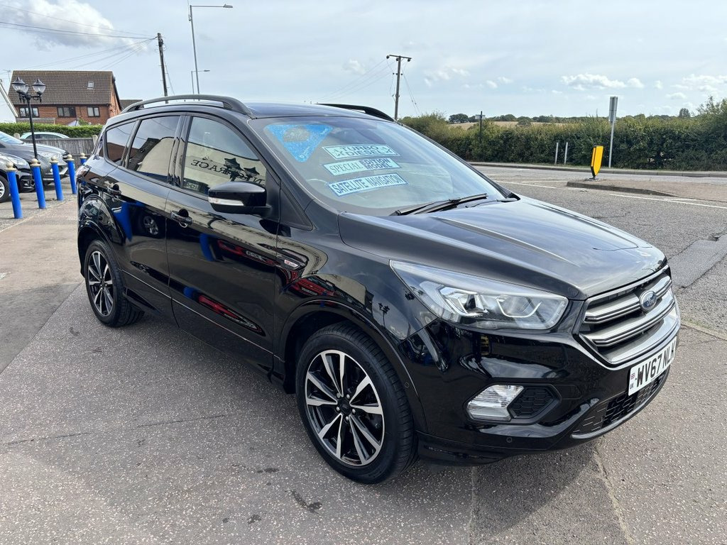 This 2017 Ford Kuga TDCi ST-Line is a great example of a well maintained vehicle. It boasts a powerful 2.0L diesel engine and meets Euro 6 emissions standards. Inside, you'll find comfort and convenience with DEATC dual zone electronic automatic temperature control, ensuring a pleasant cabin environment for all occupants. Navigating tight spaces is made effortless thanks to the enhanced active park assist, which includes front and rear parking sensors. The ST-Line trim also features automatic halogen headlights with distinctive LED daytime running lights, and the Ford DAB Navigation System with Ford SYNC3, offering Bluetooth connectivity for seamless phone integration. This particular Kuga ST-Line stands out with its low insurance group, making it an economical choice for many drivers. Furthermore, its low CO2 emissions indicate a more environmentally conscious performance compared to similar vehicles. These factors combined with its comprehensive feature set make this Ford Kuga a compelling option for those seeking a capable and cost effective SUV. 12V Power Socket - Load Compartment, 18in Alloy Wheels - 5x2 Spoke - Dark Mac, 6-Way Manual Passenger Seat with Lumbar , Airbags - Driver and Front Passenger, Airbags - Drivers Knee, Airbags - Front and Rear Side Curtain, Airbags - Front Side Impact, Alloy Pedals, Anti-Lock Braking System - ABS with Elec, Armrest - Folding Centre - Rear, Audible Text Messaging - Voice Control a, Automatic Dimming Rear View Mirror, Automatic Halogen Headlights with LED Da, Black Roof Rails, Centre Console, Child Locks - Manual on Rear Doors, Courtesy Lights - Front and Rear, Cruise Control with Active Speed Limiter, Dark Headliner, DEATC - Dual-Zone Electronic Automatic T, Door Lever - Chrome Finish, EBA - Em