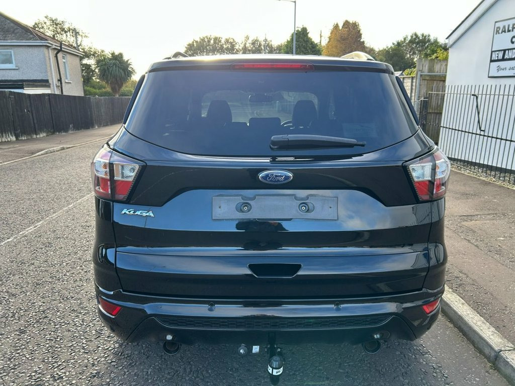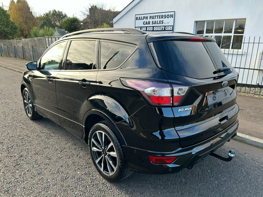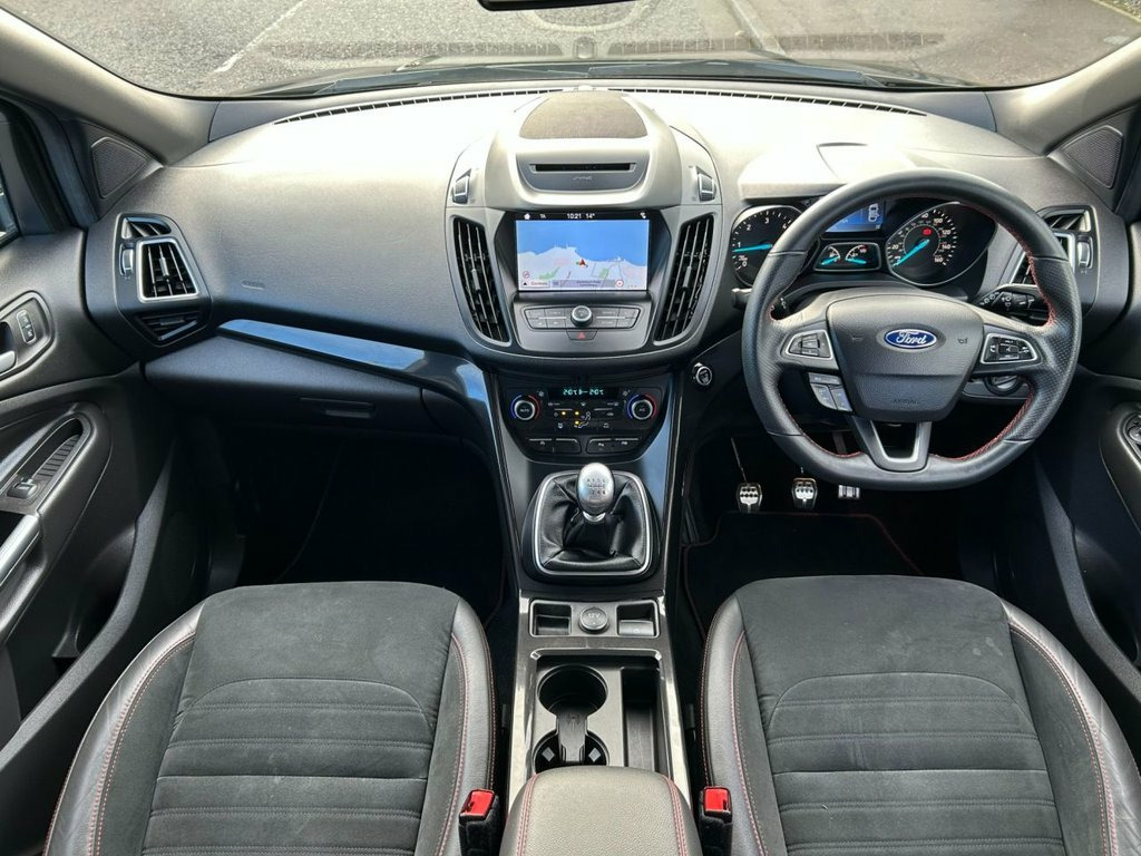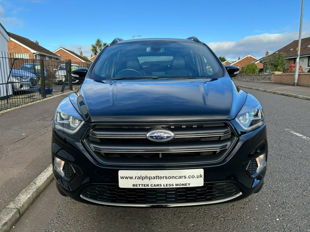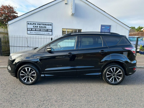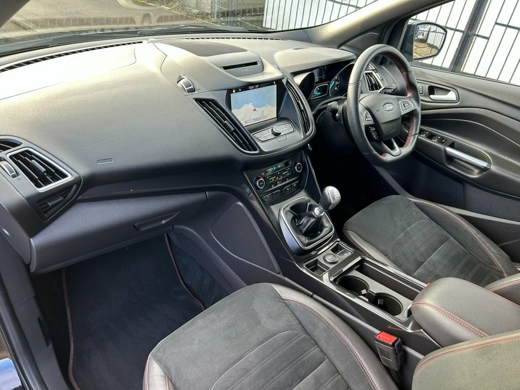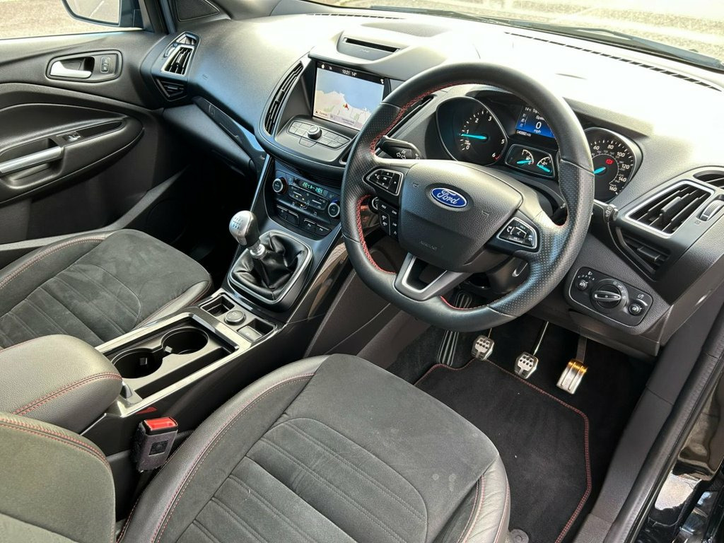 Just 40,000 miles on this fantastic looking one owner Ford Kuga ST Line with the more powerful 2.0 TDCi 148bhp engine, making it perfect for towing yet superbly fuel efficient and refined. ST Line trim has a sporty theme throughout with sport style seats, dark headcloth, privacy glass, fully colour coded sport bumpers, 18 inch alloys, black grille, roof rails and black window surrounds adding to the black pack effect on this gorgeous SUV. Tech wise its got Fords renowned Sync 3 media system incorporating touch screen satellite navigation, smartphone integration and Bluetooth and it also boasts a heated Quickclear front windscreen and the advanced parking system with front and rear sensors. Previously sold by ourselves in 2022 with just 10.000 miles this thoroughly beautiful two owner vehicle with a full Ford service history from new the last of which was performed in July 25 and MOT extending until March 2026. Shadow Black, 12V Power Socket - Load Compartment, 18in Alloy Wheels - 5x2 Spoke - Absolute, 6-Way Manual Driver Seat with Lumbar Adj, 6-Way Manual Passenger Seat with Lumbar , Airbags - Driver and Front Passenger, Airbags - Drivers Knee, Airbags - Front Side Impact, Airbags - Front and Rear Side Curtain, Alloy Foot Pedals, Anti-Lock Braking System - ABS with Elec, Appearance Pack, Armrest - Folding Centre - Rear, Auto Dimming Rear View Mirror, Black Roof Rails, Centre Console, Child Locks - Manual on Rear Doors, Courtesy Lights - Front and Rear, Cruise Control with Adjustable Speed Lim, DEATC - Dual-Zone Electronic Automatic T, Dark Headliner, Door Lever - Chrome Finish, Door Mirrors - Powe