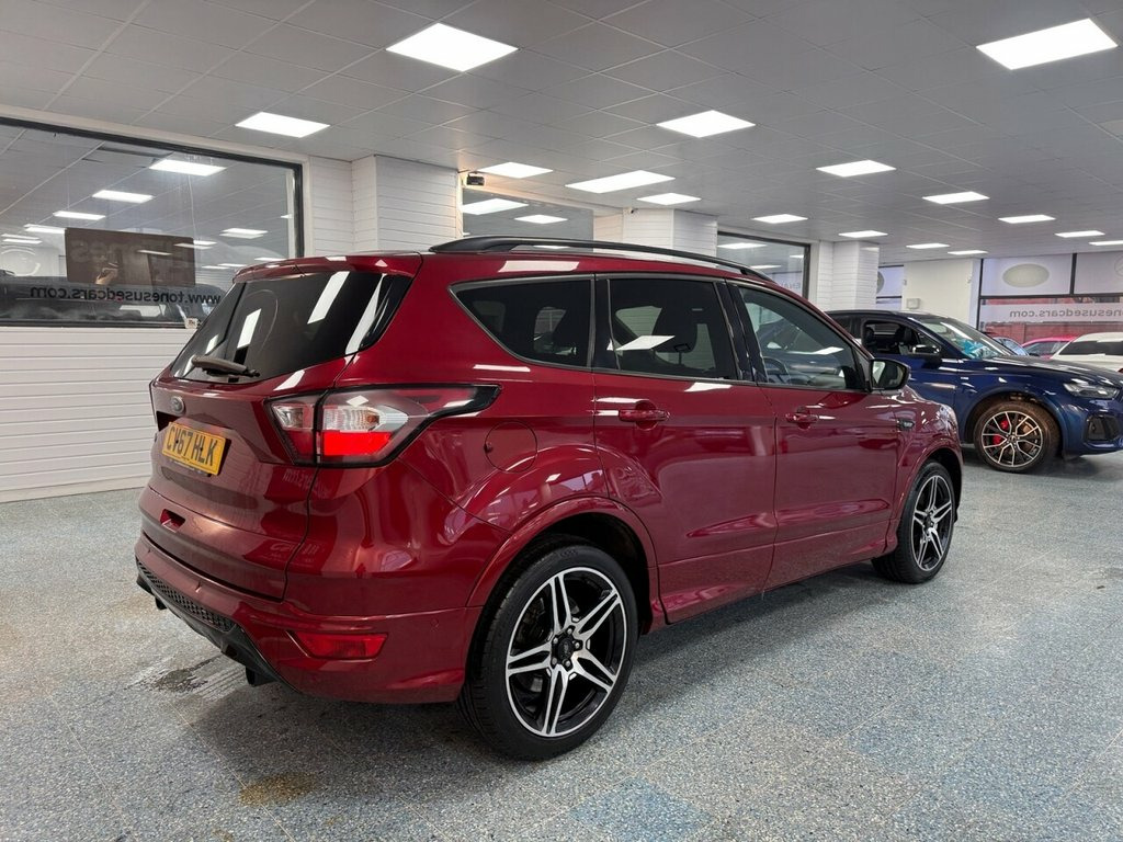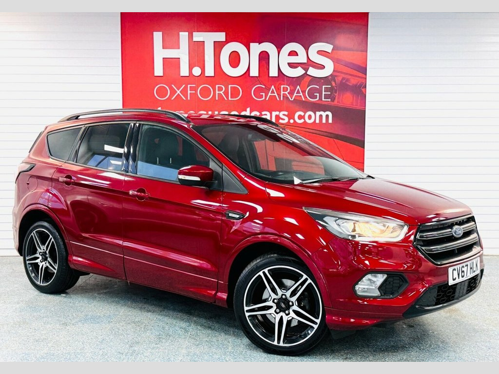 This 2017 Ford Kuga TDCi ST-Line presents a superb example with remarkably low mileage for its age, having covered just 59161 miles. This particular model boasts a powerful yet efficient 2.0 litre diesel engine, meeting the Euro 6 emission standards. As an ST-Line trim, it offers a sporty aesthetic and driving experience, making it a desirable choice for those seeking both style and substance in their SUV. The Kuga TDCi ST-Line stands out with its low CO2 emissions, contributing to a more environmentally conscious drive. Furthermore, its placement in a low insurance group means that running costs are kept to a minimum, offering excellent value. These factors combined indicate that this Ford Kuga is a more economical and affordable option compared to many other vehicles in its class. Ruby Red, Rear Privacy Glass, ST-Line Style Pack, 12V Power Socket - Load Compartment, 18in Alloy Wheels - 5x2 Spoke - Dark Mac, 6-Way Manual Passenger Seat with Lumbar , Airbags - Driver and Front Passenger, Airbags - Drivers Knee, Airbags - Front Side Impact, Airbags - Front and Rear Side Curtain, Alloy Pedals, Anti-Lock Braking System - ABS with Elec, Armrest - Folding Centre - Rear, Audible Text Messaging - Voice Control a, Automatic Dimming Rear View Mirror, Automatic Halogen Headlights with LED Da, Black Roof Rails, Centre Console, Child Locks - Manual on Rear Doors, Courtesy Lights - Front and Rear, Cruise Control with Active Speed Limiter, DEATC - Dual-Zone Electronic Automatic T, Da