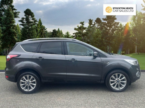 Stockton Heath Car Sales are delighted to offer this IMMACULATE example FORD KUGA 2.0 TDCI EcoBlue Titanium Edition in GREY with 18" LOVELY Alloys and 1/2 Black LEATHER interior! This vehicle comes with FULL SERVICE HISTORY (@ 8k, 17k, 29k, 41k, 54k, 66k, and recently done at 76k, Sept 25'), comes with a 3 MONTH WARRANTY, will have a full 12 Month MOT at point of sale if less than 9 months currently and as with all our vehicles, is HPI clear! This popular family SUV looks and drives superb and really is in EXCELLENT CONDITION throughout. The 2.0 TDCI engine provides both economy and performance alongside the space and practicality that this car has to offer! Great spec including: FORD SYNC 3 DAB NAVIGATION SYSTEM REAR PARKING SENSORS, DUAL CLIMATE CONTROLPOWER FOLD HEATED AND ELECTRIC MIRRORS, BLUETOOTH CONNECTIVITY, DAB RADIO, ELEC WINDOWS, USB/AUX INPUT & FOLDING REAR SEATS FOR ADDITIONAL SPACE*** At Stockton Heath Car Sales established in 2006 we meticulously prepare all of our vehicles to the highest standard and with more than 40 years experience in the industry, are able to handpick stock directly from a network of main dealer contacts and other external sources, passing the savings on to our customer base. All of our vehicles are HPI clear and come with a minimum 3 Month Warranty with extended RAC WARRANTY options available! In addition, a pre-delivery inspection and all necessary vehicle data checks are carried out. Don't hesitate to get in touc 12V Power Socket - Load Compartment, 18in Alloy Wheels - 10 Spoke - Luster Ni, 6-Way Manual Driver Seat with Lumbar Adj, 6-Way Manual Passenger Seat with Lumbar , Airbags - Driver and Front Passenger, Airbags - Drivers Knee, Airbags - Front Side Impact, Airbags - Front and Rear Side Curtain, Anti-Lock Braking System - ABS with Elec, Appearance Pack, Armrest - Folding Centre - Rear, Auto Dimming Rear View Mirror, Centre Console, Child Locks - Manual on Rear Doors, Courtesy Lights - Front and Rear, Cruise Control with Adjustable Speed Lim, DEATC - Dual-Zone Electronic Automatic T, Door Lever - Chrome Finish, Door Mirrors - Power-Operated - Heated a, EBA - Emergency Brake Assist, EPAS - Electri