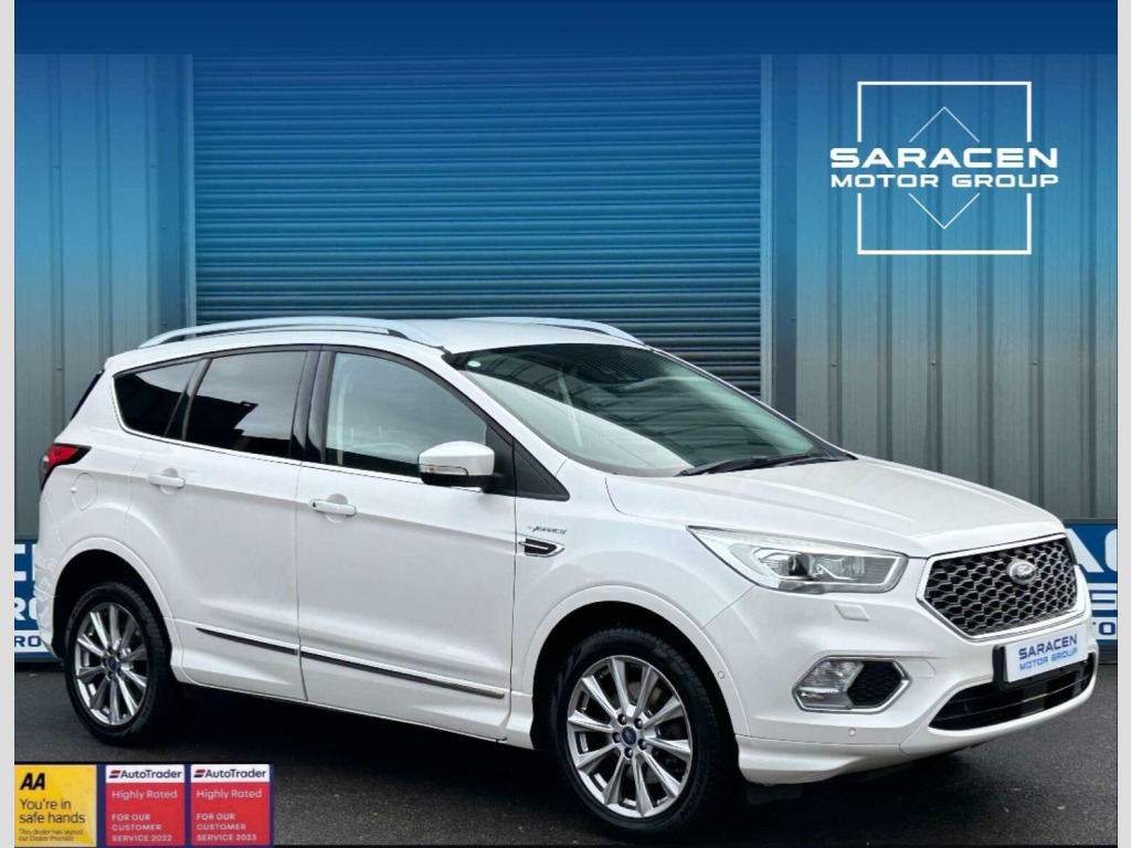 Ford Kuga 2.0 Vignale TDCi 4x4 Auto 4WD 5dr Euro 6 ULEZ FREE. Finished in Pearlescent white paint with Ebony honeycomb leather interior/ contrast white stitching. 18 alloy wheels, Ford SYNC3 premium navigation system with DAB, Apple Car play/ Android Auto, voice control, cruise control with speed limiter, enhanced active park assist, rear view camera, memory door mirrors, electric windows front and rear with global opening/closing function, space saver spare wheel, folding door mirrors with puddle lights, heated front windscreen, heated washer jets, heated front seats, heated steering wheel, LED DRLs, 6-way adjustable passenger seat with lumbar adjustment, 10-way power adjustable drivers seat, dual zone climate control, air conditioning, hands free power tailgate, keyless start, ambient interior lighting, rain sensing wipers, ebony leather multifunction steering wheel, hill start assist. Here at Saracen Motor Group we have been awarded AA Platinum dealership recognition along with being nominated for best customer service by Autotrader for 2021,2022,2023,2024 & 2025. We are a 5-star dealership with over 600 5-star reviews across all internet platforms including Autotrader and have been regarded as one of the best dealerships to buy from in the UK. Our preparation inspected each vehicle to the highest level possible for its age and mileage. You can rest assure your next car has been cared for to the highest standard. Service history, V5 and the HPI certificate will all be present on viewing and collection. With our location based in Battlesbridge, Essex you can enjoy a haggle-free buying experience where you can drive away the same day if prior arranged, additional fees apply please see our website for details.