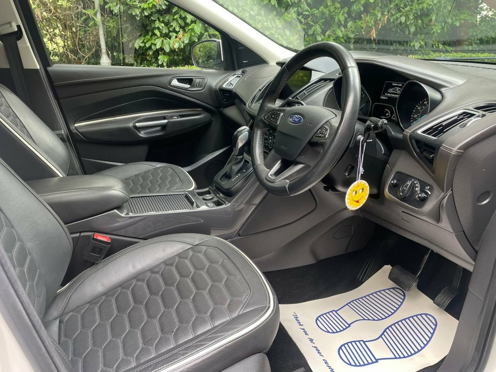 Here At Simply Car Sales We Are Proud To Present This 2017/617 Ford Kuga 'Vignale' 2.0 Tdci Eco Blue Auto 4x4 . Finished In Gleaming Platinum Pearl White  With Contrasting Charcoal Windsor Black Leather Interior Trim. This Superb Example Comes Loaded With Specification Including Heated Leather Trim With Electrically Adjusted Drivers Seat With Memory Function,Panoramic Roof With Electric Retractable Blind,Dual Zone Electronic Climate Control,Heated Leather Steering Wheel,Ford Sync 3 Premium Sound System With Full Colour Satellite Navigation Apple Car Play And Android Connectivity, 18 Inch Multi Spoke Shadow Chrome Alloy Wheels, Cruise Control,Parallel Park Assist,Hands Free Electric Tailgate,Auto Bi-Xenon Lights,Full colour Reverse Camera,Front And Rear Parking Sensors,Powerfold Mirrors,Privacy Glass,Quick Clear Heated Windscreen,Piano Black Gloss Interior Trim, Bluetooth Telephone Preparation With Bluetooth Audio, DAB Digital Radio With USB Connectivity,Multi Functional Steering Wheel,Remote Locking (With 2 x Keys)  Electric Windows and Much Much More !!! An Ideal Family Car This Ford Kuga Is Euro 6 And ULEZ Compliant !!. At Simply Car Sales we know how much a car means to you - we're dedicated to providing the best customer experience before and after your purchase. Which is Why This Car is Supplied With 12 Mts MOT and a Comprehensive 3 Mts Warranty To Give You Complete Peace Of Mind. Appearance Pack, Vignale Bumper Styling Pack, Windsor Leather - Charcoal Black, White Platinum, Heated Steering Wheel, Power Opening Panoramic Roof, 18in Alloy Wheels - Unique 5x2-Spoke - S, Accessory Power Socket - 12V, Accessory Power Socket - 12v in Luggage , Airbags - Driver and Front Passenger, Airbags - Drivers Knee, Airbags - Drivers and Front Passenger Fr, Airbags - Front Side Impact, Armrest - Folding Centre - Rear, Audible Text Messaging - Voice Control a, Automatic Dimming Rear View Mirror, Automatic Headlights - Rain Sensing Wipe, Bi-Xenon Headlights with Dynamic Bending, Centre Console, Child Locks - Manually Adjustable Rear D, Courtesy Light - Footwell Illumination, Courtesy Li