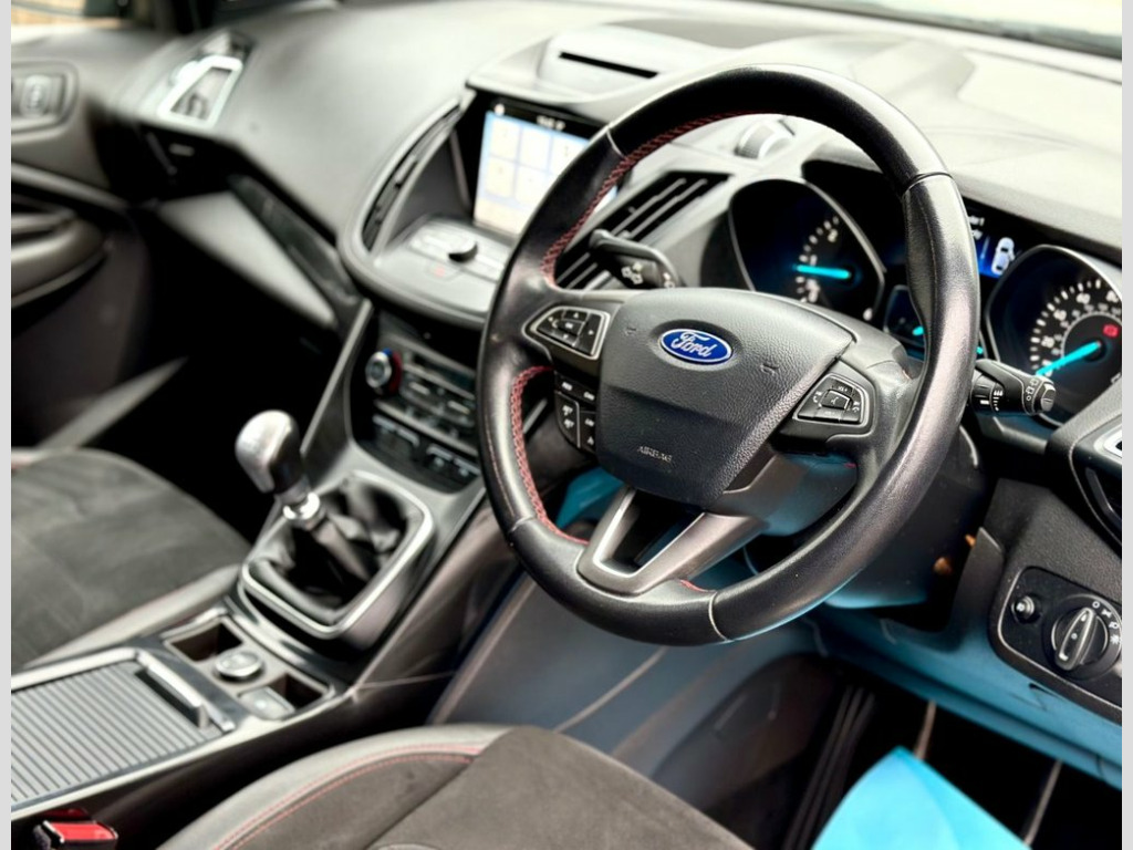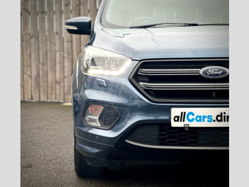 This 2018 Ford Kuga TDCi ST-Line offers a compelling blend of style and efficiency, boasting a robust 2.0L diesel engine that meets Euro 6 emissions standards. As an ST-Line model, it presents a sporty aesthetic combined with practical SUV versatility. This particular vehicle is noted for its low insurance group, making it an economical choice for many drivers. The ST-Line trim level enhances the Kuga's appeal with a range of desirable features designed to elevate your driving experience. These highlights demonstrate how this Ford Kuga stands out from other vehicles in its class, offering a refined and enjoyable journey. Includes Apple and Android Car Play - A fantastic feature, a very safe and fun way to communicate as well as navigate your way around! This allows you to sync your smartphone up to your car's infotainment system, allowing real-time navigation, hands-free phone access, and jamming to your favourite tunes! For compatible Apple iphones this system, developed by Apple, lets you use Siri, Apple's voice-activated assistant, to: Compose messages, get news updates and calendar reminders as well as access real time Navigation, access WhatsApp and Text messages as well as choose tunes from your own music collection. Other features include auto headlights with daytime LED running lights, 2 x USB input, drivers armrest with storage, Bluetooth, Bluetooth audio music connectivity, DAB Radio, Sst Nav, multi functional steering wheel controls, front windscr Chrome Blue, Rear Privacy Glass, Rear View Camera