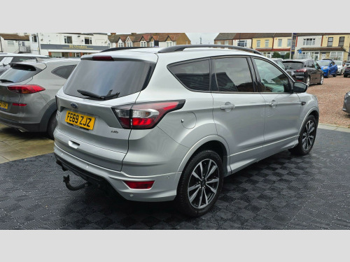 This 2019 Ford Kuga TDCi ST-Line offers a superb blend of style and capability, boasting a robust 2.0L diesel engine and a sophisticated Four Wheel Drive system. As a Euro 6 compliant vehicle, it meets modern emission standards, ensuring efficiency and reduced environmental impact. The ST-Line trim level enhances its sporty appeal, while notable features like the Enhanced Active Park Assist, complete with front and rear parking sensors, make manoeuvring in tight spaces effortless. Inside, you'll appreciate the comfort provided by the DEATC Dual-Zone Electronic Automatic Temperature Control, allowing both driver and passenger to set their preferred climate.The Kuga TDCi ST-Line stands out from other vehicles in its class thanks to its comprehensive suite of driver aids and premium comfort features. The inclusion of Enhanced Active Park Assist is a significant advantage, simplifying parking scenarios and providing peace of mind. Furthermore, the advanced climate control system ensures a pleasant journey for everyone on board, regardless of external weather conditions. This Ford Kuga is designed to deliver a refined and capable driving experience, making it an excellent choice for those seeking a versatile and well equipped SUV.At Brilliant Motors, we are excited to present this vehicle, which has undergone a thorough service and inspection. A full service history is provided, and the car has been meticulously cleaned inside and out. We welcome any inspection or test drive, and all of our vehicles are HPI clear. The vehicle comes with a 90-day basic warranty covering the engine and gearbox, with competitive extended warranty options available for added peace of mind. We offer nationwide home delivery and a 7-day money-back guarantee for online sales. Part exchange is accepted, and we are open 7 days a week. As an FCA registered dealer, we also provide financing options. For more information, please visit our website at www.brilliantmotors.co.uk. v power socket - load compartment, 18in alloy wheels - 5x2 spoke, 6-way manual passenger seat with lumbar adjustment, airbags - driver and front passenger, airbags - drivers knee, airbags - front side impact, airbags - front and rear side curtain, alloy foot pedals, anti-lock braking system - abs with electronic stability control - esc, armrest - folding centre - rear, audible text messaging - voice control and usb connectivity, black roof rails, centre console, child locks - manual on rear doors, courtesy lights - front and rear, cruise control with active speed limiter, deatc - dual-zone electronic automatic temperature control, dark headliner, door lever - chrome finish, eba - emergency brake assist, epas - electric power assisted steering, esp - electronic stability programme, electric parking brake, engine immobiliser, enhanced active park assist, fog lights - front, ford power starter button, ford sync3 dab navigation system, front seat - drivers manual height - fore-aft and recline adjustment, front seat - passenger manual height - fore-aft and seatback angle adjustment, front seats - seat-back map pockets, front suspension - independent with macpherson struts and anti-roll bar, front and rear floor mats with red stitching, full body styling kit, headlights - halogen, ips - intelligent protection system, led daytime running lights, load compartment carpet, locking wheel nuts, mini spare wheel - 17in steel, mykey, paddle shift, power folding door mirrors with puddle lights, quickclear heated front windscreen with heated washer jets, rain sensitive windshield wipers, rear parking sensors, rear seat - 60-40 split folding seat back and cushion with multi-step recline function, rear seats - 2-way head restraint up-down, rear suspension - independent control blade multi-link system and anti-roll bar, remote central-double locking, scuff plates - front, seats - drivers with manual lumbar support adjustment, seats - isofix mounting provision for child seats - outer seats only, sports suspension, steering column - rake and reach adjustment, steering wheel and gear knob - leather with red stitching, thatcham category 1 alarm, tie-down hooks, tonneau cover, twin exhausts and rear diffuser, tyre pressure monitoring system, windows - electrically operated front and rear with one touch lowering-closing on drivers side and global closing
