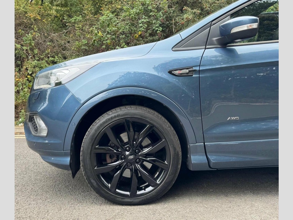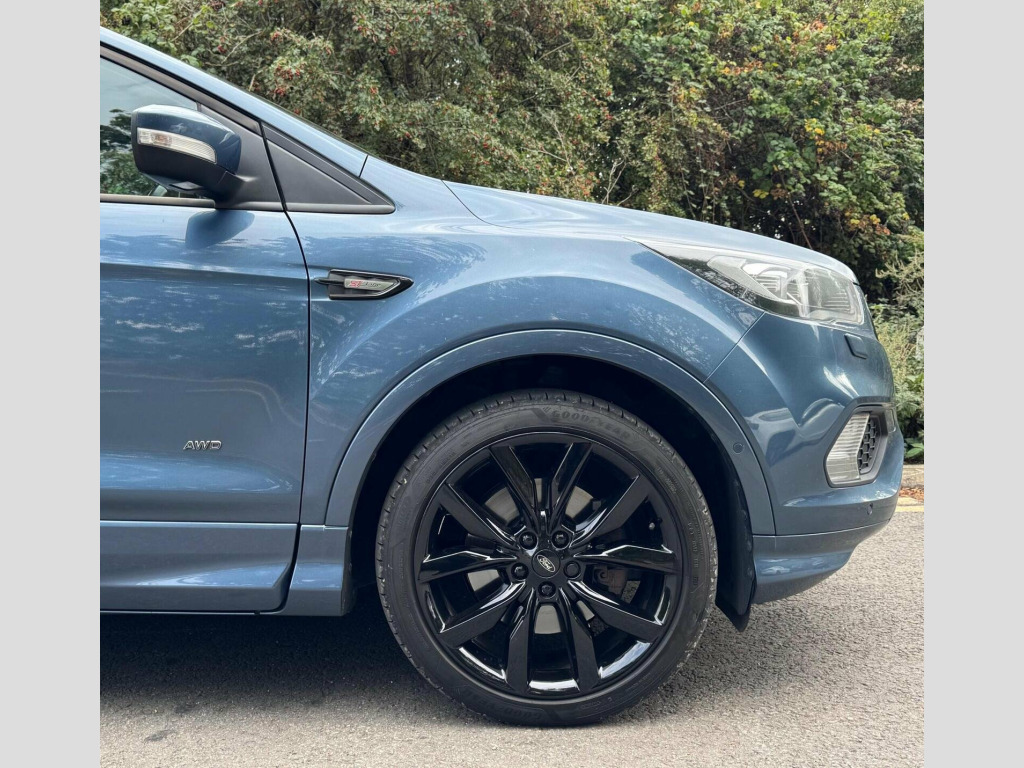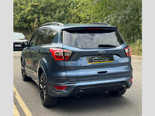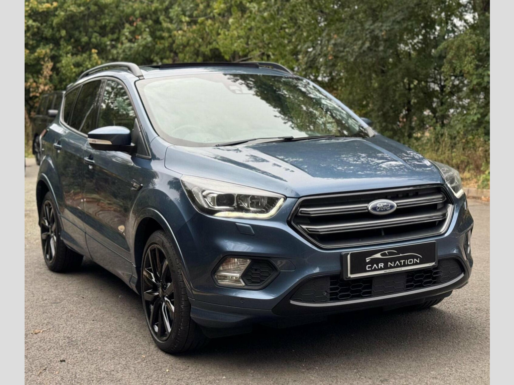 This 2019 Ford Kuga TDCi ST-Line X offers a clear vehicle history, providing peace of mind for its next owner. This vehicle comes with a fantastic specification including Blind spot assist, Lane assist, Driver assistance pack, Premium Ford dab navigation system, Reverse camera, Sony sound system, Panoramic sunroof, Heated steering wheel, Heated front seats & much more! Powered by a robust 2.0L Diesel engine and featuring a capable Four Wheel Drive system, This Euro 6 compliant model is ready for any journey. Inside, youll find comfort and convenience with DEATC Dual-Zone Electronic Automatic Temperature Control, ensuring a pleasant cabin environment for all occupants. The ST-Line X trim also boasts Keyless Opening with a Hands Free Power Tailgate, making loading and unloading effortless, while Automatic Halogen Headlights with LED Daytime Running Lights enhance visibility. Further enhancing the driving experience, this Kuga includes a Power Opening Panoramic Roof, allowing you to enjoy the open sky. Both the driver and passenger seats are heated, offering welcome warmth on cooler days. These features, combined with the ST-Line X styling, indicate a higher specification and a more refined experience compared to other vehicles in its class. This well-equipped Ford Kuga represents a compelling choice for those seeking a versatile and comfortable SUV.