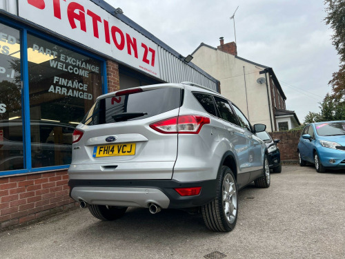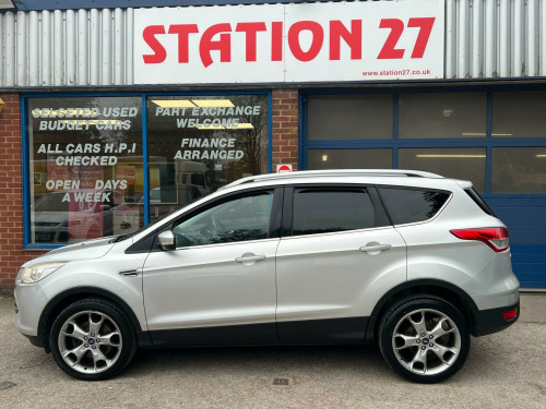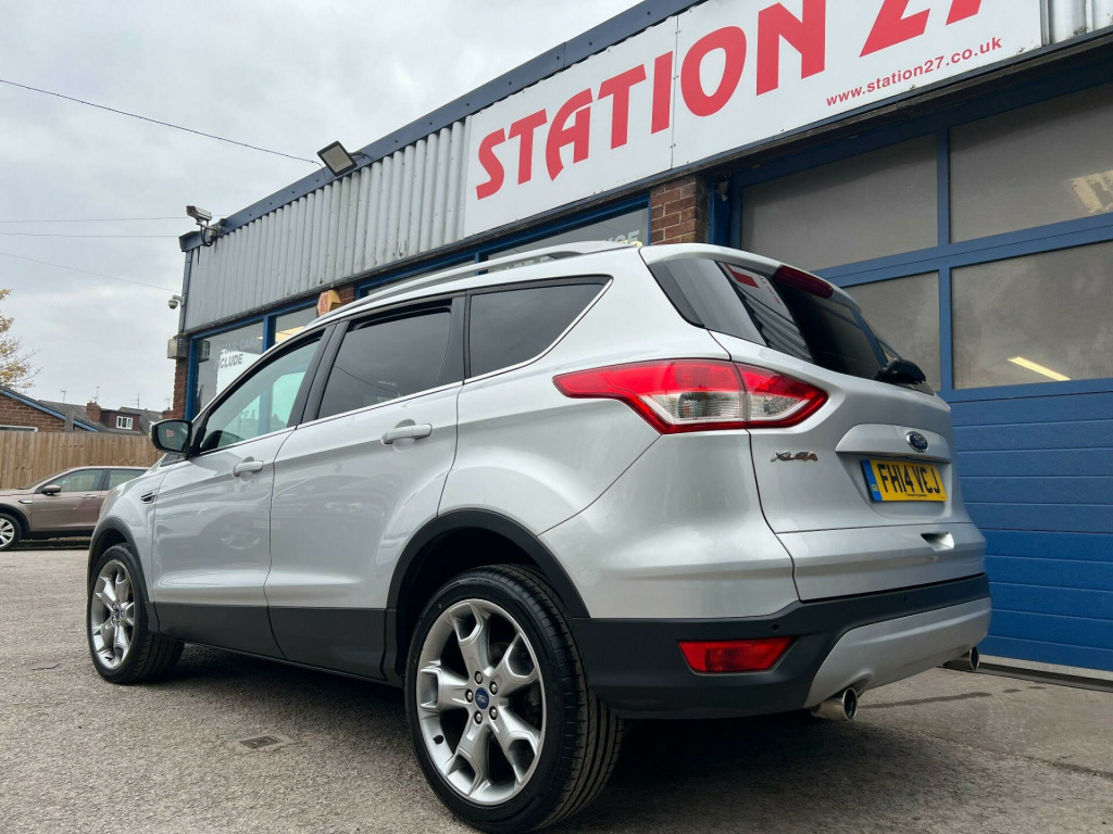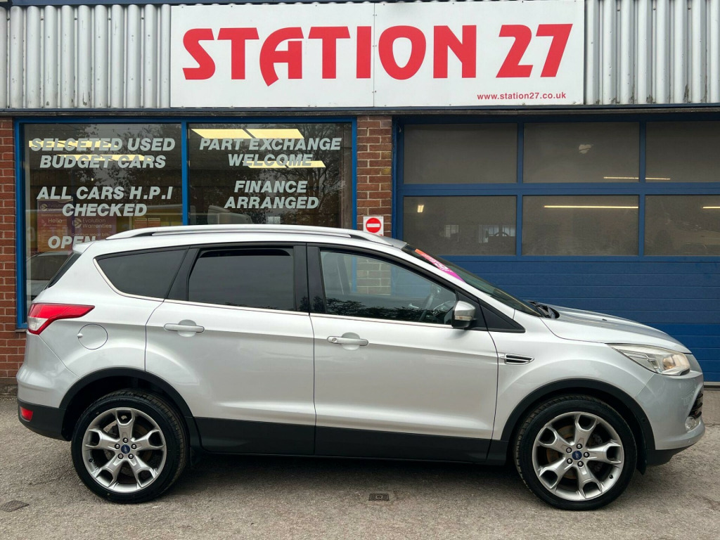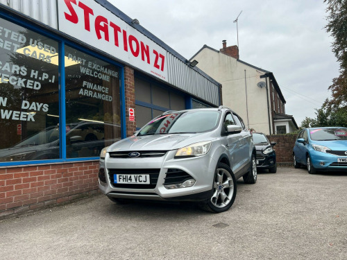 This 2014 Ford Kuga TDCi Titanium presents an exceptional opportunity with its remarkably low mileage of just 61,949 miles for its age, a clear vehicle history check, and an MOT valid until September 2026. Last serviced on 18th October 2025 at 61,949 miles, this 2.0L diesel model comes with a 6 month warranty for your peace of mind. The Titanium trim level ensures a well equipped driving experience, featuring rear parking sensors with parking assistance, dual zone electronic automatic climate control, and automatic headlights for added convenience.Enjoy the benefits of Bluetooth handsfree and voice control, making calls and managing your music safely on the go. This Kuga also boasts impressive fuel economy, achieving a highlight of 53 mpg, which, combined with its low CO2 emissions and low insurance group, indicates it is a more economical choice compared to similar vehicles. The front passenger seat offers manual fore and aft adjustment, further enhancing comfort for all occupants.www.station27.co.uk Are delighted to offer this 2014 Ford Kuga for sale with only 61949 Genuine miles, our car comes with;- 6 MONTH NATIONWIDE WARRANTY- MOT SEPTEMBER 2026 WITH NO ADVISORIES- SERVICE HISTORY- LAST SERVICED IN OCTOBER BY OURSELVES - BOTH REMOTE KEYS - FULL SET OF CARPET MATSOur Ford Kuga comes with comprehensive service history and has been serviced at 9789 miles, 18679 miles, 23806 miles, 28805 miles, 45244 miles and at 61949 miles by ourselves in October 2025. This also has an Mot until September 2026 with no advisories and both remote keys. Ready to drive home today. Nice spec with a Sony DAB stereo, Bluetooth phone and audio connection and front & rear parking sensors. rking sensor - rear, partial leather - vector - charcoal black, 17in alloy wheels, 4.2in tft display, abs - anti-lock braking system, aux connection, air conditioning - dual zone electronic automatic temperature control, airbags - drivers knee, airbags - front passenger, airbags - front and 2nd row curtain, airbags - side impact, alarm - thatcham category 1 with volume sensing and perimeter, audible text messaging, automatic dimming rear view mirror, automatic rain sensing wipers, bluetooth handsfree and voice control, body colour exterior mirrors, bounce-back sensors, courtesy light - footwell illumination, courtesy light - front and rear reading lights, cruise control with speed limiter, daytime running lamps, door handles - body colour, door lever - aluminium, door mirrors - electrically operated and heated, door mirrors - puddle lights, door mirrors with integrated indicators, drivers airbag, drivers seat lumbar support, eba - emergency brake assist, ebd - electronic brakeforce distribution, epas - electric power assisted steering, esp - electronic stability programme, electric windows - front and rear with one touch, emergency assistance, emergency brake warning, floor mats - carpet - front, ford easy-fuel capless refuelling system, ford power engine start-stop button, front fog lights, front fully adjustable 4 way head restraints, front seat - passengers manual fore-aft adjustment, front seat - passengers manual lumbar support adjustment, front upper grille - high-gloss black with chrome bar, gearshift knob - leather, hla - hill launch assist, headlights - automatic, headlights - courtesy delay, heated front windscreen, heated washer jets, ips - intelligent protection system, isofix, large stowage bin, load compartment - tie down hooks, locking wheel nuts, portable audio device connector, rsc - roll stability control, rear seat - folding centre armrest with 2 integrated cup holders and flip up storage, rear spoiler - body colour, remote central locking, scuff plates  - front-stainless steel, seats - 60-40 rear split back, seats - drivers manual height and fore-aft adjustment, seats - front sports, sony dab digital radio, sony radio cd with 8 speakers - mp3 compatible, spare wheel - mini steel, speakers - x8, steering column - rake and reach adjustment, steering wheel - 4 spoke leather trimmed, steering wheel - multifunction, storage - upper instrument panel, stowage pockets - front seatback, tft display screen, tsc - trailer stability programme, tvc - torque vectoring control, tinted glass - green, traction control - tc, twin exhaust outlet, two 12v power socket, usb connection, variable dimming of instrument cluster and radio screen display, variable sensitivity adjustment