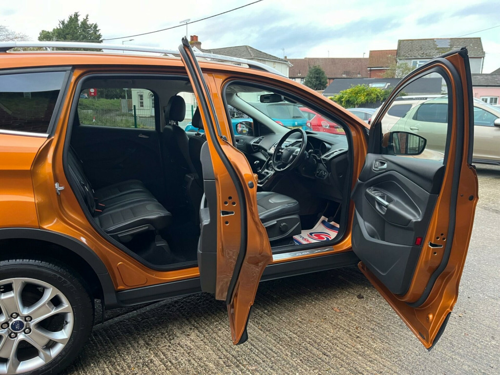Podium Cars are proud to offer this outstanding Ford Kuga. This is the highly desirable 2000cc Turbo Diesel Titanium model presented in the beautiful Metallic Tiger Eye Orange and fitted with the optional Appearance Pack. 2 Owners, the second since 2017. ULEZ Compliant. The mileage is supported by a Full Ford Dealership Service History. Serviced at 11k, 15k, 19k, 24k, 29k, 39k, 49k, 59k, 68k and 78k in September 2025. A new Cambelt and Water Pump have been fitted in November 2025. The MOT expires in September 2026, passed with No Advisories. Outstanding condition throughout and a lovely car to drive. A very genuine car that has been extremely well maintained and cared for since new. High Spec includes 18'' Alloy Wheels, Rear Privacy Glass, Roof Rails, Bluetooth Connectivity, Power Steering, Electric Windows and Mirrors, Remote Central Locking, Engine Start/Stop, Cruise Control, Air Conditioning, Automatic Lights and Wipers, Heated Front and Rear Screens, Tailored Floor Mats, 2 x Ford Keys, plus more. A lovely car that has clearly been very well cared for and extremely well maintained since new. This car is Hpi Clear. All of our cars are supplied with a 6 Month Bluechip Premium Warranty for your peace of mind. Extended Warranties are available at very competitive prices. A deposit to secure this car can be paid by Debit Card. We do not accept Credit Cards. The balance payment is required by Bank Transfer. Please read our Customer Reviews, we are very proud of our reputation. We are a self financed family business with a passion for Product Quality, Customer Service and Satisfaction. We have operated from our current Brantham location since June 2014. All Part Exchanges are considered, please talk to us before you sell your vehicle elsewhere. Please call us on 07875 599213 before travelling to us to ensure this vehicle is still available, and that we are able to give you the time and attention that you deserve.. 17in Alloy Wheels - 5x2 Spoke, 4.2in TFT Display, ABS - Anti-lock Braking System, AUX Connection, Air Conditioning - Dual Zone Electronic Automatic Temperature Control, Airbags - Drivers Knee, Airbags - Front Passenger, Airbags - Front and 2nd Row Curtain, Airbags - Side Impact, Alarm - Thatcham Category 1 with Volume Sensing and Perimeter, Armrest - Folding Centre - Rear, Audible Text Messaging, Automatic Dimming Rear View Mirror, Automatic Rain Sensing Wipers, Bluetooth Hands-free Phone, Body Colour Exterior Mirrors, Bounce-Back Sensors, Courtesy Light - Footwell Illumination, Courtesy Light - Front and Rear Reading Lights, Cruise Control with Speed Limiter, Daytime Running Lamps, Door Handles - Body Colour, Door Lever - Aluminium, Door Mirrors - Electrically Operated and Heated, Door Mirrors - Puddle Lights, Door Mirrors with Integrated Indicators, Drivers Airbag, Drivers Seat Lumbar Support, EBA - Emergency Brake Assist, EBD - Electronic Brakeforce Distribution, EPAS - Electric Power Assisted Steering, ESP - Electronic Stability Programme, Electric Windows - Front and Rear with One Touch, Emergency Assistance, Emergency Brake Warning, Floor Mats - Carpet - Front, Ford Easy-Fuel Capless Refuelling System, Ford Power Engine Start-Stop Button, Ford SYNC, Front Fog Lights, Front Fully Adjustable 4 Way Head Restraints, Front Seat - Passengers Manual Lumbar Support Adjustment, Front upper grille - High-gloss black with chrome bar, Gearshift Knob - Leather, HLA - Hill Launch Assist, Headlights - Automatic, Headlights - Courtesy Delay, Heated Front Windscreen, Heated Washer Jets, IPS - Intelligent Protection System, ISOFIX, Large Stowage Bin, Load Compartment - Tie Down Hooks, Locking Wheel Nuts, Portable Audio Device Connector, RSC - Roll Stability Control, Rear Seat - Folding Centre Armrest with 2 Integrated Cup Holders and Flip up Storage, Rear Spoiler - Body Colour, Remote Central Locking, Scuff Plates - Front-Stainless Steel, Seats - 60-40 Rear Split Back, Seats - Drivers Manual Height and Fore-Aft Adjustment, Seats - Front Sports, Sony CD-Radio Player-MP3 Compatibility, Sony DAB Digital Radio, Spare Wheel - Mini Steel, Speakers - x8, Steering Column - Rake and Reach Adjustment, Steering Wheel - 4 Spoke Leather Trimmed, Steering Wheel - Multifunction, Storage - Upper Instrument Panel, Stowage Pockets - Front Seatback, TSC - Trailer Stability Programme, TVC - Torque Vectoring Control, Tinted Glass - Green, Traction Control - TC, Twin Exhaust Outlet, Two 12V Power Socket, Tyre Pressure Monitoring System, USB Connection - iPod Connectivity, Variable Dimming of Instrument Cluster and Radio Screen Display, Voice Control - Audio, 2 Owners, Full Ford Dealership Service History, New Cambelt and Water Pump fitted Nov 2025, Rare Colour, Outstanding Condition Throughout, 2 x Ford Keys, Low Rate Finance Available, No Admin Fees or Hidden Charges, Appearance Pack, 18in Alloy Wheels - 5x2 Spoke. Full dealership history