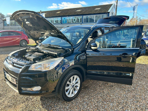 Romsey Car Centre are delighted to offer this Lovely Ford Kuga Titanium in Black with with complementing half black leather seats. This Spacious SUV comes with a Fantastic main dealer & Independent garage service history done at 11,197 miles, 23,806 miles, 29,918 miles, 40,650 miles, 45,972 miles, 53,744 miles, 60,290 miles, 66,914 miles and 75,476miles up to date with a long MOT, Features include Front parking sensors, Black half Leather Trim, Air conditioning, Dual climate Control, Bluetooth, Auto lights, USB, 6 speed manual gear-box, Electric mirrors