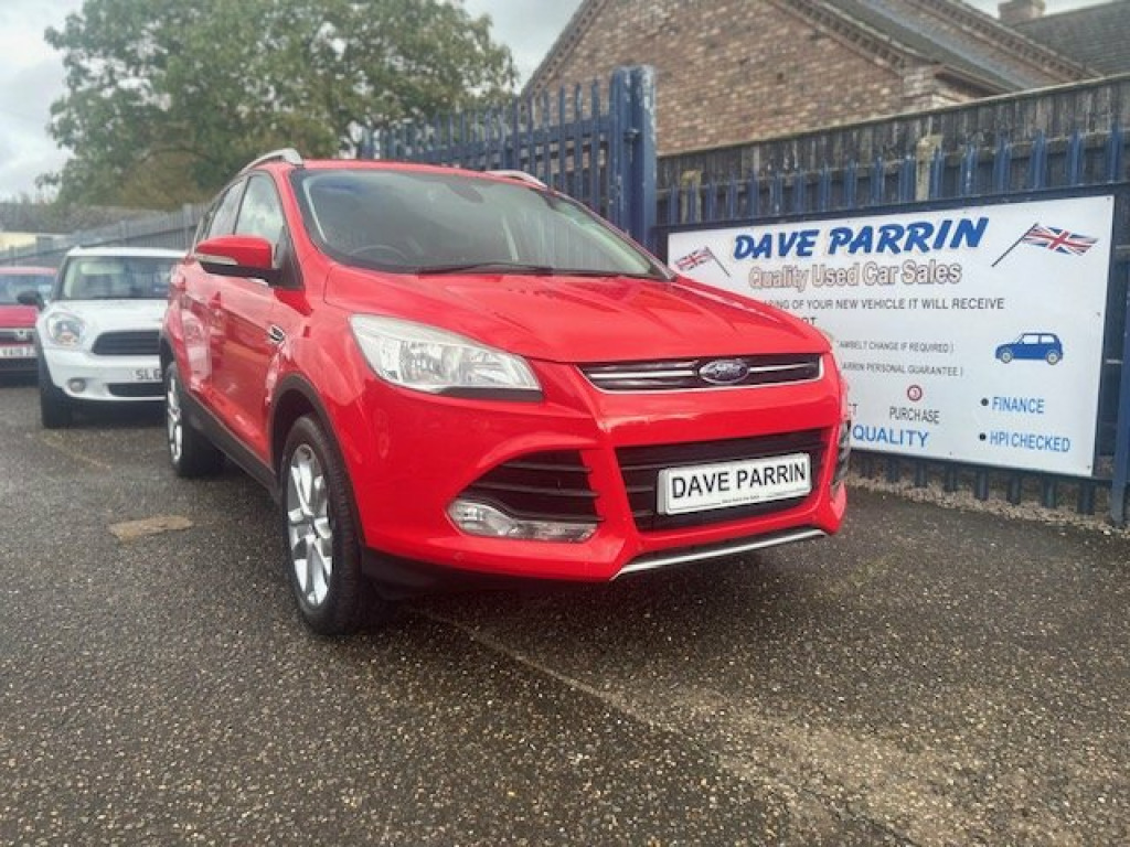 14 FORD KUGA 2.0 TDCi DIESEL ESTATE TITANIUM, 105,000 MILES WITH FULL SERVICE HISTORY, POWER ASSISTED STEERING, CENTRAL LOCKING, AIR CONDITIONING. ALLOY WHEELS, PARKING SENSORS, DAB RADIO, BLUE TOOTH PHONE CONNECTION. BRIGHT RED, SUPERB EXAMPLE £ 7495, , ALL OF OUR VEHICLES COME WITH:, ???? 12 months MOT, ???? Full service (including cam belt if required), ???? 3 months warranty (Dave Parrin personal guarantee), ???? Full Professional Valet, , ???? Viewing & Test Drive Welcome, ???? Part exchange welcome, ???? Finance available, ???? All cars are HPi checked