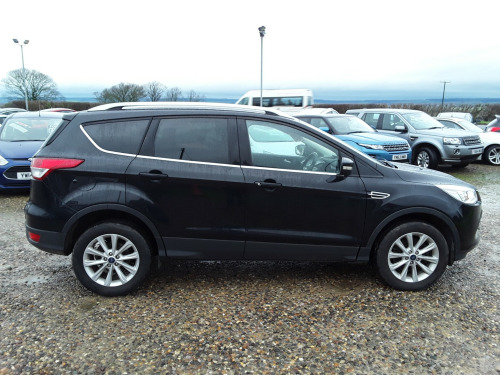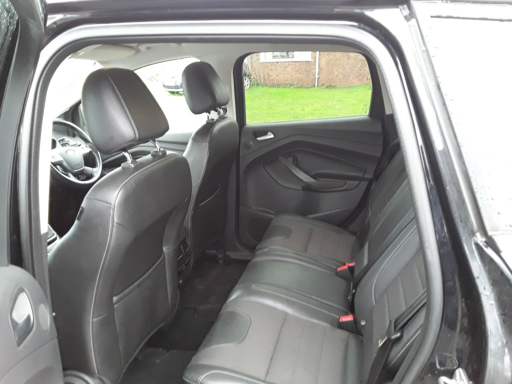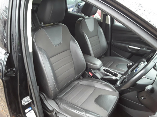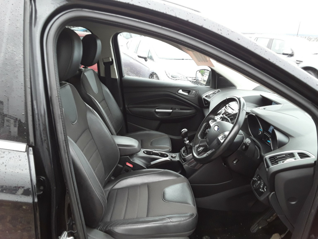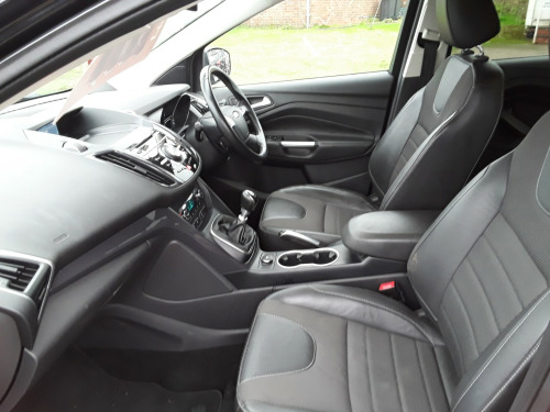 SAPPHIRE BLACK METALLIC WITH BLACK HALF LEATHER SEATS. NEWER SHAPE FORD KUGA 2.0 TDCI TITANIUM 4X4.ONLY 91,000 MILES BY ONE PREVIOUS OWNER. 6 SERVICE STAMPS IN THE BOOK. COMES WITH 12 MONTHS M.O.T.AND A FRESH SERVICE, WITH NEW CAM-BELT KIT AND WATER PUMP. JUST HAD FOUR NEW FORD TYRE PRESSURE SENSORS AT £234 FITTED.EXCELLENT CONDITION INSIDE AND OUT. DRIVES SUPERB. 1ST TO SEE WILL BUY. ALL READY FOR WINTER. VERY POPULAR SUV.