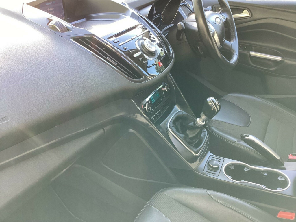 This 2014 Ford Kuga TDCi Titanium boasts a full service history, ensuring its excellent provenance. This capable Four Wheel Drive model is powered by a 2.0L Diesel engine and comes with a 12 month warranty for your peace of mind. Inside, you'll find Dual Zone Electronic Automatic Temperature Control for personalised comfort, along with Bluetooth handsfree and voice control for seamless connectivity. The convenience of automatic headlights means you'll always have optimal visibility.The Titanium trim level offers a refined driving experience, further enhanced by its low insurance group, making it an economical choice. With 12 months MOT provided on purchase, this Ford Kuga is ready for immediate use. These features collectively demonstrate how this particular Kuga offers a superior ownership proposition compared to other vehicles in its class. in alloy wheels, 4.2in tft display, abs - anti-lock braking system, aux connection, air conditioning - dual zone electronic automatic temperature control, airbags - drivers knee, airbags - front passenger, airbags - front and 2nd row curtain, airbags - side impact, alarm - thatcham category 1 with volume sensing and perimeter, audible text messaging, automatic dimming rear view mirror, automatic rain sensing wipers, bluetooth handsfree and voice control, body colour exterior mirrors, bounce-back sensors, courtesy light - footwell illumination, courtesy light - front and rear reading lights, cruise control with speed limiter, daytime running lamps, door handles - body colour, door lever - aluminium, door mirrors - electrically operated and heated, door mirrors - puddle lights, door mirrors with integrated indicators, drivers airbag, drivers seat lumbar support, eba - emergency brake assist, ebd - electronic brakeforce distribution, epas - electric power assisted steering, esp - electronic stability programme, electric windows - front and rear with one touch, emergency assistance, emergency brake warning, floor mats - carpet - front, ford easy-fuel capless refuelling system, ford power engine start-stop button, front fog lights, front fully adjustable 4 way head restraints, front seat - passengers manual lumbar support adjustment, front upper grille - high-gloss black with chrome bar, gearshift knob - leather, hla - hill launch assist, headlights - automatic, headlights - courtesy delay, heated front windscreen, heated washer jets, ips - intelligent protection system, isofix, large stowage bin, load compartment - tie down hooks, locking wheel nuts, portable audio device connector, rsc - roll stability control, rear seat - folding centre armrest with 2 integrated cup holders and flip up storage, rear spoiler - body colour, remote central locking, scuff plates - front-stainless steel, seats - 60-40 rear split back, seats - drivers manual height and fore-aft adjustment, seats - front sports, sony dab digital radio, sony radio cd with 8 speakers - mp3 compatible, spare wheel - mini steel, speakers - x8, steering column - rake and reach adjustment, steering wheel - 4 spoke leather trimmed, steering wheel - multifunction, storage - upper instrument panel, stowage pockets - front seatback, tft display screen, tsc - trailer stability programme, tvc - torque vectoring control, tinted glass - green, traction control - tc, twin exhaust outlet, two 12v power socket, usb connection, variable dimming of instrument cluster and radio screen display, variable sensitivity adjustment, visual awd monitor