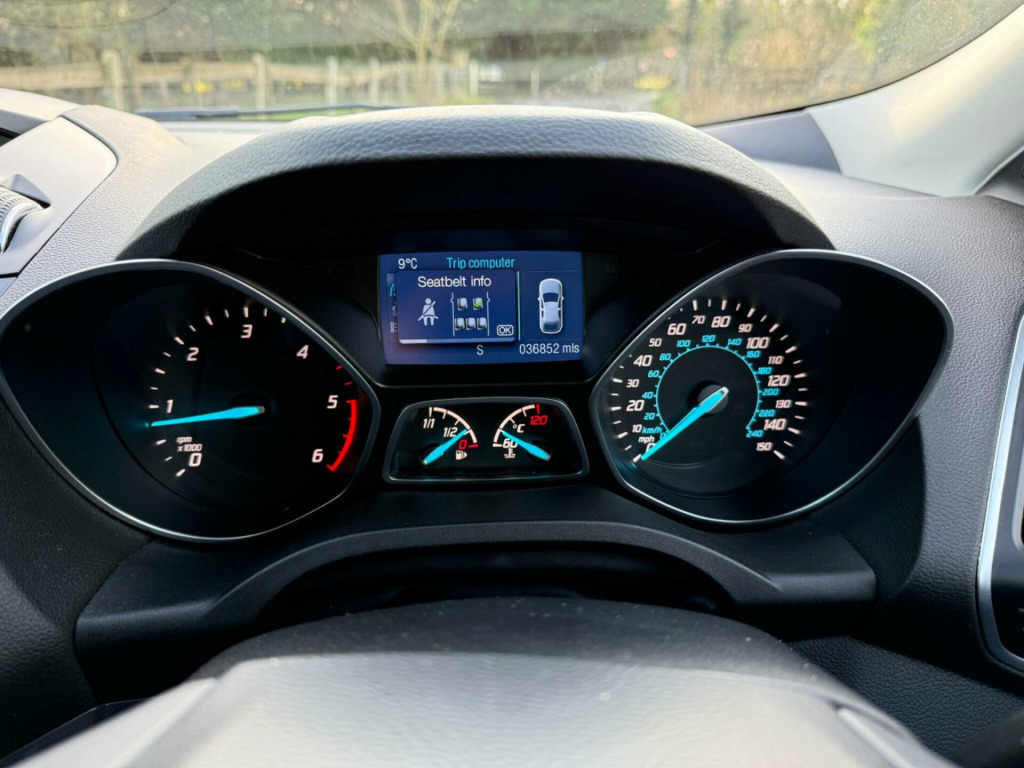 This 2015 Ford Kuga TDCi Titanium presents an exceptional opportunity with its remarkably low mileage of just 36,000 miles, a significant advantage for a vehicle of its age, and having been owned by only two previous keepers. This Four Wheel Drive model is equipped with a 2.0 litre diesel engine and meets the Euro 6 emission standards. Inside, you will find comfort and convenience with dual zone electronic automatic air conditioning and the ease of Bluetooth hands-free phone connectivity. The headlights automatically adjust, ensuring optimal visibility in varying conditions.The Ford Kuga TDCi Titanium stands out with its impressive fuel economy, achieving a highlight of 54 miles per gallon, which indicates it is more efficient than many comparable vehicles. Furthermore, its low CO2 emissions are another key benefit, suggesting a more environmentally conscious choice. This combination of excellent fuel efficiency and low emissions, alongside its desirable features and low ownership history, makes this Kuga a compelling option. This vehicle will be supplied with a new MOT and service before collection. HPI clear, 3 Month Warranty Included With The Option To Extend, Bespoke Finance Packages can be arranged , Debit Cards and Bank Transfers accepted, Part Exchange Welcome. Call our office today for more information. We are located in Chalfont St Peter, approximately 5 minutes from junction 17 on the M25 and around 10 minutes from junction 1 on the M40. Collection from local train stations can be arranged. in alloy wheels - 5x2 spoke, 4.2in tft display, abs - anti-lock braking system, aux connection, air conditioning - dual zone electronic automatic temperature control, airbags - drivers knee, airbags - front passenger, airbags - front and 2nd row curtain, airbags - side impact, alarm - thatcham category 1 with volume sensing and perimeter, armrest - folding centre - rear, audible text messaging, automatic dimming rear view mirror, automatic rain sensing wipers, bluetooth hands-free phone, body colour exterior mirrors, bounce-back sensors, courtesy light - footwell illumination, courtesy light - front and rear reading lights, cruise control with speed limiter, daytime running lamps, door handles - body colour, door lever - aluminium, door mirrors - electrically operated and heated, door mirrors - puddle lights, door mirrors with integrated indicators, drivers airbag, drivers seat lumbar support, eba - emergency brake assist, ebd - electronic brakeforce distribution, epas - electric power assisted steering, esp - electronic stability programme, electric windows - front and rear with one touch, emergency assistance, emergency brake warning, floor mats - carpet - front, ford easy-fuel capless refuelling system, ford power engine start-stop button, ford sync, front fog lights, front fully adjustable 4 way head restraints, front seat - passengers manual lumbar support adjustment, front upper grille - high-gloss black with chrome bar, gearshift knob - leather, hla - hill launch assist, headlights - automatic, headlights - courtesy delay, heated front windscreen, heated washer jets, ips - intelligent protection system, isofix, large stowage bin, load compartment - tie down hooks, locking wheel nuts, portable audio device connector, rsc - roll stability control, rear seat - folding centre armrest with 2 integrated cup holders and flip up storage, rear spoiler - body colour, remote central locking, scuff plates - front-stainless steel, seats - 60-40 rear split back, seats - drivers manual height and fore-aft adjustment, seats - front sports, sony cd-radio player-mp3 compatibility, sony dab digital radio, spare wheel - mini steel, speakers - x8, steering column - rake and reach adjustment, steering wheel - 4 spoke leather trimmed, steering wheel - multifunction, storage - upper instrument panel, stowage pockets - front seatback, tsc - trailer stability programme, tvc - torque vectoring control, tinted glass - green, traction control - tc, twin exhaust outlet, two 12v power socket, tyre pressure monitoring system, usb connection - ipod connectivity, variable dimming of instrument cluster and radio screen display, visual awd monitor, voice control - audio