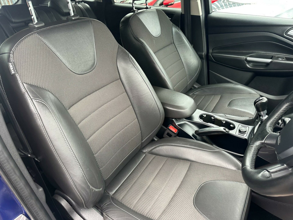 This 2015 Ford Kuga TDCi Titanium is a superb example, having been owned by only two previous keepers. It boasts a robust 2.0 litre diesel engine paired with a capable four wheel drive system, ensuring confident performance in various conditions. As a Euro 6 compliant vehicle, it meets modern emissions standards. Inside, you'll find the comfort of dual zone electronic automatic air conditioning, allowing both driver and passenger to set their preferred temperatures. The Titanium trim also includes automatic headlights, which switch on when needed, and Bluetooth hands free phone connectivity for safer communication on the go.With an impressive fuel economy of 54 miles per gallon, this Kuga TDCi Titanium offers excellent running costs, making it a more economical choice compared to many similar vehicles. Its low CO2 emissions further contribute to its appeal, indicating a more environmentally conscious performance. This combination of efficiency, comfort, and practical features makes the Ford Kuga TDCi Titanium a well rounded and appealing option.. 17in Alloy Wheels - 5x2 Spoke, 4.2in TFT Display, ABS - Anti-lock Braking System, AUX Connection, Air Conditioning - Dual Zone Electronic Automatic Temperature Control, Airbags - Drivers Knee, Airbags - Front Passenger, Airbags - Front and 2nd Row Curtain, Airbags - Side Impact, Alarm - Thatcham Category 1 with Volume Sensing and Perimeter, Armrest - Folding Centre - Rear, Audible Text Messaging, Automatic Dimming Rear View Mirror, Automatic Rain Sensing Wipers, Bluetooth Hands-free Phone, Body Colour Exterior Mirrors, Bounce-Back Sensors, Courtesy Light - Footwell Illumination, Courtesy Light - Front and Rear Reading Lights, Cruise Control with Speed Limiter, Daytime Running Lamps, Door Handles - Body Colour, Door Lever - Aluminium, Door Mirrors - Electrically Operated and Heated, Door Mirrors - Puddle Lights, Door Mirrors with Integrated Indicators, Drivers Airbag, Drivers Seat Lumbar Support, EBA - Emergency Brake Assist, EBD - Electronic Brakeforce Distribution, EPAS - Electric Power Assisted Steering, ESP - Electronic Stability Programme, Electric Windows - Front and Rear with One Touch, Emergency Assistance, Emergency Brake Warning, Floor Mats - Carpet - Front, Ford Easy-Fuel Capless Refuelling System, Ford Power Engine Start-Stop Button, Ford SYNC, Front Fog Lights, Front Fully Adjustable 4 Way Head Restraints, Front Seat - Passengers Manual Lumbar Support Adjustment, Front upper grille - High-gloss black with chrome bar, Gearshift Knob - Leather, HLA - Hill Launch Assist, Headlights - Automatic, Headlights - Courtesy Delay, Heated Front Windscreen, Heated Washer Jets, IPS - Intelligent Protection System, ISOFIX, Large Stowage Bin, Load Compartment - Tie Down Hooks, Locking Wheel Nuts, Portable Audio Device Connector, RSC - Roll Stability Control, Rear Seat - Folding Centre Armrest with 2 Integrated Cup Holders and Flip up Storage, Rear Spoiler - Body Colour, Remote Central Locking, Scuff Plates - Front-Stainless Steel, Seats - 60-40 Rear Split Back, Seats - Drivers Manual Height and Fore-Aft Adjustment, Seats - Front Sports, Sony CD-Radio Player-MP3 Compatibility, Sony DAB Digital Radio, Spare Wheel - Mini Steel, Speakers - x8, Steering Column - Rake and Reach Adjustment, Steering Wheel - 4 Spoke Leather Trimmed, Steering Wheel - Multifunction, Storage - Upper Instrument Panel, Stowage Pockets - Front Seatback, TSC - Trailer Stability Programme, TVC - Torque Vectoring Control, Tinted Glass - Green, Traction Control - TC, Twin Exhaust Outlet, Two 12V Power Socket, Tyre Pressure Monitoring System, USB Connection - iPod Connectivity, Variable Dimming of Instrument Cluster and Radio Screen Display, Visual AWD Monitor, Voice Control - Audio.