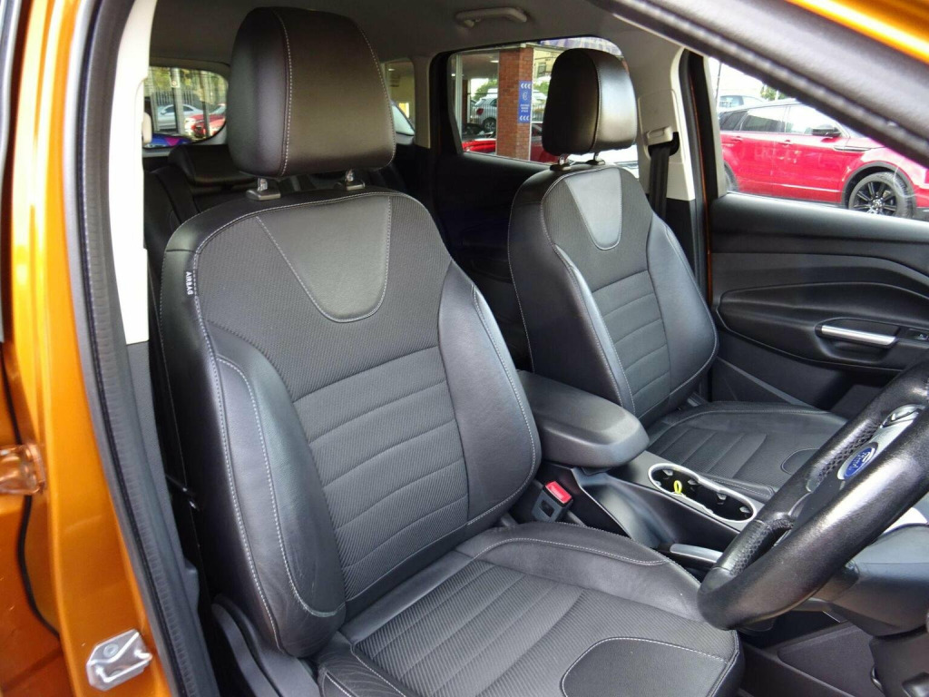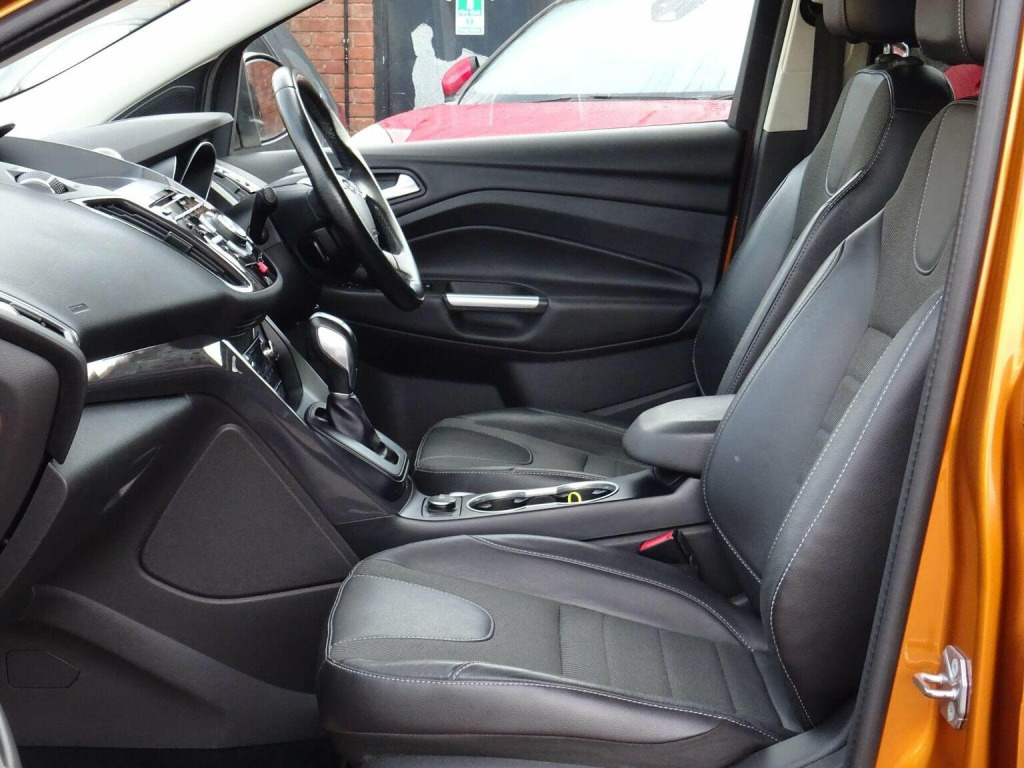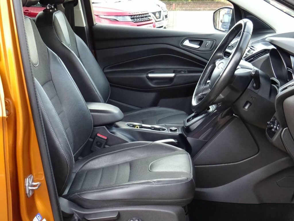 Central Motors are pleased to offer this lovely, 2 owner from new 2015-15 plate Ford Kuga 2.0 TDCi 180ps Euro 6 AWD Titanium AWD Automatic finished in Tiger Eye metallic with ½ Black leather trim. The car is in excellent order throughout and shines bright in the exclusive colour of Tiger Eye metallic. Being a Titanium it is packed with equipment and was Fords best-selling variant of the time. This car benefits from rear parking sensors & appearance pack (silver finish roof rails & privacy glass) that were factory options on this model at the time. The car also benefits from a Towbar. The car boasts 10 services in total and we have all handbooks, wallet & 2 keys. The car comes with 3 months warranty which can be used nationwide & extended up to 24 months at additional cost. Central Motors has been trading in East Street Chard for nearly 100 years and have been under the same ownership for over 40 years. , We are located in East Street Chard TA20 1EP just off of the town centre on the A30 trunk road and also within easy reach of Junction 25 of the M5 Motorway at Taunton. We provide a relaxed but professional buying experience. We check our prices regularly to make sure our cars are competitively priced. , We also carry out thorough checks in our approved workshops and prepare our cars to higher standards than most. , You are welcome to come and view/test drive the car you are interested in at our site in Chard. Please call ahead to make sure the car you are coming to view is still available, we can then put you in the diary so you can be assured we have time to look after you. Please make sure to bring your driving licence as we need this prior to a test drive. If you have a part exchange please make sure you bring it with you for an exact valuation. Call us on 01460 64747 to make an appointment with our sales team.