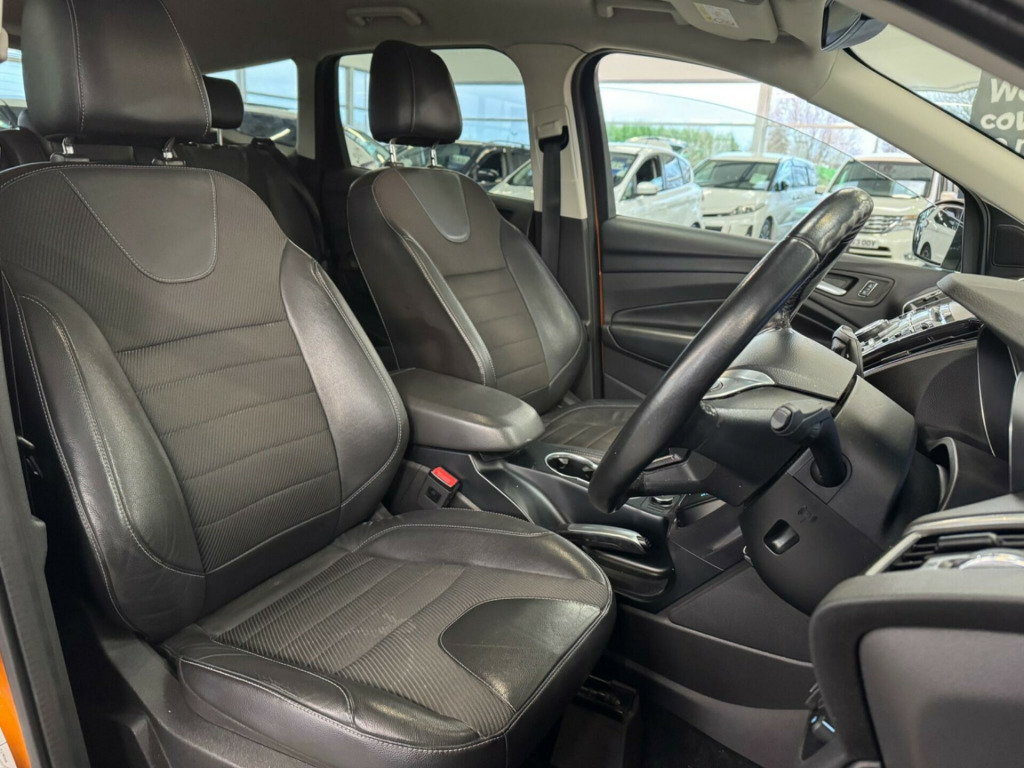 This 2015 Ford Kuga TDCi Titanium is a standout choice, boasting exceptionally low mileage for its age with only 61,000 miles covered and having had just two owners. This well maintained example features a powerful yet efficient 2.0L diesel engine paired with a Four Wheel Drive drivetrain, ensuring confident handling in various conditions. It meets Euro 6 emissions standards, and the Titanium trim level brings a host of desirable features, including automatic headlights for enhanced visibility, dual zone electronic automatic climate control for personalised comfort, and Bluetooth hands free phone connectivity for seamless communication on the go.The fuel economy is a significant highlight, achieving an impressive 52 miles per gallon, which indicates its superior efficiency compared to many other vehicles in its class. This Ford Kuga offers a compelling blend of practicality, comfort, and economy, making it an excellent option for those seeking a reliable and well equipped SUV. Its combination of low mileage, minimal ownership, and advanced features makes it a truly appealing proposition. in alloy wheels - 5x2 spoke, 4.2in tft display, abs - anti-lock braking system, aux connection, air conditioning - dual zone electronic automatic temperature control, airbags - drivers knee, airbags - front passenger, airbags - front and 2nd row curtain, airbags - side impact, alarm - thatcham category 1 with volume sensing and perimeter, armrest - folding centre - rear, audible text messaging, automatic dimming rear view mirror, automatic rain sensing wipers, bluetooth hands-free phone, body colour exterior mirrors, bounce-back sensors, courtesy light - footwell illumination, courtesy light - front and rear reading lights, cruise control with speed limiter, daytime running lamps, door handles - body colour, door lever - aluminium, door mirrors - electrically operated and heated, door mirrors - puddle lights, door mirrors with integrated indicators, drivers airbag, drivers seat lumbar support, eba - emergency brake assist, ebd - electronic brakeforce distribution, epas - electric power assisted steering, esp - electronic stability programme, electric windows - front and rear with one touch, emergency assistance, emergency brake warning, floor mats - carpet - front, ford easy-fuel capless refuelling system, ford power engine start-stop button, ford sync, front fog lights, front fully adjustable 4 way head restraints, front seat - passengers manual lumbar support adjustment, front upper grille - high-gloss black with chrome bar, gearshift knob - leather, hla - hill launch assist, headlights - automatic, headlights - courtesy delay, heated front windscreen, heated washer jets, ips - intelligent protection system, isofix, large stowage bin, load compartment - tie down hooks, locking wheel nuts, portable audio device connector, rsc - roll stability control, rear seat - folding centre armrest with 2 integrated cup holders and flip up storage, rear spoiler - body colour, remote central locking, scuff plates - front-stainless steel, seats - 60-40 rear split back, seats - drivers manual height and fore-aft adjustment, seats - front sports, sony cd-radio player-mp3 compatibility, sony dab digital radio, spare wheel - mini steel, speakers - x8, steering column - rake and reach adjustment, steering wheel - 4 spoke leather trimmed, steering wheel - multifunction, storage - upper instrument panel, stowage pockets - front seatback, tsc - trailer stability programme, tvc - torque vectoring control, tinted glass - green, traction control - tc, twin exhaust outlet, two 12v power socket, tyre pressure monitoring system, usb connection - ipod connectivity, variable dimming of instrument cluster and radio screen display, visual awd monitor, voice control - audio
