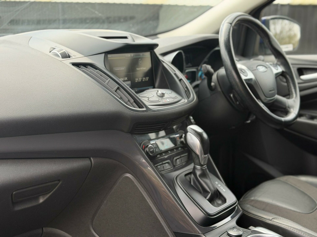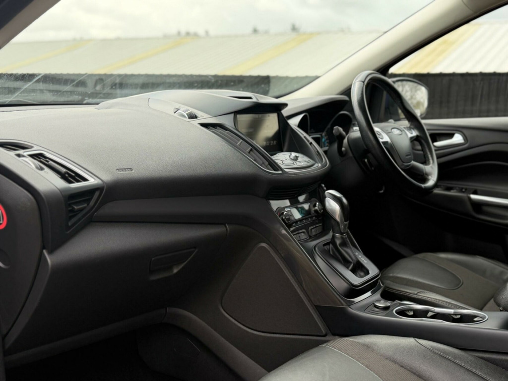 This 2016 Ford Kuga TDCi Titanium presents a compelling proposition with its remarkably low mileage of just 61,746 miles, a testament to its careful ownership by only two previous keepers. This Four Wheel Drive model is powered by an efficient 2.0L Diesel engine, meeting Euro 6 emissions standards. Inside, you'll find the Titanium trim offering a host of convenient features, including rear parking sensors with parking assistance, and the SYNC 3 system complete with an 8-inch colour touchscreen, Bluetooth, voice control, a USB port, and emergency assistance. Automatic halogen headlights with LED daytime running lights illuminate your path, while the DEATC dual-zone electronic automatic temperature control ensures comfort for all occupants. Access is made simple with keyless opening.The Ford Kuga TDCi Titanium stands out with its impressive fuel economy, achieving a notable 54 miles per gallon, which indicates its efficiency compared to many other vehicles in its class. Coupled with its low CO2 emissions, this Kuga offers a more economical and environmentally conscious driving experience. This combination of excellent fuel efficiency, low mileage, and desirable features makes this particular Ford Kuga a wise choice for those seeking a capable and well equipped SUV. in alloy wheels - 5x2 spoke, accessory power socket - 12v, accessory power socket - 12v in luggage compartment, armrest - folding centre - rear, automatic halogen headlights with led daytime running lights, centre console, courtesy light - footwell illumination, courtesy light - front and rear centre, cruise control with active speed limiter, deatc - dual-zone electronic automatic temperature control, door lever - chrome finish, eba - emergency brake assist, epas - electric power assisted steering, electric parking brake, electric windows - front and rear with global opening-closing and one touch, flat load floor board, floor mats - carpet - front and rear, ford easy fuel - capless refuelling system, front fog lights, front lower grille - black, front seat - drivers manual height - fore-aft and recline adjustment, front seat - drivers manual lumbar support adjustment, front seat - passenger manual height - fore-aft and recline adjustment, front seats - 4-way front head restraints - up-down, front seats - seat-back map pockets, front seats - sports style, front upper grille - painted black with chrome bar insert and chrome surround, hill start assist, ips - intelligent protection system, keyless opening, keyless start, leather steering wheel and gear knob, locking wheel nuts, mini spare wheel, multi-colour ambient led lighting, paddle shift, power folding door mirrors with puddle lights, quickclear heated front windscreen with heated washer jets, rain sensitive windshield wipers, rear floor mats, rear parking sensors, rear seat - 60-40 split folding seat back and cushion with multi-step recline function, remote central-double locking, sync 3 with 8in colour touchscreen with bluetooth - voice control - usb connectivity port and emergency assistance, satellite navigation - navigation center, scuff plates - front, seats - passenger lumbar support, steering column - rake and reach adjustment, tvc - torque vectoring control, tailgate wash-wipe, thatcham category 1 alarm, tie-down hooks, tonneau cover, twin exhausts and rear diffuser, tyre pressure monitoring system, variable dimming of instrument cluster and radio screen display, edcc - enhanced dynamic cornering control