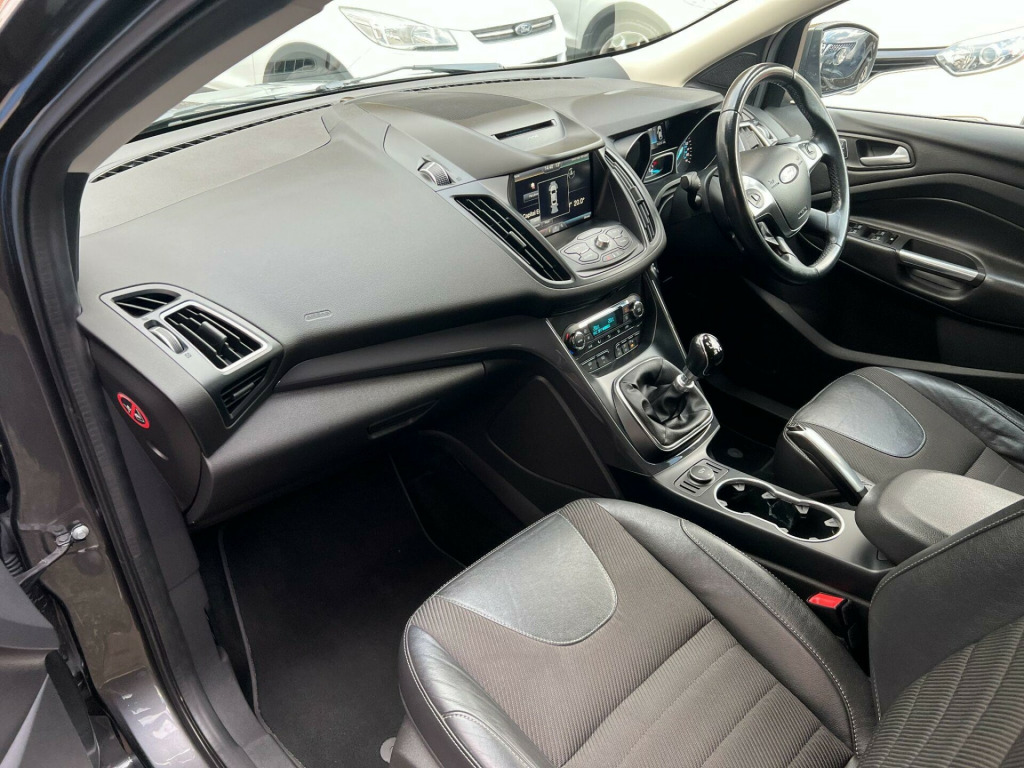 This 2016 Ford Kuga TDCi Titanium Sport boasts exceptionally low mileage for its age, having covered just 58,297 miles. This impressive figure, combined with a clear vehicle history check and a recent service on 2025-10-28 at 58,297 miles, offers excellent provenance. The Kuga is equipped with a capable 2.0L Diesel engine and Four Wheel Drive, making it ready for various conditions. Its Euro 6 emission class ensures it meets current environmental standards. Furthermore, it comes with a 6 month warranty and a 12 month MOT provided on purchase for your peace of mind.The Titanium Sport trim level is enhanced by an Appearance Pack and stylish 19in Y Spoke Alloy Wheels. Inside, you'll find the Premium Ford SYNC2 DAB Navigation System, which includes parking assistance with a rear camera and rear parking sensors, making manoeuvring easier. Power fold door mirrors add to the convenience. The Kuga's fuel economy is a notable highlight, achieving an impressive 54 mpg, which indicates it is more economical than many similar vehicles. Its low CO2 emissions also contribute to its appeal, suggesting a more environmentally conscious choice.www.station27.co.uk Are delighted to offer this 2016 Ford Kuga for sale with only 58297 Genuine miles, our car comes with;- 6 MONTH NATIONWIDE WARRANTY - 12 MONTH MOT- BOTH REMOTE KEYS- SERVICE HISTORY- SERVICED PRIOR TO SALEOur Ford Kuga comes with service history and will have a service by ourselves and a 12 month Mot prior to sale. Very nice example with the usual Titanium features including front & rear parking sensors, Sat Nav, DAB radio and Bluetooth phone and audio connection. emium ford sync2 dab navigation system, 19in alloy wheels - y spoke, appearance pack, power fold door mirrors, vector cloth-torino partial leather - ebony, 18in alloy wheels - 5x2 spoke, 8in high resolution touchscreen, abs - anti-lock braking system, aux connection, air conditioning - dual zone electronic automatic temperature control, airbags - drivers knee, airbags - front passenger, airbags - front and 2nd row curtain, airbags - side impact, alarm - thatcham category 1 with volume sensing and perimeter, armrest - folding centre - rear, audible text messaging, automatic dimming rear view mirror, automatic rain sensing wipers, bluetooth hands-free phone, body colour exterior mirrors, body colour side skirts, body coloured front skirts, cd player, centre console - bottle-can holder, centre console - stowage tray, courtesy light - footwell illumination, courtesy light - led overhead with theatre style dimming ambient lighting, cruise control with speed limiter, daytime running lamps, door handles - body colour, door mirrors - electrically operated and heated, door mirrors with integrated indicators, drivers airbag, drivers seat lumbar support, eba - emergency brake assist, ebd - electronic brakeforce distribution, epas - electric power assisted steering, esp - electronic stability programme, electric windows - front and rear with one touch, emergency assistance, emergency brake warning, floor mats - front and rear - velour, ford dab audio system, ford easy-fuel capless refuelling system, ford power engine start-stop button, ford sync2, front fog lights, front fully adjustable 4 way head restraints, front lower grille - black, front parking sensors, front seat - passenger manual height fore-aft adjustment, front seat - passengers manual lumbar support adjustment, front silver skid plate, front and rear body colour wheel arches, front upper grille - high-gloss black with chrome bar, full body styling kit, gear shift indicator, gearshift knob - leather, hla - hill launch assist, headlights - automatic, headlights - halogen, heated front windscreen, heated washer jets, high gloss black bumper detailing, high gloss black rear mesh, high gloss silver lower centre rear diffuser, ips - intelligent protection system, isofix, interior door lever - chrome finish, large rear spoiler, load compartment - tie down hooks, locking wheel nuts, mp3 compatibility, park assist - active, parking sensor - rear, pollen filter, rsc - roll stability control, rear side skirts and door cladding, remote central locking, scuff plates - front-stainless steel, seats - 60-40 rear split back, seats - drivers manual height and fore-aft adjustment, seats - front sports, spare wheel - mini steel, speakers - x6, steering column - rake and reach adjustment, steering wheel - 4 spoke leather trimmed, steering wheel - multifunction, steering wheel - silver accents and grey stitching, stowage pockets - front seatback, tsc - trailer stability programme, tvc - torque vectoring control, tonneau cover, traction control - tc, twin exhaust outlet, two 12v power socket, tyre pressure monitoring system, usb connection - ipod connectivity, variable dimming of instrument cluster and radio screen display, voice control - audio