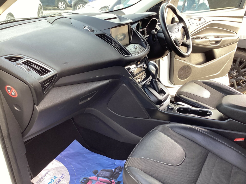 Finance Available, Part Exchange Welcome. This ULEZ compliant 2016 Ford Kuga 2.0 TDCi Titanium Sport, this 5-door SUV comfortably seats 5 people and is equipped with all-wheel drive for added confidence on the road. The 180 PS diesel engine provides robust power, and the smooth powershift transmission enhances the driving experience. This practical and stylish SUV is perfect for families or outdoor enthusiasts looking for a versatile and capable vehicle. uetooth connection, climate control, colour satnav, cruise control, front parking sensor, parking sensors, rear parking sensor, traction control, abs, child locks, isofix child seat anchor points, multiple airbags, alarm, immobiliser, locking wheel nuts, remote central locking, electric tailgate, electric windows, windscreen heating, alloy wheels