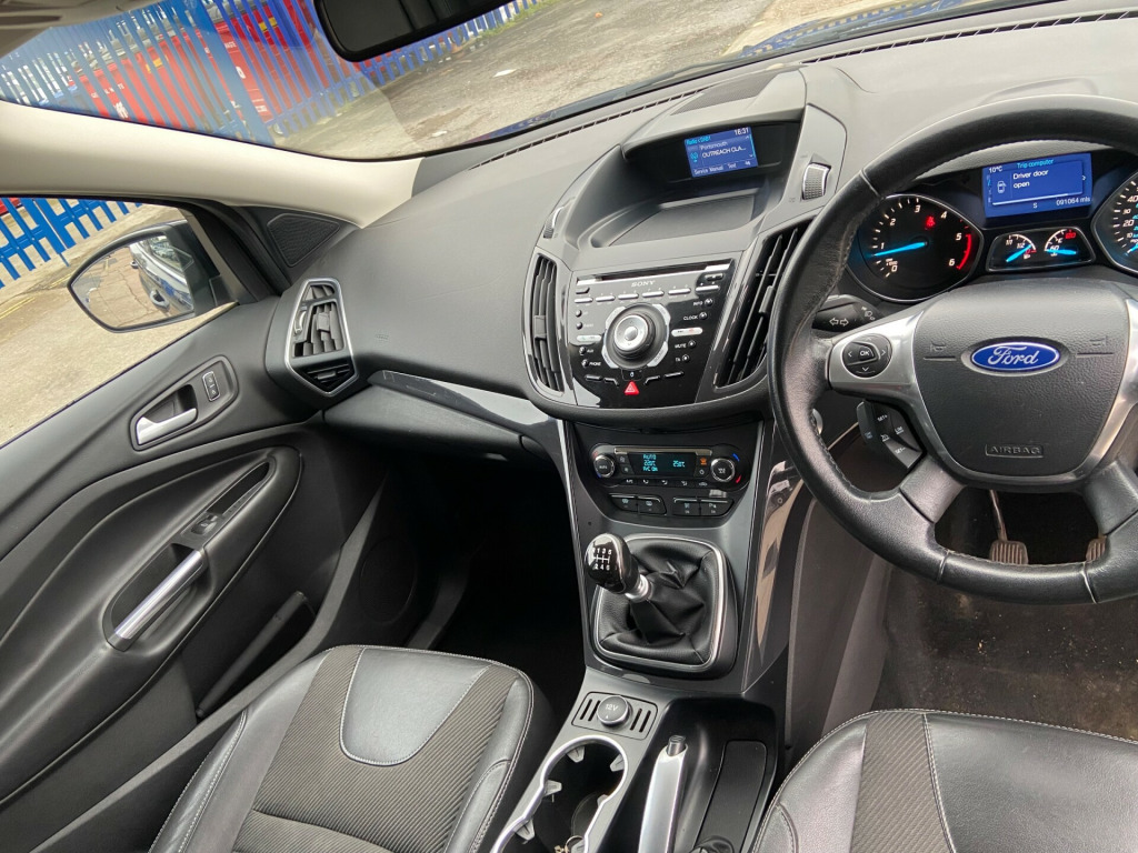 This 2014 Ford Kuga 2.0 TDCi Titanium SUV with 90992 miles on the clock is a sleek and practical choice for anyone in need of a reliable diesel vehicle. With MOT valid until 29/09/2026, this 5-door, 5-seater SUV offers both space and style. The 2.0 TDCi engine delivers 140ps and is paired with a manual 2WD transmission, providing a smooth and efficient drive. The exterior boasts 17in Alloy Wheels, Body Colour Exterior Mirrors and Door Handles, as well as Electrically Operated and Heated Door Mirrors for added convenience. Whether you're commuting in the city or embarking on a family adventure, this Ford Kuga offers a comfortable and powerful ride that's sure to impress.Please ask about our incredible offers on our warranties. in alloy wheels - 9x2 spoke, body colour exterior mirrors, door handles - body colour, door lever - aluminium, door mirrors - electrically operated and heated, door mirrors - puddle lights, door mirrors with integrated indicators, electric windows - front and rear with one touch, front upper grille - high-gloss black with chrome bar, heated front windscreen, heated washer jets, locking wheel nuts, rear spoiler - body colour, spare wheel - mini steel, tinted glass - green, twin exhaust outlet, 4.2in tft display, aux connection, audible text messaging, bluetooth handsfree and voice control, emergency assistance, ford sync, portable audio device connector, sony cd-radio player-mp3 compatibility, sony dab digital radio, speakers - x8, two 12v power socket, usb connection, usb connection - ipod connectivity, abs - anti-lock braking system, airbags - drivers knee, airbags - front passenger, airbags - front and 2nd row curtain, airbags - side impact, alarm - thatcham category 1 with volume sensing and perimeter, bounce-back sensors, drivers airbag, eba - emergency brake assist, ebd - electronic brakeforce distribution, esp - electronic stability programme, emergency brake warning, ford easy-fuel capless refuelling system, hla - hill launch assist, ips - intelligent protection system, isofix, rsc - roll stability control, remote central locking, tsc - trailer stability programme, tvc - torque vectoring control, traction control - tc, air conditioning - dual zone electronic automatic temperature control, automatic dimming rear view mirror, automatic rain sensing wipers, courtesy light - footwell illumination, courtesy light - front and rear reading lights, drivers seat lumbar support, floor mats - carpet - front, ford power engine start-stop button, front fully adjustable 4 way head restraints, front seat - passengers manual fore-aft adjustment, front seat - passengers manual lumbar support adjustment, gearshift knob - leather, large stowage bin, load compartment - tie down hooks, rear seat - folding centre armrest with 2 integrated cup holders and flip up storage, scuff plates - front-stainless steel, seats - 60-40 rear split back, seats - drivers manual height and fore-aft adjustment, seats - front sports, steering column - rake and reach adjustment, steering wheel - 4 spoke leather trimmed, steering wheel - multifunction, storage - upper instrument panel, stowage pockets - front seatback, variable dimming of instrument cluster and radio screen display, cruise control with speed limiter, epas - electric power assisted steering, tyre pressure monitoring system, variable sensitivity adjustment, voice control - audio, daytime running lamps, front fog lights, headlights - automatic, headlights - courtesy delay