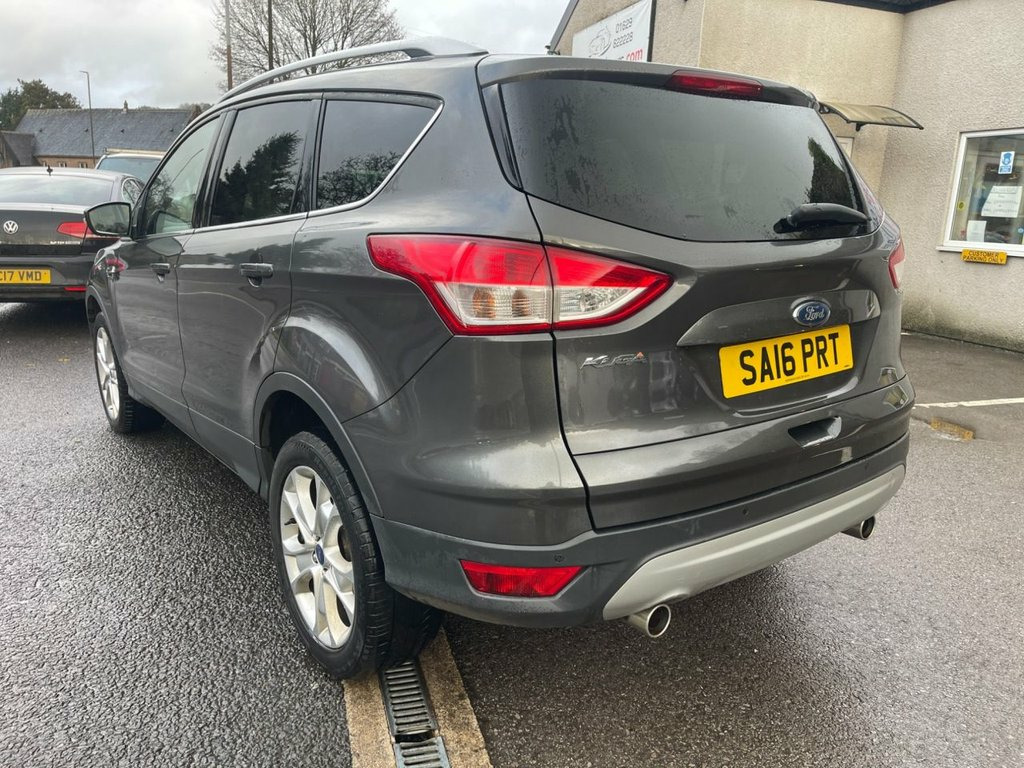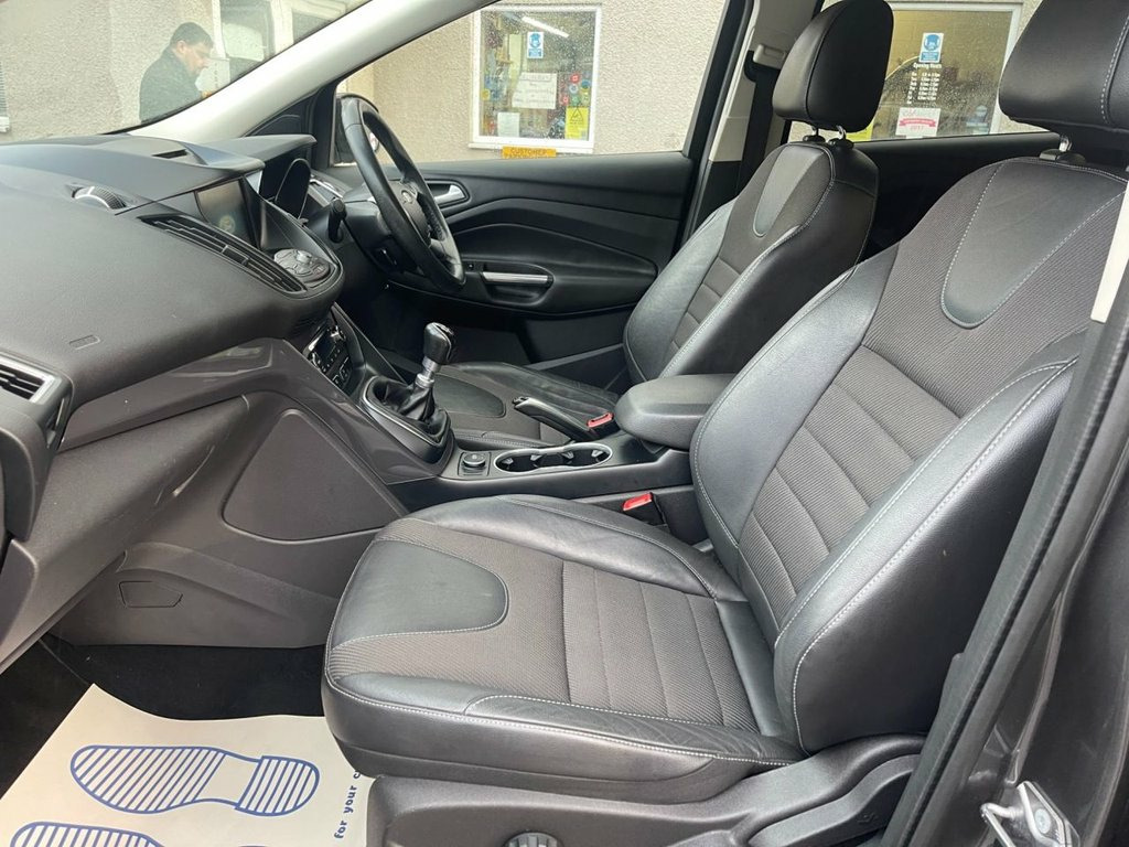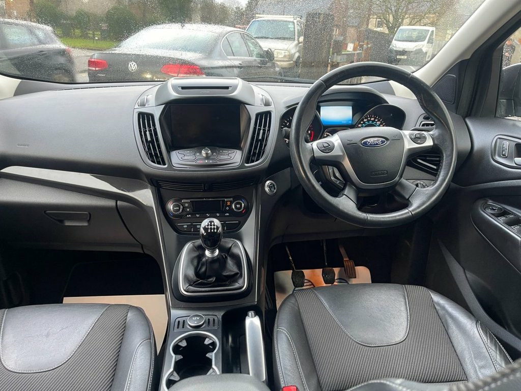 **HERE WE HAVE A VERY NICE, VERY WELL MAINTAINED 2wD 2ltr DIESEL 5 DOOR FORD KUGA TITANIUM SUV (euro 6)**FULL SERVICE HISTORY WITH 9 SERVICE STAMPS INCLUDING A NEW TIMING BELT KIT INCL. WATERPUMP @ 94596 miles & WILL BE SERVICED WHEN SOLD**SAME OWNER LAST 7+yrs & ONLY 1 FORMER KEEPER**EEXCELLENT MOT HISTORY**HALF LEATHER INTERIOR**LEATHER MULTI-FUNCTION STEERING WHEEL**HEATED FRONT & REAR SCREENS**SAT NAV**REAR PARKING SENSORS WITH LED DISPLAY**CLIMATE CONTROL**A/C**CRUISE CONTROL/SPEED LIMITER**C/D DAB RADIO**BLUETOOTH**USB & AUX PORTS **SWITCHABLE STOP/START**AUTO DIMMING REAR VIEW MIRROR**AUTO WIPERS**AUTO LIGHTS**4 x ELECTRIC WINDOWS**ELECTRIC DOOR MIRRORS**ROOF RAILS**PRIVACY GLASS IN REAR** ISOFIX**18" ALLOYS**SPACE SAVER SPARE WHEEL**FRONT FOGS**REMOTE CENTRAL LOCKING**OWNERS MANUAL**2 x KEYS**WHO EVER TEST DRIVES THIS WILL NOT BE DISSAPOINTED** 17in Alloy Wheels - 5x2 Spoke, 18in Alloy Wheels - 5x2 Spoke, 8in High Resolution Touchscreen, ABS - Anti-lock Braking System, Air Conditioning - Dual Zone Electronic , Airbags - Drivers Knee, Airbags - Front and 2nd Row Curtain, Airbags - Front Passenger, Airbags - Side Impact, Alarm - Thatcham Category 1 with Volume , Armrest - Folding Centre - Rear, Audible Text Messaging, Automatic Dimming Rear View Mirror, Automatic Rain Sensing Wipers, AUX Connection, Bluetooth Hands-free Phone, Body Colour Exterior Mirrors, CD Player, Centre Console - Bottle-Can Holder, Centre Console - Stowage Tray, Courtesy Light - Footwell Illumination, Courtesy Light - LED Overhead with Theat, Cruise Control with