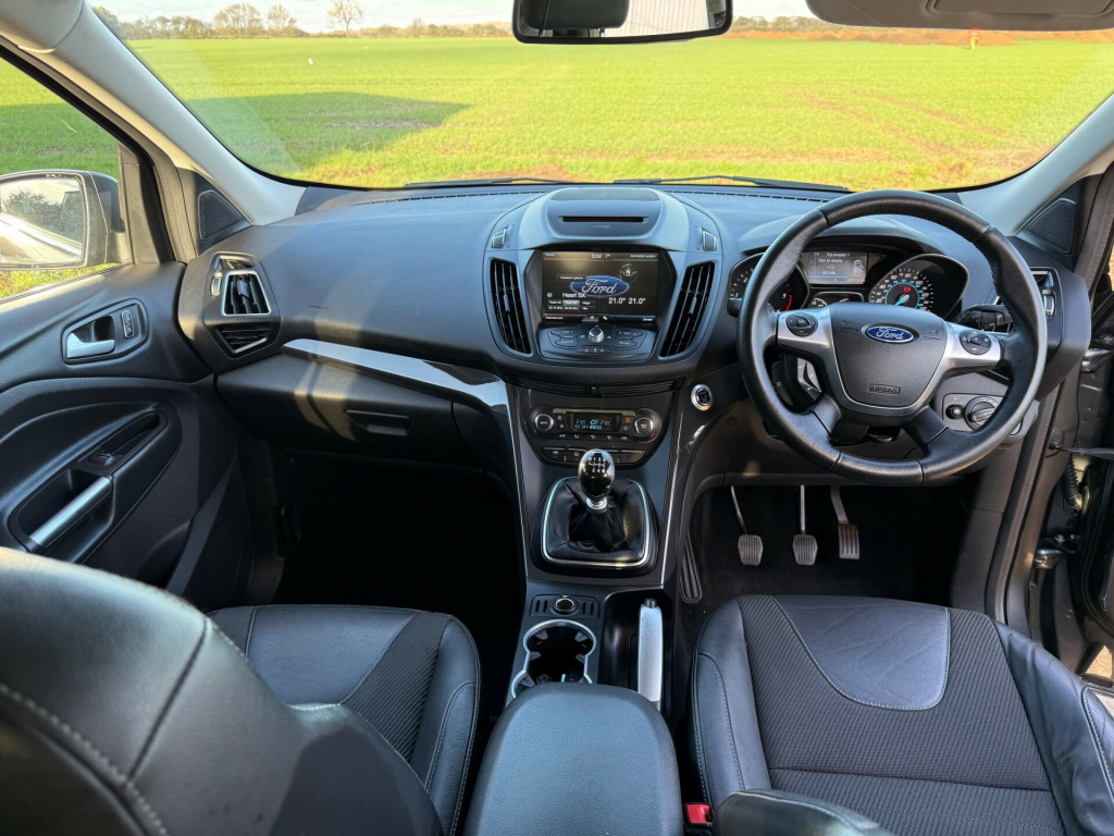 Here at Whitehart Service Station, we are pleased to offer this 2015 ''65'' Ford Kuga Titanium 2.0 TDCi 5door, finished in Metallic Grey with only 59219 miles and Service History too. Specification includes Alloy wheels, Bluetooth, Steering wheel controls, Climate control with air conditioning, Electric windows all round, Electric door mirrors and much more. If you have any questions please call the showroom on 01702 202202 or Stuart directly /on 07814 001598. in alloy wheels - 5x2 spoke, body colour exterior mirrors, door handles - body colour, door mirrors - electrically operated and heated, door mirrors with integrated indicators, electric windows - front and rear with one touch, front lower grille - black, front upper grille - high-gloss black with chrome bar, heated front windscreen, heated washer jets, high gloss black bumper detailing, locking wheel nuts, spare wheel - mini steel, twin exhaust outlet, 8in high resolution touchscreen, aux connection, audible text messaging, bluetooth hands-free phone, cd player, emergency assistance, ford dab audio system, ford sync2, mp3 compatibility, speakers - x6, two 12v power socket, usb connection - ipod connectivity, abs - anti-lock braking system, airbags - drivers knee, airbags - front passenger, airbags - front and 2nd row curtain, airbags - side impact, alarm - thatcham category 1 with volume sensing and perimeter, drivers airbag, eba - emergency brake assist, ebd - electronic brakeforce distribution, esp - electronic stability programme, emergency brake warning, ford easy-fuel capless refuelling system, hla - hill launch assist, ips - intelligent protection system, isofix, rsc - roll stability control, remote central locking, tsc - trailer stability programme, tvc - torque vectoring control, traction control - tc, air conditioning - dual zone electronic automatic temperature control, armrest - folding centre - rear, automatic dimming rear view mirror, automatic rain sensing wipers, centre console - bottle-can holder, centre console - stowage tray, courtesy light - footwell illumination, courtesy light - led overhead with theatre style dimming ambient lighting, drivers seat lumbar support, floor mats - front and rear - velour, ford power engine start-stop button, front fully adjustable 4 way head restraints, front seat - passenger manual height fore-aft adjustment, front seat - passengers manual lumbar support adjustment, gearshift knob - leather, interior door lever - chrome finish, load compartment - tie down hooks, pollen filter, scuff plates - front-stainless steel, seats - 60-40 rear split back, seats - drivers manual height and fore-aft adjustment, seats - front sports, steering column - rake and reach adjustment, steering wheel - 4 spoke leather trimmed, steering wheel - multifunction, steering wheel - silver accents and grey stitching, stowage pockets - front seatback, tonneau cover, variable dimming of instrument cluster and radio screen display, cruise control with speed limiter, epas - electric power assisted steering, gear shift indicator, tyre pressure monitoring system, voice control - audio, daytime running lamps, front fog lights, headlights - automatic, headlights - halogen