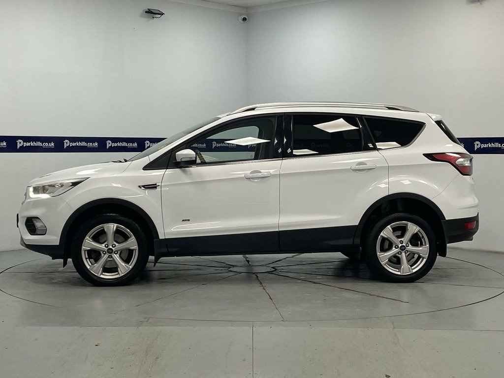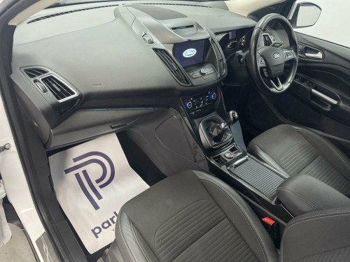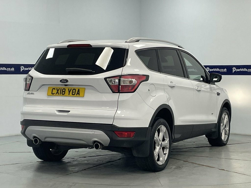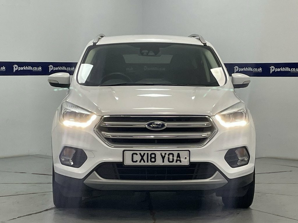 ALL WHEEL DRIVE, FORD INFOTAINMENT FEATURING SAT NAV, BLUETOOTH PHONE AND MEDIA, DAB, HALF LEATHER, AIR CON WITH CLIMATE CONTROL, PARKING SENSORS, MULTI FUNCTION STEERING WHEEL, 18" ALLOY WHEELS, FLEXIBLE MONTHLY PAYMENTS AVAILABLE ON THIS CAR. This Four Wheel Drive model finished in Frozen white and black half leather interior is equipped with a 2.0L Diesel Engine and meets Euro 6 emission standards. It features stylish 18in Alloy Wheels in a 5 Spoke design, and benefits from Automatic Halogen Headlights with LED Daytime Running Lights for enhanced visibility. Inside, you'll find the Ford DAB Navigation System with Ford SYNC3, which includes Bluetooth connectivity for seamless communication and entertainment. Parking is made easier with Rear Parking Sensors, and the convenience of Keyless Opening allows for effortless entry. The Ford Kuga TDCi Titanium stands out with its impressive fuel economy, achieving up to 54 mpg, which indicates it is more economical than many similar vehicles. Furthermore, its low CO2 emissions highlight its environmental consideration. This combination of efficiency, advanced features, and robust Four Wheel Drive capability makes this 2018 Ford Kuga a practical and appealing choice, bluetooth media streaming, rear parking aid, air con, auto headlights, heated front screen, isofix rear seats, electric windows and mirrors, remote central locking alarm/immobilizer, multi-function steering, Supplied with HPI report and vehicle book pack. THIS 12V Power Socket - Load Compartment, 17in Alloy Wheels - 5x2 Spoke, 18in Alloy Wheels - 5 Spoke, 6-Way Manual Passenger Seat with Lumbar , Airbags - Driver and Front Passenger, Airbags - Drivers Knee, Airbags - Front and Rear Side Curtain, Airbags - Front Side Impact, Anti-Lock Braking System - ABS with Elec, Armrest - Folding Centre - Rear, Audible Text Messaging - Voice Control a, Automatic Dimming Rear View Mirror, Automatic Halogen Headlights with LED Da, Centre Console, Child Locks - Manual on Rear Doors, Courtesy Lights - Front and Rear, Cruise Control with Active Speed Limiter, DEATC - Dual-Zone Electronic Automatic T, Door Lever - Chrome Finish, EBA - Emergency Brake Assist, Electric