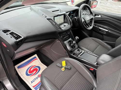 Just arrived, Comes with New 12 Months MOT, Serviced and fully valeted, be the first to view this car. Feel free to give us a call for any further details or to book an appointment for a test drive, All vehicles considered for part exchange at competitive rates. CARD PAYMENTS ACCEPTED, FINANCE CAN BE ARRANGED, Standard warranty on all vehicles, Extended warranties available, Drive away the same dayThis 2017 Ford Kuga 2.0 TDCi Titanium SUV with 99000 miles on the odometer is a reliable diesel vehicle that boasts a spacious 5-seat interior and 5 doors for easy access. With an MOT that expires on 05/06/2026, this SUV is ULEZ compliant and ready for urban driving. The car includes features like 17in Alloy Wheels, Electric Windows, Self Colour Front Lower Grille, and Locking Wheel Nuts for added security. The 2.0 TDCi engine with 180 ps provides ample power and efficiency, making this SUV a practical choice for any journey. Plus, the all-wheel drive capability ensures excellent handling in all road conditions, making it a great choice for drivers who value versatility and comfort., in alloy wheels - 5x2 spoke, electric windows - front and rear with global opening-closing and one touch, front lower grille - self colour, front upper grille - painted black with chrome bar insert and chrome surround, locking wheel nuts, mini spare wheel, power folding door mirrors with puddle lights, quickclear heated front windscreen with heated washer jets, scuff plates - front, twin exhausts and rear diffuser, accessory power socket - 12v, accessory power socket - 12v in luggage compartment, audible text messaging - voice control and usb connectivity, ford dab navigation system with ford sync3, sync3 with 8in touchscreen dab audio system, airbags - driver and front passenger, airbags - drivers knee, airbags - drivers and front passenger front side - front and rear curtain, airbags - front side impact, child locks - manually adjustable rear door locks, esp - electronic stability programme, electric parking brake, ford easy-fuel capless refuelling system, hill start assist, ips - intelligent protection system, keyless opening, locks - remote central with double locking, seats - isofix mounting provision for child seats - outer seats only, tailgate wash-wipe, thatcham category 1 alarm, armrest - folding centre - rear, automatic dimming rear view mirror, centre console, courtesy light - footwell illumination, courtesy light - front and rear, deatc - dual-zone electronic automatic temperature control, door lever - chrome finish, flat load floor board, front floor mats, front seat - drivers manual height - fore-aft and recline adjustment, front seat - passenger manual - fore-aft and recline adjustment, front seats - 4-way front head restraints - up-down, front seats - seat-back map pockets, keyless start, leather steering wheel and gear knob, multi-colour ambient interior lighting, rain sensitive windshield wipers, rear floor mats, rear seat - 60-40 split folding seat back and cushion with multi-step recline function, seats - drivers lumbar support, seats - front sports, seats - passenger lumbar support, steering column - rake and reach adjustment, tie-down hooks, tonneau cover, automatic halogen headlights with led daytime running lights, automatic headlights - rain sensing wipers - auto dimming rear view mirror, fog lights - front, cruise control with active speed limiter, epas - electric power assisted steering, gear shift indicator, rear parking sensors, tyre pressure monitoring system