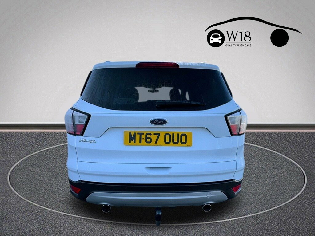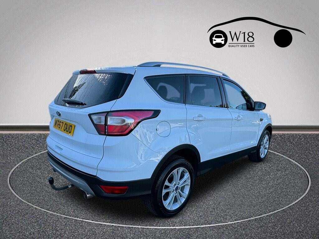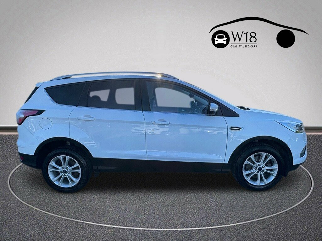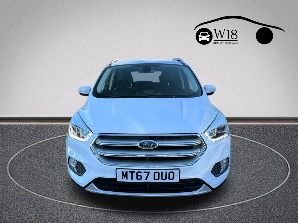 This 2017 Ford Kuga TDCi Titanium offers exceptional value with its remarkably low mileage of just 57,827 miles for its age. This Euro 6 compliant 2.0L diesel model comes with a clear vehicle history check and a 6-month warranty for your peace of mind. Inside, you'll find the advanced SYNC 3 system featuring an 8in colour touchscreen with Bluetooth, voice control, and USB connectivity, alongside rear parking sensors to aid manoeuvring. The Titanium trim also boasts automatic halogen headlights with LED daytime running lights, keyless entry for effortless access, and dual zone electronic automatic temperature control for personalised comfort.  This Kuga stands out with its impressive fuel economy, achieving an outstanding 60 miles per gallon, which is significantly better than many similar vehicles. Furthermore, its low CO2 emissions and low insurance group contribute to lower running costs, making it an economical choice. A 12-month MOT will be provided on purchase, and while the service history is partial (@23,053, @30,408, @53,561), the vehicle's overall condition and low mileage suggest careful ownership. 12V Power Socket - Load Compartment, 17in Alloy Wheels - 5x2 Spoke, 6-Way Manual Passenger Seat with Lumbar , Airbags - Driver and Front Passenger, Airbags - Drivers Knee, Airbags - Front Side Impact, Airbags - Front and Rear Side Curtain, Anti-Lock Braking System - ABS with Elec, Armrest - Folding Centre - Rear, Audible Text Messaging - Voice Control a, Automatic Dimming Rear View Mirror, Automatic Halogen Headlights with LED Da, Centre Console, Child Locks - Manual on Rear Doors, Courtesy Lights - Front and Rear, Cruise Control with Active Speed Limiter, DEATC - Dual-Zone Electronic Automatic T, Door Lever - Chrome Finish, EBA - Emergency Brake Assist, EPAS - Electric Power Assisted Steeri