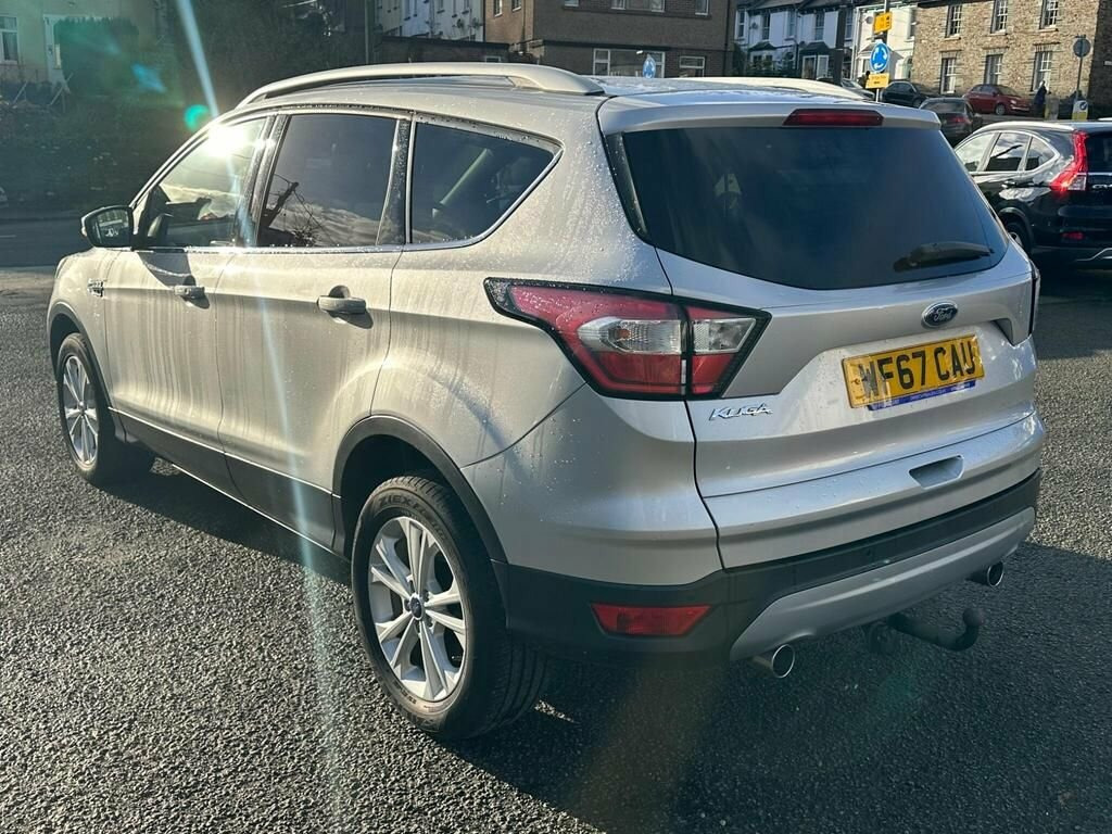 This 2017 Ford Kuga TDCi Titanium presents an exceptional opportunity with its remarkably low mileage of just 48,800 miles for its age. Powered by an efficient 2.0L Diesel engine, this Euro 6 compliant model offers a compelling blend of performance and economy. Inside, you'll find the Titanium trim level, featuring DEATC Dual-Zone Electronic Automatic Temperature Control for personalised comfort, and Keyless Entry for effortless access. The SYNC 3 system, complete with an 8in colour touchscreen, Bluetooth, voice control, and USB connectivity, ensures you stay connected and entertained on every journey. Practicality is enhanced with rear parking sensors and automatic halogen headlights that include LED daytime running lights for improved visibility. This Ford Kuga stands out with its impressive fuel economy, achieving up to 60 mpg, which indicates it is more economical than many similar vehicles. Furthermore, its low CO2 emissions and low insurance group highlight its cost effectiveness for everyday use, making it a sensible choice for a wide range of drivers. 12V Power Socket - Load Compartment, 17in Alloy Wheels - 5x2 Spoke, 6-Way Manual Passenger Seat with Lumbar , Airbags - Driver and Front Passenger, Airbags - Drivers Knee, Airbags - Front Side Impact, Airbags - Front and Rear Side Curtain, Anti-Lock Braking System - ABS with Elec, Armrest - Folding Centre - Rear, Audible Text Messaging - Voice Control a, Automatic Dimming Rear View Mirror, Automatic Halogen Headlights with LED Da, Centre Console, Child Locks - Manual on Rear Doors, Courtesy Lights - Front and Rear, Cruise Control with Active Speed Limiter, DEATC - Dual-Zone Electronic Automatic T, Door Lever - Chrome Finish, EBA - Emergency Brake Assist, EPAS - Electric Power Assisted Steeri