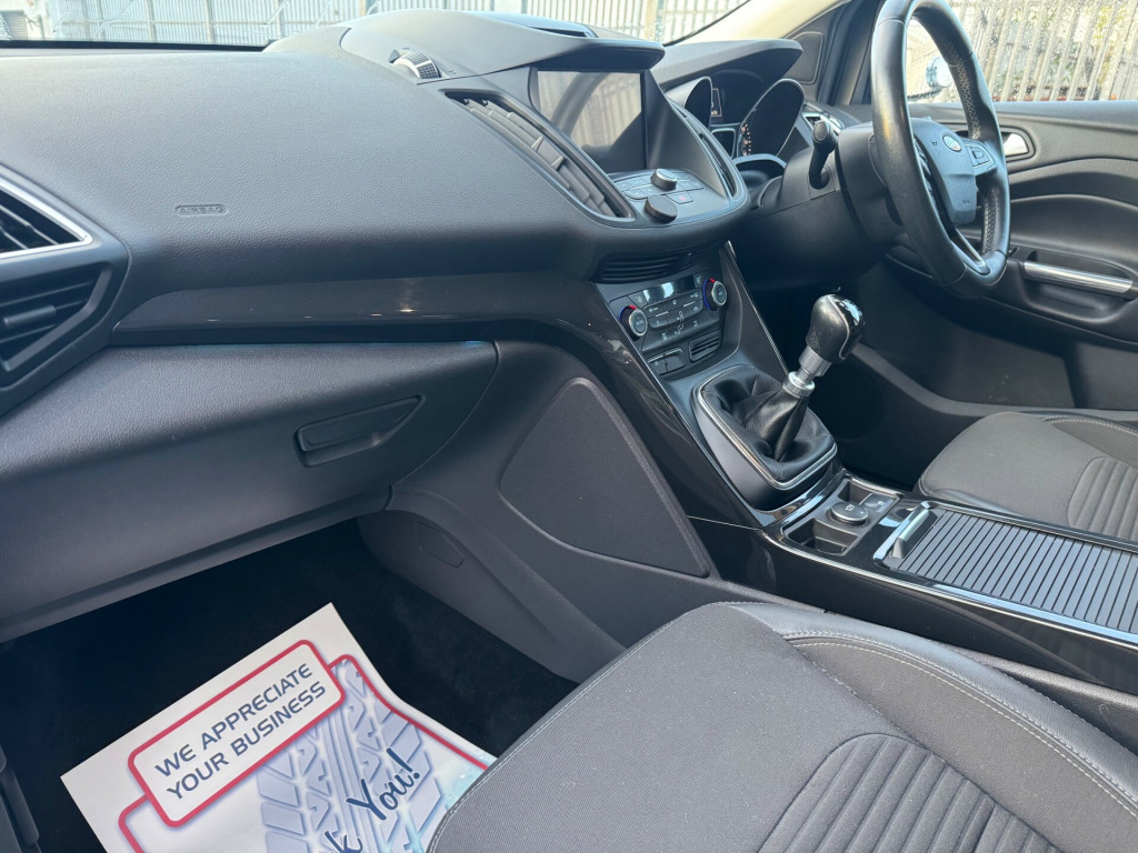 This 2017 Ford Kuga 2.0 TDCi Titanium SUV with a mileage of 75819 miles is a reliable Diesel vehicle that boasts 5 seats and 5 doors, making it perfect for family adventures or daily commutes. nd ULEZ compliance, this SUV is ready for the road. The Euro 6 (s/s) engine delivers 150 ps, ensuring a powerful driving experience. Its sleek 17in Alloy Wheels and Electric Windows - Front and Rear with Global Opening-Closing and One Touch add to its appeal, while features like the Front Lower Grille, Front Upper Grille, and Locking Wheel Nuts provide both style and security. Don't miss out on this impressive SUV that offers both comfort and practicality. in alloy wheels - 5x2 spoke, electric windows - front and rear with global opening-closing and one touch, front lower grille - self colour, front upper grille - painted black with chrome bar insert and chrome surround, locking wheel nuts, mini spare wheel, power folding door mirrors with puddle lights, quickclear heated front windscreen with heated washer jets, scuff plates - front, twin exhausts and rear diffuser, accessory power socket - 12v, accessory power socket - 12v in luggage compartment, audible text messaging - voice control and usb connectivity, ford dab navigation system with ford sync3, sync3 with 8in touchscreen dab audio system, airbags - driver and front passenger, airbags - drivers knee, airbags - drivers and front passenger front side - front and rear curtain, airbags - front side impact, child locks - manually adjustable rear door locks, esp - electronic stability programme, electric parking brake, ford easy-fuel capless refuelling system, hill start assist, ips - intelligent protection system, keyless opening, locks - remote central with double locking, seats - isofix mounting provision for child seats - outer seats only, tailgate wash-wipe, thatcham category 1 alarm, armrest - folding centre - rear, automatic dimming rear view mirror, centre console, courtesy light - footwell illumination, courtesy light - front and rear, deatc - dual-zone electronic automatic temperature control, door lever - chrome finish, flat load floor board, front floor mats, front seat - drivers manual height - fore-aft and recline adjustment, front seat - passenger manual - fore-aft and recline adjustment, front seats - 4-way front head restraints - up-down, front seats - seat-back map pockets, keyless start, leather steering wheel and gear knob, multi-colour ambient interior lighting, rain sensitive windshield wipers, rear floor mats, rear seat - 60-40 split folding seat back and cushion with multi-step recline function, seats - drivers lumbar support, seats - front sports, seats - passenger lumbar support, steering column - rake and reach adjustment, tie-down hooks, tonneau cover, automatic halogen headlights with led daytime running lights, automatic headlights - rain sensing wipers - auto dimming rear view mirror, fog lights - front, cruise control with active speed limiter, epas - electric power assisted steering, gear shift indicator, rear parking sensors, tyre pressure monitoring system