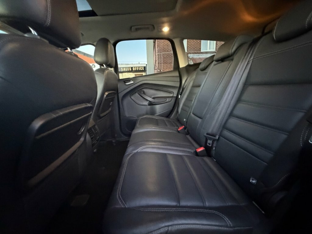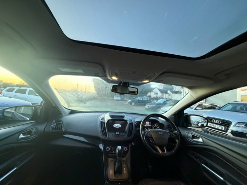 A STUNNING HPI CLEAR EXAMPLE OF A FORD KUGA WITH SERVICE HISTORY AND 2 KEYS FINISHED IN BLACK, WITH REAR PARKING SENSORS AND A SATNAV, PANORAMIC SUNROOF, HEATED LEATHER AND MUCH MORE THE VEHICLE WILL BE SUPPLIED WITH A FRESH MOT AND A SERVICE ALONG WITH A 3 MONTHS RETURN TO DEALER WARRANTY WITH THE OPPORTUNITY TO EXTEND WITH RAC FOR UP TO 36 MONTHS, **FINANCE AVAILABLE FOR UP TO 60 MONTHS WITH 0 DEPOSIT OPTIONS** 17in Alloy Wheels - 5x2 Spoke, Accessory Power Socket - 12V, Accessory Power Socket - 12v in Luggage , Airbags - Driver and Front Passenger, Airbags - Drivers Knee, Airbags - Drivers and Front Passenger Fr, Airbags - Front Side Impact, Armrest - Folding Centre - Rear, Audible Text Messaging - Voice Control a, Automatic Dimming Rear View Mirror, Automatic Halogen Headlights with LED Da, Automatic Headlights - Rain Sensing Wipe, Centre Console, Child Locks - Manually Adjustable Rear D, Courtesy Light - Footwell Illumination, Courtesy Light - Front and Rear, Cruise Control with Active Speed Limiter, DEATC - Dual-Zone Electronic Automatic T, Door Lever - Chrome Finish, EPAS - Electric Power Assi