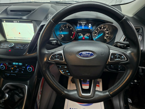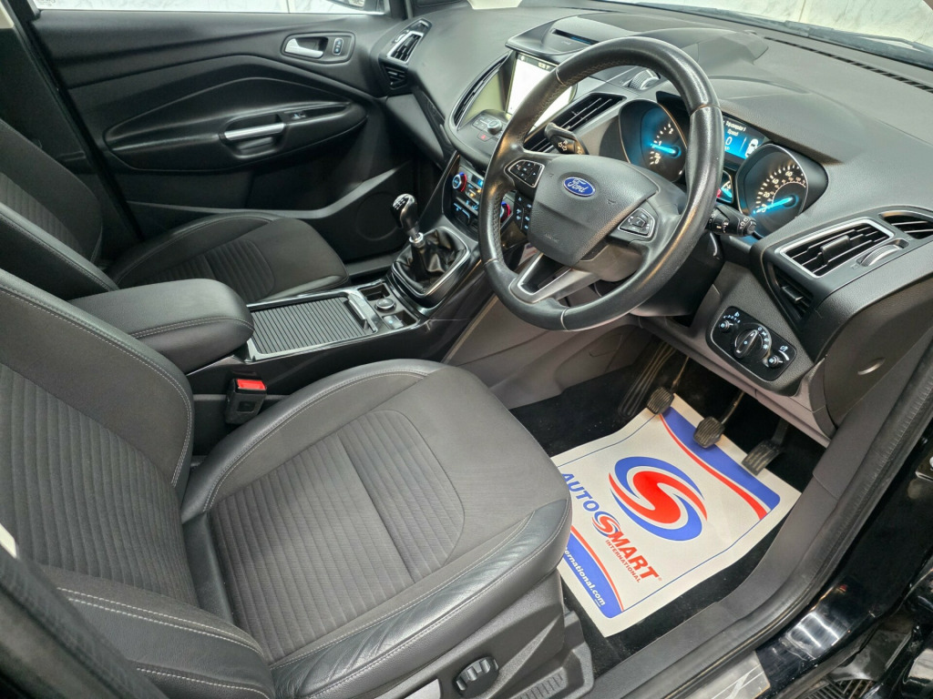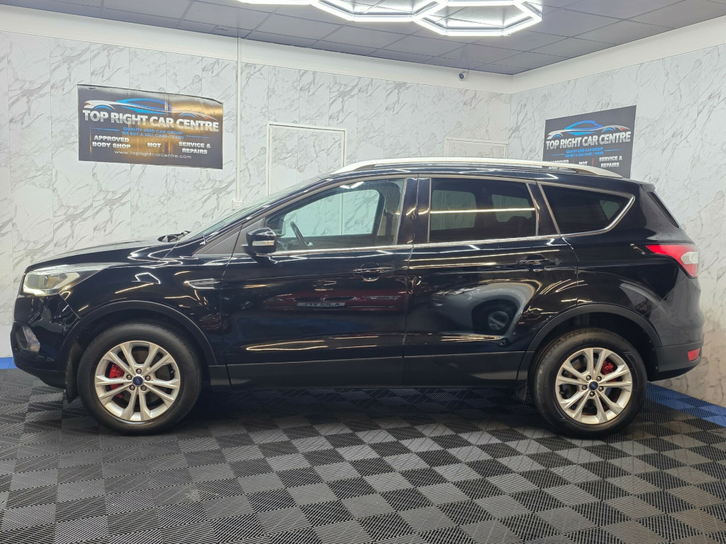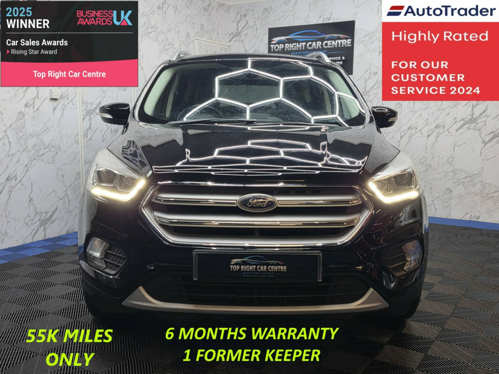 *** NIL DEPOSIT FINANCE AVAILABLE *** 6 MONTHS WARRANTY AND BREAKDOWN COVER WITH THIS CAR.1 former keeper only. Low mileage 55k miles only.FULL SERVICE HISTORY. MOT 20 DEC 2026 NO ADVISORIES. Fresh service just been done, also replaced all brake disc and pads.This stunning Ford Kuga has been sourced directly from its Previous Private Owner. Every now and again, a car comes into stock at Top Right Car Centre, that you cannot help but fall in love with.Top Spec Titanium has massive centre touch screen SATNAV, part leather interior, all electric windows, privacy glass, parking sensors, digital dual climate control, daytime running LED lights, cruise control. Clean Car in Black colour. Great comfortable family car. Well maintained body work and interior. Bullet fast response. Checked by our engineers. Professionally detailed. Good reliable runner. Price checked. We've just completed a full pre delivery inspection on the car to give you complete piece of mind. 2 central locking keys. Smooth gear box. Clean alloy wheels. Excellent condition tyres. Spare wheel. Multimedia has Bluetooth DABRADIO CD mp3 2xUSB. Run with no fault strong reliable engine. Good fuel economy. First to see will buy it this well looked after car. cat N. p/x welcome. We do price our cars/van as competitively as possible and because of this we sell cars/vans very quickly. BE QUICK! MISS IT - MISS OUT. With so much variety, quality and highly rated award winner 2024 and 2025, it is no wonder we are super busy all the time. Why Buy From Top Right Car Centre?Thoroughly Inspected Cars. All our vehicles are quality-checked and HPi verified, giving you peace of mind with every purchase.Multi Award-Winning Family Business. As a trusted family-run business, we have earned awards for our customer service and expertise.Hand-Picked, Quality Cars. We carefully select only the finest cars with full service histories, so you can drive away with confidence.Test Driven for Assurance. Each car is personally test-driven by our team, ensuring it meets our high standards.Delivery Service available. v power socket - load compartment, audible text messaging - voice control and usb connectivity, ford dab navigation system with ford sync3, ford sync with emergency assistance, sync3 with 8in touchscreen dab audio system, 17in alloy wheels - 5x2 spoke, electric windows - front and rear with global opening-closing and one touch, locking wheel nuts, mini spare wheel, power folding door mirrors with puddle lights, quickclear heated front windscreen with heated washer jets, scuff plates - front, twin exhausts and rear diffuser, 6-way manual passenger seat with lumbar adjustment, armrest - folding centre - rear, automatic dimming rear view mirror, centre console, courtesy lights - front and rear, deatc - dual-zone electronic automatic temperature control, door lever - chrome finish, front floor mats, front seat - drivers manual height - fore-aft and recline adjustment, front seat - passenger manual - fore-aft and recline adjustment, front seats - seat-back map pockets, headliner - woven, keyless start, leather steering wheel and gear knob, loadspace floor carpet, multi-colour ambient interior lighting, mykey, rain sensitive windshield wipers, rear floor mats, rear seat - 60-40 split folding seat back and cushion with multi-step recline function, rear seats - 2-way head restraint up-down, seats - drivers with manual lumbar support adjustment, seats - passenger height adjustment, seats - passenger lumbar support, steering column - rake and reach adjustment, tie-down hooks, tonneau cover, airbags - driver and front passenger, airbags - drivers knee, airbags - front side impact, airbags - front and rear side curtain, anti-lock braking system - abs with electronic stability control - esc, child locks - manual on rear doors, eba - emergency brake assist, esp - electronic stability programme, electric parking brake, engine immobiliser, hill start assist, ips - intelligent protection system, keyless opening, seat belts - 3-point diagonal inertia reel - all seats, seat belts - rear belt minder alert, seatbelts - manual height adjustment, seats - isofix mounting provision for child seats - outer seats only, thatcham category 1 alarm, automatic halogen headlights with led daytime running lights, fog lights - front, cruise control with active speed limiter, epas - electric power assisted steering, front suspension - independent with macpherson struts and anti-roll bar, rear parking sensors, rear suspension - independent control blade multi-link system and anti-roll bar, tyre pressure monitoring system