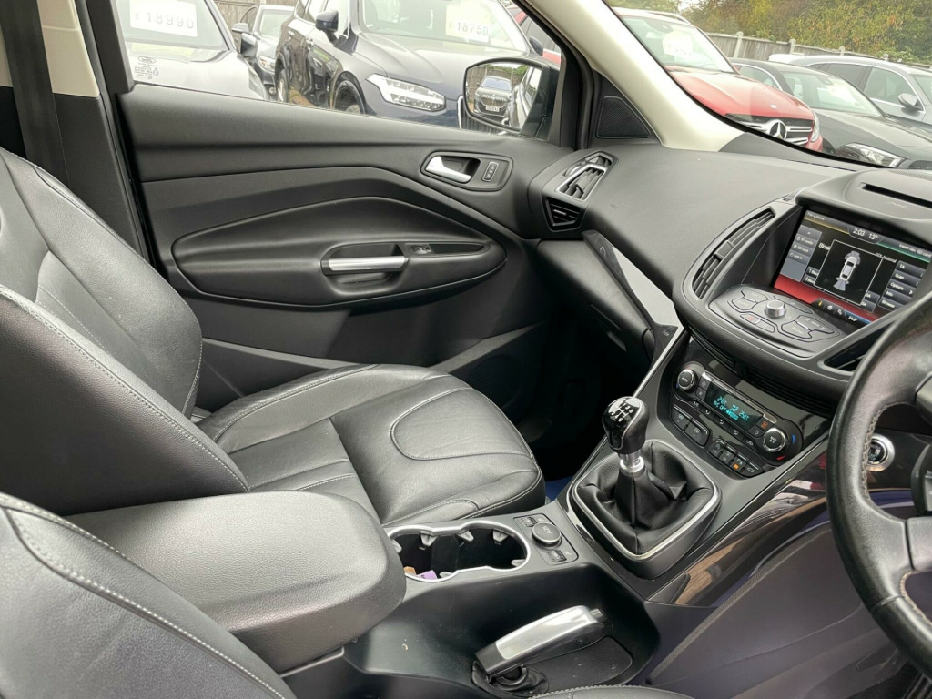 FREE 12 MONTHS AA BREAKDOWN COVER, ZERO DEPOSIT FINANCE AVAIL, 6 MONTHS NATIONWIDE WARRANTY, 2 Keys avail,  Service history, Hpi clear, Just been serviced, all previous Mot's avail. We are located in CANVEY ISLAND, ESSEX SS8 0QDThis 2016 Ford Kuga TDCi Titanium X offers an exceptional 60 mpg fuel economy, making it a remarkably efficient choice for your motoring needs.  This Euro 6 compliant model boasts a powerful 2.0L Diesel engine and comes in the well appointed Titanium X trim.  You will appreciate the convenience of Bluetooth hands free phone connectivity and the sophisticated Bi Xenon headlights which also feature automatic activation.  The cabin is kept at your ideal temperature with dual zone electronic automatic climate control, and the fixed panorama roof with its panoramic sunroof floods the interior with natural light.The low CO2 emissions of this Ford Kuga are a significant advantage, indicating its environmental consideration compared to many other vehicles. This efficiency, combined with its impressive fuel economy of 60 mpg, means you can enjoy longer journeys with fewer fuel stops and a reduced impact on your wallet. The inclusion of features like the automatic headlights and the advanced climate control further enhance the driving experience, offering both comfort and practicality for everyday use.. 18in Alloy Wheels - 5x2 Spoke, 4.2in TFT Display, ABS - Anti-lock Braking System, AUX Connection, Air Conditioning - Dual Zone Electronic Automatic Temperature Control, Airbags - Drivers Knee, Airbags - Front Passenger, Airbags - Front and 2nd Row Curtain, Airbags - Side Impact, Alarm - Thatcham Category 1 with Volume Sensing and Perimeter, Armrest - Folding Centre - Rear, Audible Text Messaging, Automatic Dimming Rear View Mirror, Automatic Rain Sensing Wipers, Bi-Xenon Headlights, Bluetooth Hands-free Phone, Body Colour Exterior Mirrors, Bounce-Back Sensors, Courtesy Light - Footwell Illumination, Courtesy Light - Front and Rear Reading Lights, Cruise Control with Speed Limiter, Door Handles - Body Colour, Door Lever - Aluminium, Door Mirrors - Electrically Operated and Heated, Door Mirrors - Puddle Lights, Door Mirrors with Integrated Indicators, Drivers Airbag, Drivers Seat Lumbar Support, EBA - Emergency Brake Assist, EBD - Electronic Brakeforce Distribution, EPAS - Electric Power Assisted Steering, ESP - Electronic Stability Programme, Electric Windows - Front and Rear with One Touch, Emergency Assistance, Emergency Brake Warning, Floor Mats - Carpet - Front, Ford Easy-Fuel Capless Refuelling System, Ford Power Engine Start-Stop Button, Ford SYNC, Front Fog Lights, Front Fully Adjustable 4 Way Head Restraints, Front Seat - Passengers Manual Lumbar Support Adjustment, Front upper grille - High-gloss black with chrome bar, Gearshift Knob - Leather, HLA - Hill Launch Assist, Headlights - Automatic, Headlights - Courtesy Delay, Headlights - Jet Wash, Headlights - Levelling System - Automatic, Heated Driver and Passenger Seats, Heated Front Windscreen, Heated Washer Jets, IPS - Intelligent Protection System, ISOFIX, LED Daytime Running Lights, Large Stowage Bin, Load Compartment - Tie Down Hooks, Locking Wheel Nuts, Panorama Roof, Portable Audio Device Connector, Power Tailgate - Button Operated, RSC - Roll Stability Control, Rear Lights - LED, Rear Parcel Tray, Rear Seat - Folding Centre Armrest with 2 Integrated Cup Holders and Flip up Storage, Rear Spoiler - Body Colour, Remote Central Locking, Scuff Plates - Front-Stainless Steel, Seats - 6 Way Adjustable Passengers, Seats - 60-40 Rear Split Back, Seats - Drivers 10-Way Adjustment, Seats - Front Sports, Sony CD-Radio Player-MP3 Compatibility, Sony DAB Digital Radio, Spare Wheel - Mini Steel, Speakers - x8, Steering Column - Rake and Reach Adjustment, Steering Wheel - 4 Spoke Leather Trimmed, Steering Wheel - Multifunction, Storage - Upper Instrument Panel, Stowage Pockets - Front Seatback, TSC - Trailer Stability Programme, TVC - Torque Vectoring Control, Tinted Glass - Green, Traction Control - TC, Twin Exhaust Outlet, Two 12V Power Socket, Tyre Pressure Monitoring System, USB Connection - iPod Connectivity, Variable Dimming of Instrument Cluster and Radio Screen Display, Voice Control - Audio. Part service history