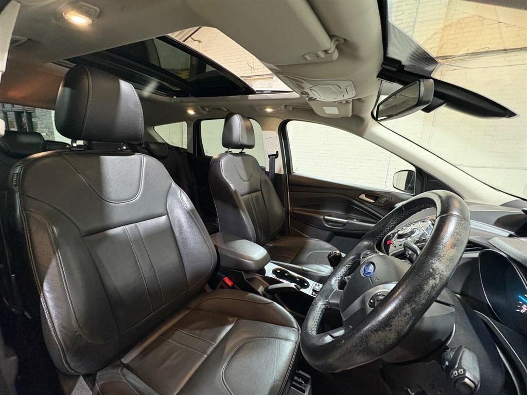 This 2015 Ford Kuga TDCi Titanium X offers an exceptional blend of style and efficiency, boasting an impressive fuel economy of 60 miles per gallon. As a Euro 6 compliant vehicle, it also benefits from low CO2 emissions, making it a considerate choice for the environment. This model is equipped with a powerful 2.0 litre diesel engine and features the desirable Titanium X trim. Notable features include automatic Bi-Xenon headlights for enhanced visibility, dual zone climate control for personalised comfort, and a fixed panorama roof that floods the cabin with natural light. For added comfort on colder days, the driver and passenger seats are heated. The Ford Kuga TDCi Titanium X stands out with its advanced technology and comfort focused features. The automatic headlights adjust to changing light conditions, while the dual zone electronic automatic temperature control ensures a pleasant cabin environment for everyone. The heated seats provide welcome warmth during winter months, and the panoramic roof creates an open and airy feel. These highlights demonstrate how this Kuga is designed to offer a superior driving experience compared to other vehicles in its class, combining practicality with a touch of luxury. 18in Alloy Wheels - 5x2 Spoke,4.2in TFT Display,ABS - Anti-lock Braking System,AUX Connection,Air Conditioning - Dual Zone Electronic Automatic Temperature Control,Airbags - Drivers Knee,Airbags - Front Passenger,Airbags - Front and 2nd Row Curtain,Airbags - Side Impact,Alarm - Thatcham Category 1 with Volume Sensing and Perimeter,Armrest - Folding Centre - Rear,Audible Text Messaging,Automatic Dimming Rear View Mirror,Automatic Rain Sensing Wipers,Bi-Xenon Headlights,Bluetooth Hands-free Phone,Body Colour Exterior Mirrors,Bounce-Back Sensors,Courtesy Light - Footwell Illumination,Courtesy Light - Front and Rear Reading Lights,Cruise Control with Speed Limiter,Door Handles - Body Colour,Door Lever - Aluminium,Door Mirrors - Electrically Operated and Heated,Door Mirrors - Puddle Lights,Door Mirrors with Integrated Indicators,Drivers Airbag,Drivers Seat Lumbar Support,EBA - Emergency Brake Assist,EBD - Electronic Brakeforce Distribution,EPAS - Electric Power Assisted Steering,ESP - Electronic Stability Programme,Electric Windows - Front and Rear with One Touch,Emergency Assistance,Emergency Brake Warning,Floor Mats - Carpet - Front,Ford Easy-Fuel Capless Refuelling System,Ford Power Engine Start-Stop Button,Ford SYNC,Front Fog Lights,Front Fully Adjustable 4 Way Head Restraints,Front Seat - Passengers Manual Lumbar Support Adjustment,Front upper grille - High-gloss black with chrome bar,Gearshift Knob - Leather,HLA - Hill Launch Assist,Headlights - Automatic,Headlights - Courtesy Delay,Headlights - Jet Wash,Headlights - Levelling System - Automatic,Heated Driver and Passenger Seats,Heated Front Windscreen,Heated Washer Jets,IPS - Intelligent Protection System,ISOFIX,LED Daytime Running Lights,Large Stowage Bin,Load Compartment - Tie Down Hooks,Locking Wheel Nuts,Panorama Roof,Portable Audio Device Connector,Power Tailgate - Button Operated,RSC - Roll Stability Control,Rear Lights - LED,Rear Parcel Tray,Rear Seat - Folding Centre Armrest with 2 Integrated Cup Holders and Flip up Storage,Rear Spoiler - Body Colour,Remote Central Locking,Scuff Plates - Front-Stainless Steel,Seats - 6 Way Adjustable Passengers,Seats - 60-40 Rear Split Back,Seats - Drivers 10-Way Adjustment,Seats - Front Sports,Sony CD-Radio Player-MP3 Compatibility,Sony DAB Digital Radio,Spare Wheel - Mini Steel,Speakers - x8,Steering Column - Rake and Reach Adjustment,Steering Wheel - 4 Spoke Leather Trimmed,Steering Wheel - Multifunction,Storage - Upper Instrument Panel,Stowage Pockets - Front Seatback,TSC - Trailer Stability Programme,TVC - Torque Vectoring Control,Tinted Glass - Green,Traction Control - TC,Twin Exhaust Outlet,Two 12V Power Socket,Tyre Pressure Monitoring System,USB Connection - iPod Connectivity,Variable Dimming of Instrument Cluster and Radio Screen Display,Voice Control - Audio