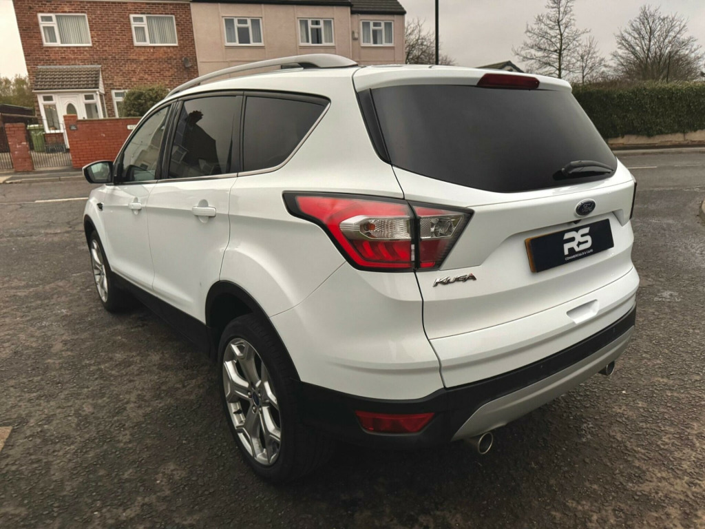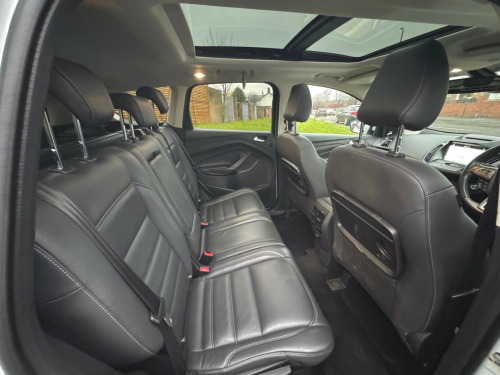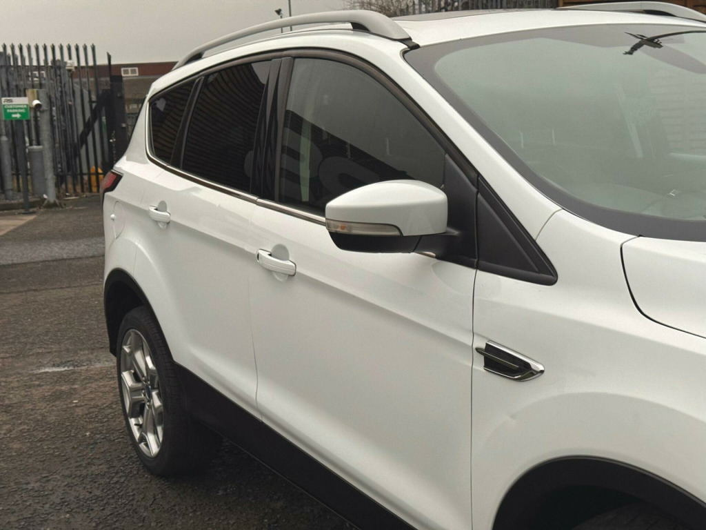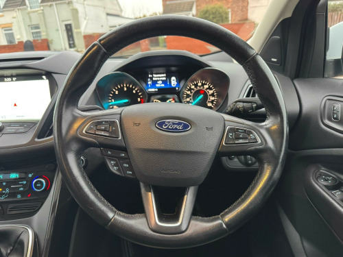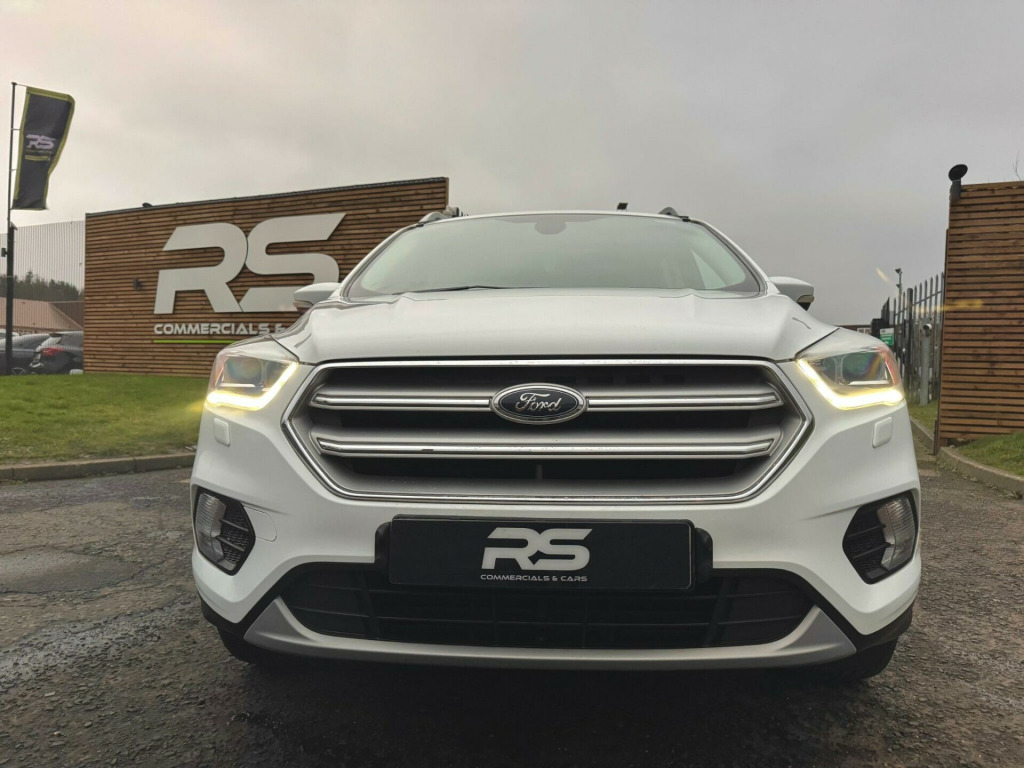 This 2017 Ford Kuga TDCi Titanium X offers an exceptional blend of style and efficiency, boasting an impressive fuel economy of 60 miles per gallon. This Euro 6 compliant 2.0 litre diesel engine is housed within the well appointed Titanium X trim, ensuring a refined driving experience. Notable features include a power opening panoramic roof, providing an airy cabin, and heated driver and passenger seats for added comfort during colder journeys. For seamless connectivity and navigation, it comes equipped with the Ford DAB Navigation System with Ford SYNC3, including Bluetooth functionality.Further enhancing this Kuga's appeal are its Bi-Xenon headlights with dynamic bending adaptive beam shape, which intelligently adjust to improve visibility around corners. The DEATC dual zone electronic automatic temperature control ensures personalised comfort for both driver and passenger. These features, combined with its low CO2 emissions, indicate that this Ford Kuga is a superior choice compared to other vehicles in its class, offering a more economical and technologically advanced ownership experience. in alloy wheels - 5 spoke, 6-way manual passenger seat with lumbar adjustment, accessory power socket - 12v, accessory power socket - 12v in luggage compartment, airbags - driver and front passenger, airbags - drivers knee, airbags - drivers and front passenger front side - front and rear curtain, airbags - front side impact, armrest - folding centre - rear, audible text messaging - voice control and usb connectivity, automatic dimming rear view mirror, automatic headlights - rain sensing wipers - auto dimming rear view mirror, bi-xenon headlights with dynamic bending adaptive beam shape, centre console, child locks - manually adjustable rear door locks, courtesy light - footwell illumination, courtesy light - front and rear, cruise control with active speed limiter, deatc - dual-zone electronic automatic temperature control, door lever - chrome finish, epas - electric power assisted steering, esp - electronic stability programme, electric parking brake, electric windows - front and rear with global opening-closing and one touch, flat load floor board, fog lights - front, ford dab navigation system with ford sync3, ford easy-fuel capless refuelling system, front floor mats, front lower grille - self colour, front seats - 4-way front head restraints - up-down, front seats - seat-back map pockets, front upper grille - painted black with chrome bar insert and chrome surround, gear shift indicator, heated driver and passenger seats, hill start assist, ips - intelligent protection system, keyless opening, keyless start, led daytime running lights, leather steering wheel and gear knob, locking wheel nuts, locks - remote central with double locking, mini spare wheel, multi-colour ambient interior lighting, power folding door mirrors with puddle lights, power opening panoramic roof, power tailgate, quickclear heated front windscreen with heated washer jets, rain sensitive windshield wipers, rear floor mats, rear parking sensors, rear seat - 60-40 split folding seat back and cushion with multi-step recline function, sync3 with 8in touchscreen dab audio system, scuff plates - front, seats - drivers 10-way power adjustment, seats - drivers lumbar support, seats - front sports, seats - isofix mounting provision for child seats - outer seats only, seats - passenger lumbar support, steering column - rake and reach adjustment, tailgate wash-wipe, thatcham category 1 alarm, tie-down hooks, tonneau cover, twin exhausts and rear diffuser, tyre pressure monitoring system