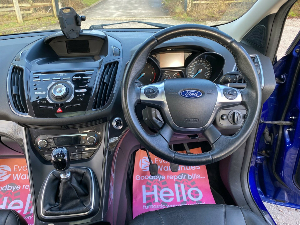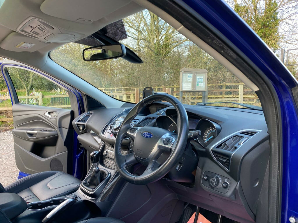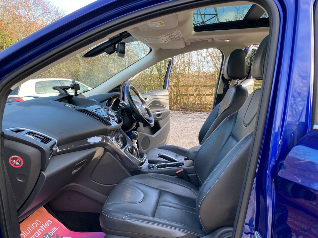 Boasting an impressive MOT valid until May 2026, this 2015 Ford Kuga TDCi Titanium X offers excellent peace of mind. This particular model, with its 2.0L Diesel Engine and Euro 6 emission class, has been well looked after by only two owners and comes with partial service history. The Titanium X trim level ensures a premium experience, featuring automatic headlights, dual zone climate control for personalised comfort, and a fixed panoramic roof that floods the cabin with natural light. Stay connected and entertained with the integrated Bluetooth hands-free phone system, and enjoy the comfort of heated driver and passenger seats, perfect for those colder mornings.This Ford Kuga stands out with its remarkable fuel economy, achieving an outstanding 60 mpg, which indicates it is more economical than many similar vehicles. Furthermore, its low CO2 emissions highlight its environmental consideration. This vehicle also comes with a 6 month warranty, adding further reassurance to your purchase.. 18in Alloy Wheels - 5x2 Spoke, 4.2in TFT Display, ABS - Anti-lock Braking System, AUX Connection, Air Conditioning - Dual Zone Electronic Automatic Temperature Control, Airbags - Drivers Knee, Airbags - Front Passenger, Airbags - Front and 2nd Row Curtain, Airbags - Side Impact, Alarm - Thatcham Category 1 with Volume Sensing and Perimeter, Armrest - Folding Centre - Rear, Audible Text Messaging, Automatic Dimming Rear View Mirror, Automatic Rain Sensing Wipers, Bi-Xenon Headlights, Bluetooth Hands-free Phone, Body Colour Exterior Mirrors, Bounce-Back Sensors, Courtesy Light - Footwell Illumination, Courtesy Light - Front and Rear Reading Lights, Cruise Control with Speed Limiter, Door Handles - Body Colour, Door Lever - Aluminium, Door Mirrors - Electrically Operated and Heated, Door Mirrors - Puddle Lights, Door Mirrors with Integrated Indicators, Drivers Airbag, Drivers Seat Lumbar Support, EBA - Emergency Brake Assist, EBD - Electronic Brakeforce Distribution, EPAS - Electric Power Assisted Steering, ESP - Electronic Stability Programme, Electric Windows - Front and Rear with One Touch, Emergency Assistance, Emergency Brake Warning, Floor Mats - Carpet - Front, Ford Easy-Fuel Capless Refuelling System, Ford Power Engine Start-Stop Button, Ford SYNC, Front Fog Lights, Front Fully Adjustable 4 Way Head Restraints, Front Seat - Passengers Manual Lumbar Support Adjustment, Front upper grille - High-gloss black with chrome bar, Gearshift Knob - Leather, HLA - Hill Launch Assist, Headlights - Automatic, Headlights - Courtesy Delay, Headlights - Jet Wash, Headlights - Levelling System - Automatic, Heated Driver and Passenger Seats, Heated Front Windscreen, Heated Washer Jets, IPS - Intelligent Protection System, ISOFIX, LED Daytime Running Lights, Large Stowage Bin, Load Compartment - Tie Down Hooks, Locking Wheel Nuts, Panorama Roof, Portable Audio Device Connector, Power Tailgate - Button Operated, RSC - Roll Stability Control, Rear Lights - LED, Rear Parcel Tray, Rear Seat - Folding Centre Armrest with 2 Integrated Cup Holders and Flip up Storage, Rear Spoiler - Body Colour, Remote Central Locking, Scuff Plates - Front-Stainless Steel, Seats - 6 Way Adjustable Passengers, Seats - 60-40 Rear Split Back, Seats - Drivers 10-Way Adjustment, Seats - Front Sports, Sony CD-Radio Player-MP3 Compatibility, Sony DAB Digital Radio, Spare Wheel - Mini Steel, Speakers - x8, Steering Column - Rake and Reach Adjustment, Steering Wheel - 4 Spoke Leather Trimmed, Steering Wheel - Multifunction, Storage - Upper Instrument Panel, Stowage Pockets - Front Seatback, TSC - Trailer Stability Programme, TVC - Torque Vectoring Control, Tinted Glass - Green, Traction Control - TC, Twin Exhaust Outlet, Two 12V Power Socket, Tyre Pressure Monitoring System, USB Connection - iPod Connectivity, Variable Dimming of Instrument Cluster and Radio Screen Display, Voice Control - Audio. Part service history