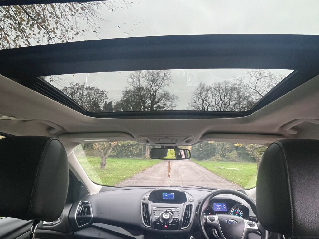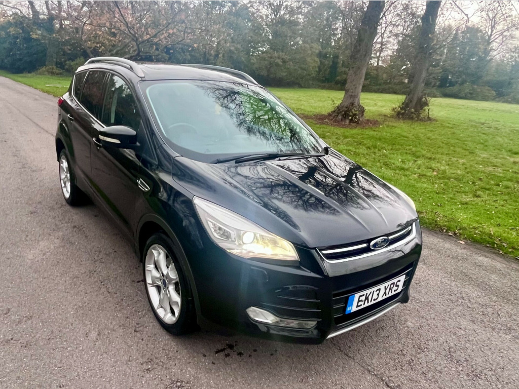 TITANIUM X !!! TOP SPEC!!! METALLIC PANTHER BLACK! FULL BLACK LEATHER! PANORAMIC ROOF! 18'' ALLOYS BLUETOOTH SONY RADIO/DAB PARKING SENSORS CRUISE CONTROL This 2013 Ford Kuga 2.0 TDCi Titanium X 5dr 2WD is a reliable and spacious hatchback with 124,000 miles on the clock, powered by a diesel engine. With an MOT that doesn't expire until 03/01/2026, this car offers peace of mind and plenty of miles to go. It comfortably seats five people and has four previous registered keepers. The Ford Kuga boasts a number of features including EPAS, Ford SYNC Bluetooth connection with voice control and USB port, power tailgate, and a trip computer. With five doors and plenty of space, this car is both practical and efficient, making it the perfect choice for both city driving and longer journeys. ord power' starter button, epas, ford sync bluetooth connection with voice control and usb port, power tailgate, trip computer, 8 speakers, auxiliary socket for external device, remote audio controls on steering wheel, 'quickclear' heated windscreen/heated washer jets, auto dimming rear view mirror, automatic headlights, bi-xenon headlights and headlight washers, body colour bumpers, body colour rear spoiler, electric front and rear windows + one touch + global open/closing, electrically heated door mirrors, front fog lights, led daytime running lights, panoramic opening glass sunroof, rain sensor windscreen wipers, scuff plates, tailgate wash/wipe, 10 way electric adjustable drivers seat, 2nd row air vents, 4 spoke leather steering wheel with silver accents, 60/40 split/folding rear back and cushion, auxiliary power socket in luggage area, centre console with stowage tray/bottle holder/cd stowage/front and rear 12v power point, driver/front passenger manual lumbar adjust, driver/passenger front seatback pockets, driver/passenger seats fore/aft adjustment, dual electronic automatic temperature control, folding rear centre armrest with storage compartment + cupholders, footwell courtesy lights front and rear, front floor mats, front head restraints, front overhead courtesy lights with theatre style dimming and delay, front/rear reading lights, isofix system on outer rear seats, leather gearknob, manual height adjustable front seats, reach + rake adjustable steering column, rear head restraints, sports style front seats, stowage unit in upper instrument panel, tie down hooks, tonneau cover, variable intensity instrument illumination, 3 point seatbelts on all 3 rear seats, abs/ebd, deflation detection system, driver and passenger airbags, driver and passenger side airbags, electric traction assist system, esp+eba, front and rear curtain airbags, hill start assist, intelligent protection system (ips), immobiliser, locking wheel nuts, remote central locking, thatcham cat 1 volume sensing perimeter alarm, mini steel spare wheel, 18'' Alloys