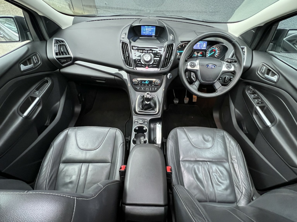 A warm welcome to Mark One Cars Limited. We are thrilled to be able to reveal to you this FORD KUGA 2.0TDCI TITANIUM X. , Presentation – 19 inch alloys, Satellite Navigation, front and rear parking sensors, rear parking camera, heated driver and passenger seats with black leather interior, Bluetooth connectivity, Panoramic roof, DAB Digital Radio, Cruise Control, air conditioning, keyless entry, stop/start button, electronic tailgate, rear privacy glass, AUX input, USB input, automatic lights, electric folding mirrors and electric windows. , MOT and SERVICE – It has a full service history, last serviced in February 2026 and MOT until January 2027. A full pre-delivery inspection will take place when sold. , ADDITIONAL – The car comes with two keys and has had three owners from new. It is in excellent condition throughout for its age and comes with peace of mind, with a 3 month gold aftercare with The Motoring Organisation. Upgraded and extended aftercare packages are also available. Part exchanges are welcome. The majority of our cars are ready to drive away on the day. , Please feel free to come down to the showroom and view our vehicles anytime during opening hours. However, to ensure availability of our stock we recommend making an appointment to avoid any disappointment. , At Mark One Cars all of our vehicles undergo a thorough preparation process both mechanically and cosmetically. We operate a multi-point health check, as well as HPI checked to ensure that they are of the highest quality. We are a professional dealership with over 40 cars in stock. We are highly rated by Autotrader. We offer 0% deposit finance packages for our vehicles which are all tailored to you, these can be made through our website. , As an expanding family run business, we pride ourselves on our welcoming nature and a pressure-free environment. , Appointments can be made by Phone, Text, WhatsApp, Email, Website. Our address is Lordsmill Street, Chesterfield, S41 7RS. If you experience any difficulty in locating us, please refer to Google Maps or the detailed map on our website: www.markonecars.co.uk, , 2015 Used FORD KUGA 2.0TDCI TITANIUM X cars for sale in Chesterfield, Derbyshire in grey, this used FORD KUGA 2.0TDCI TITANIUM X is another fine example of what is available from used car dealers, Mark One Cars Limited, Chesterfield, Derbyshire