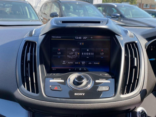 Experience the road in style with this 2016 Ford Kuga TDCi Titanium X. The Titanium X trim elevates your driving experience with a host of features designed for comfort and convenience. Equipped with a 2.0L diesel engine and a four-wheel-drive drivetrain, this Kuga is ready for anything. Enjoy the luxury of dual-zone electronic automatic temperature control, ensuring a comfortable climate for both driver and passengers. Heated seats provide warmth on colder days, while the panoramic roof offers stunning views and an open-air feel. Bi-Xenon headlights provide enhanced visibility, and Bluetooth hands-free phone connectivity keeps you connected on the go. With a fuel economy of 54 mpg, this Kuga stands out as an economical choice in its class. Low CO2 emissions further enhance its appeal, making it an environmentally conscious option. I