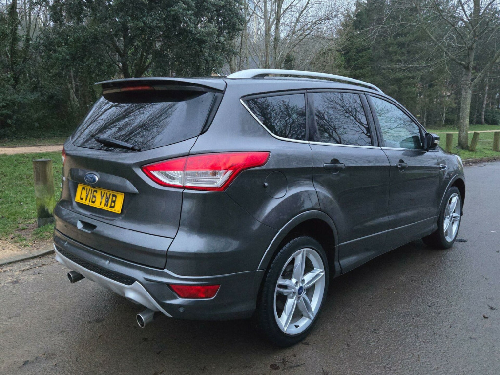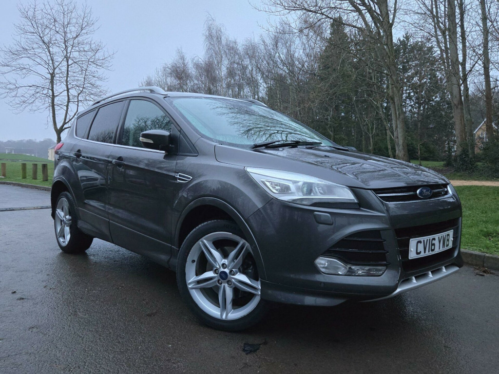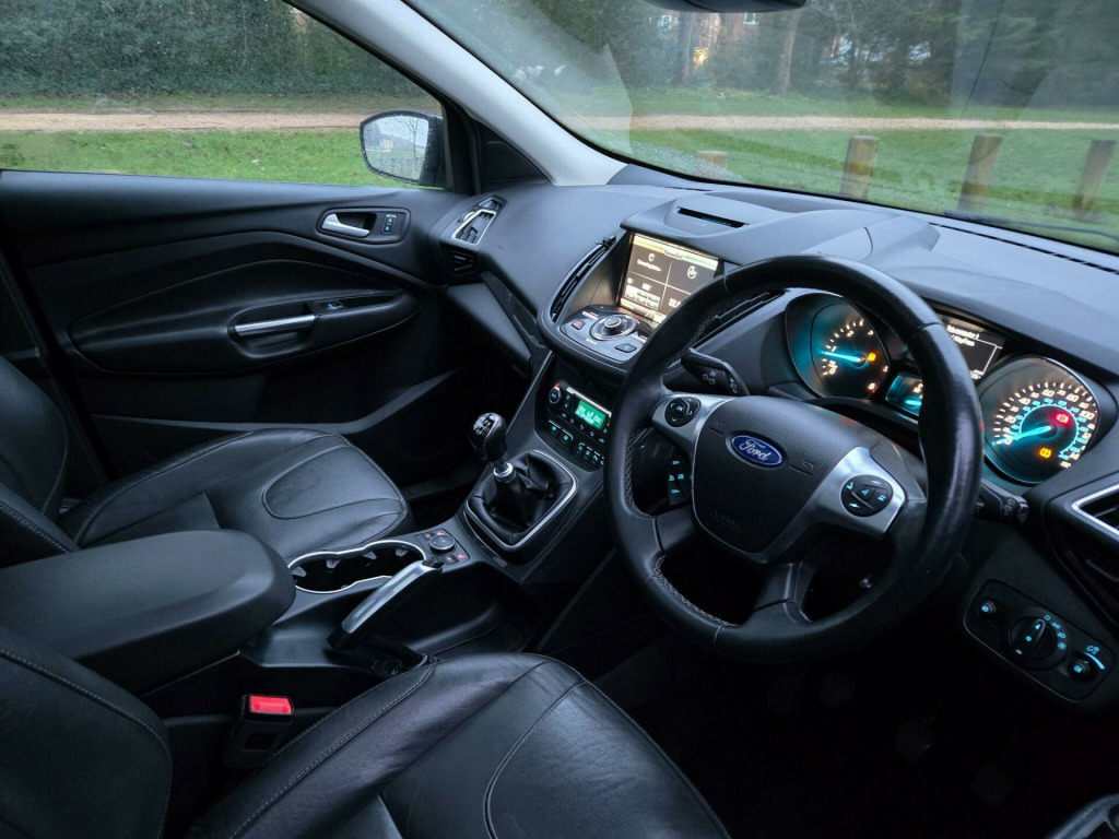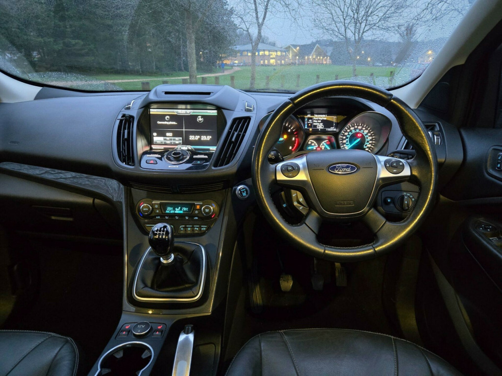HAVING A BRAND NEW CAM BELT AND WATER PUMP REPLACEMENT This 2016 Ford Kuga TDCi Titanium X offers a compelling blend of capability and comfort, featuring a robust 2.0 litre diesel engine paired with a four wheel drive system for confident handling in various conditions. As a Euro 6 compliant vehicle, it meets modern emissions standards. The Titanium X trim level ensures a well equipped interior, boasting heated driver and passenger seats for those colder journeys. Practicality is enhanced with Bluetooth handsfree phone connectivity, allowing for safe and easy communication on the go.Further enhancing the driving experience are Bi-Xenon headlights that provide excellent visibility, complemented by automatic headlights that adjust to ambient light conditions. The fixed panorama roof floods the cabin with natural light, creating a more open and airy feel. With an impressive highlight fuel economy of 54 miles per gallon and low CO2 emissions, this Kuga represents a more efficient choice compared to many other vehicles in its class. rd sync2 dab navigation system, sony dab navigation system with rear view camera, parking sensor - rear, keyless opening with hands free power tailgate, 19in alloy wheels - y spoke, capretto leather - ebony, 18in alloy wheels - 5x2 spoke, 4.2in tft display, abs - anti-lock braking system, aux connection, air conditioning - dual zone electronic automatic temperature control, airbags - drivers knee, airbags - front passenger, airbags - front and 2nd row curtain, airbags - side impact, alarm - thatcham category 1 with volume sensing and perimeter, armrest - folding centre - rear, audible text messaging, automatic dimming rear view mirror, automatic rain sensing wipers, bi-xenon headlights, bluetooth hands-free phone, body colour exterior mirrors, bounce-back sensors, courtesy light - footwell illumination, courtesy light - front and rear reading lights, cruise control with speed limiter, door handles - body colour, door lever - aluminium, door mirrors - electrically operated and heated, door mirrors - puddle lights, door mirrors with integrated indicators, drivers airbag, drivers seat lumbar support, eba - emergency brake assist, ebd - electronic brakeforce distribution, epas - electric power assisted steering, esp - electronic stability programme, electric windows - front and rear with one touch, emergency assistance, emergency brake warning, floor mats - carpet - front, ford easy-fuel capless refuelling system, ford power engine start-stop button, ford sync, front fog lights, front fully adjustable 4 way head restraints, front seat - passengers manual lumbar support adjustment, front upper grille - high-gloss black with chrome bar, gearshift knob - leather, hla - hill launch assist, headlights - automatic, headlights - courtesy delay, headlights - jet wash, headlights - levelling system - automatic, heated driver and passenger seats, heated front windscreen, heated washer jets, ips - intelligent protection system, isofix, led daytime running lights, large stowage bin, load compartment - tie down hooks, locking wheel nuts, panorama roof, portable audio device connector, power tailgate - button operated, rsc - roll stability control, rear lights - led, rear parcel tray, rear seat - folding centre armrest with 2 integrated cup holders and flip up storage, rear spoiler - body colour, remote central locking, scuff plates - front-stainless steel, seats - 6 way adjustable passengers, seats - 60-40 rear split back, seats - drivers 10-way adjustment, seats - front sports, sony cd-radio player-mp3 compatibility, sony dab digital radio, spare wheel - mini steel, speakers - x8, steering column - rake and reach adjustment, steering wheel - 4 spoke leather trimmed, steering wheel - multifunction, storage - upper instrument panel, stowage pockets - front seatback, tsc - trailer stability programme, tvc - torque vectoring control, tinted glass - green, traction control - tc, twin exhaust outlet, two 12v power socket, tyre pressure monitoring system, usb connection - ipod connectivity, variable dimming of instrument cluster and radio screen display, visual awd monitor, voice control - audio