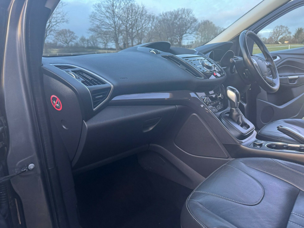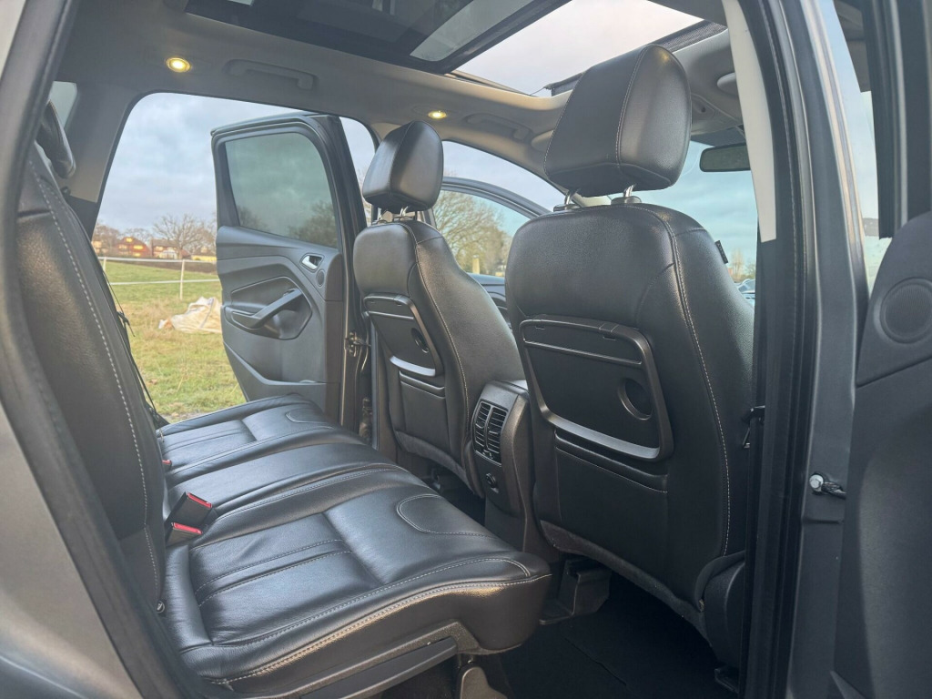 Discover this exceptional 2014 Ford Kuga TDCi Titanium X, boasting remarkably low mileage for its age at just 62,500 miles, and confirmed with a clear vehicle history check. This Four Wheel Drive model is powered by a robust 2.0L Diesel engine, offering a compelling blend of performance and efficiency. The Titanium X trim level ensures a premium experience, enhanced by desirable features such as a striking Panorama Roof, advanced Bi-Xenon headlights for superior visibility, and dual zone climate control for personalised comfort.Further elevating this Ford Kuga are the heated driver and passenger seats, perfect for those colder mornings, and the integrated Bluetooth handsfree and voice control system, allowing for seamless connectivity on the go. These carefully selected features, combined with its impressive provenance, position this Kuga TDCi Titanium X as a standout choice, offering a superior driving experience compared to other vehicles in its class. In in alloy wheels, abs - anti-lock braking system, air conditioning - dual zone electronic automatic temperature control, airbags - drivers knee, airbags - front passenger, airbags - front and 2nd row curtain, airbags - side impact, alarm - thatcham category 1 with volume sensing and perimeter, automatic dimming rear view mirror, automatic rain sensing wipers, bi-xenon headlights, bluetooth handsfree and voice control, body colour exterior mirrors, bounce-back sensors, centre console - sliding armrest, centre console - additional 12v power socket, courtesy light - footwell illumination, courtesy light - front and rear reading lights, courtesy light - led overhead with theatre style dimming ambient lighting, cruise control with speed limiter, dds - deflation detection system, door handles - body colour, door lever - aluminium, door mirrors - electrically operated and heated, door mirrors - puddle lights, door mirrors with integrated indicators, drivers airbag, drivers seat lumbar support, eba - emergency brake assist, ebd - electronic brakeforce distribution, epas - electric power assisted steering, esp - electronic stability programme, electric windows - front and rear with one touch, emergency assistance, emergency brake warning, floor mats - carpet - front, ford easy-fuel capless refuelling system, ford power engine start-stop button, ford sync, front fog lights, front seat - passengers manual lumbar support adjustment, front lower grille - moondust silver colour surround, front suspension - independent with macpherson struts, front upper grille - high-gloss black with chrome bar, gearshift knob - leather, hla - hill launch assist, headlights - automatic, headlights - courtesy delay, headlights - jet wash, headlights - levelling system - automatic, heated driver and passenger seats, heated front windscreen, heated washer jets, ips - intelligent protection system, isofix, led daytime running lights, large stowage bin, locking wheel nuts, mp3 compatibility, panorama roof, portable audio device connector, rsc - roll stability control, rear lights - led, rear seat - folding centre armrest with 2 integrated cup holders and flip up storage, rear spoiler - body colour, rear suspension - independent control blade multi-link system and anti-roll bar, remote central locking, scuff plates - front moondust silver colour, seats - 60-40 rear split back, seats - drivers manual height and fore-aft adjustment, seats - front sports, sony dab digital radio, sony radio cd with 8 speakers - mp3 compatible, spare wheel - mini steel, speakers - x8, steering column - rake and reach adjustment, steering wheel - 4 spoke leather trimmed, steering wheel - multifunction, storage - upper instrument panel, stowage pockets - front seatback, tft display screen, tsc - trailer stability programme, tvc - torque vectoring control, tinted glass - green, traction control - tc, twin exhaust outlet, variable dimming of instrument cluster and radio screen display, variable sensitivity adjustment, visual awd monitor